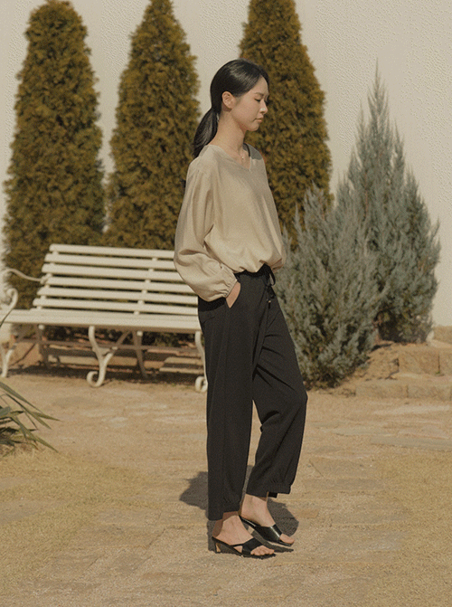 Photo-style relaxed length long slacks P7372