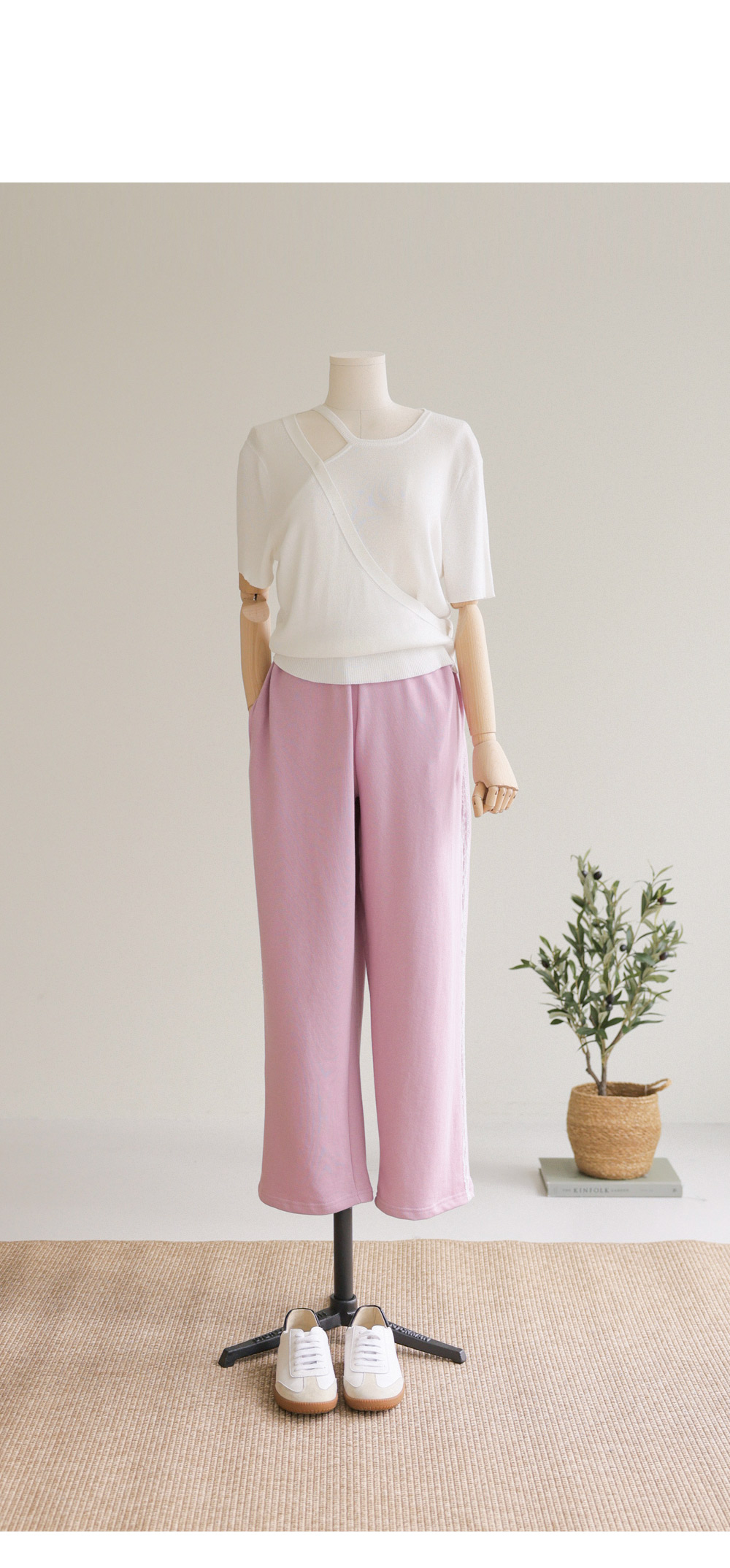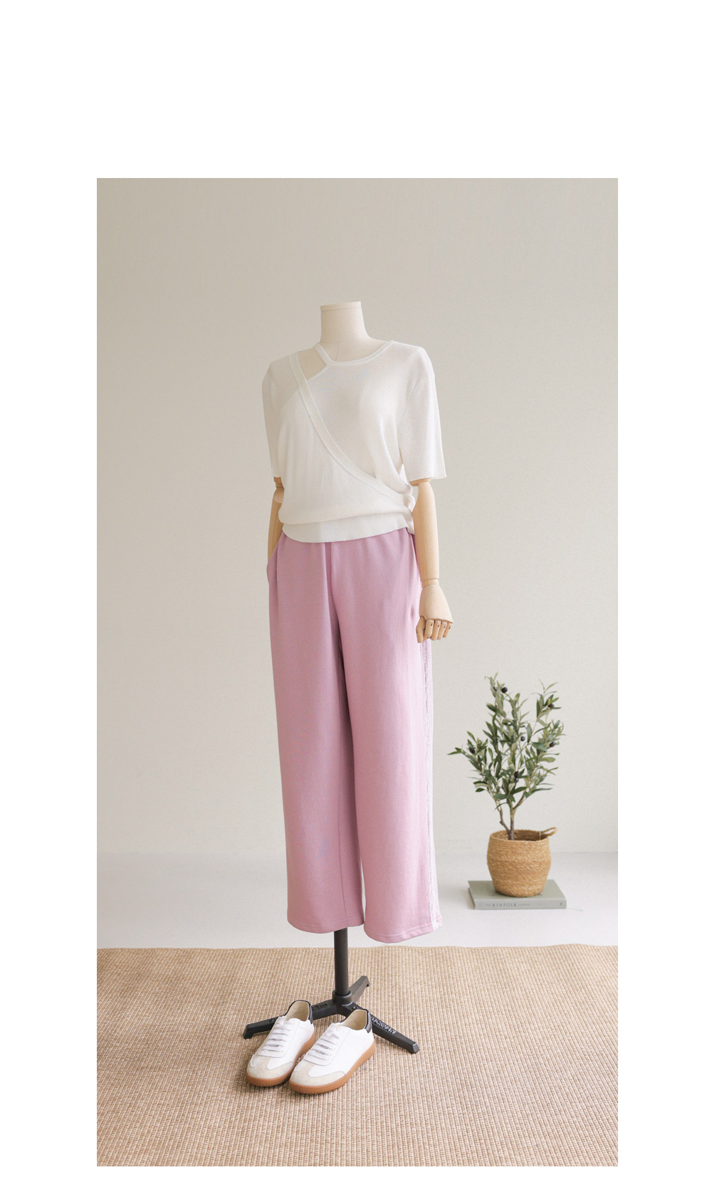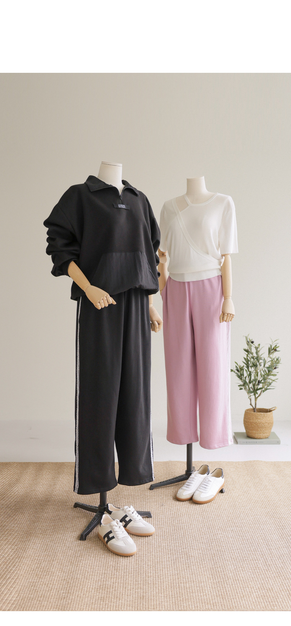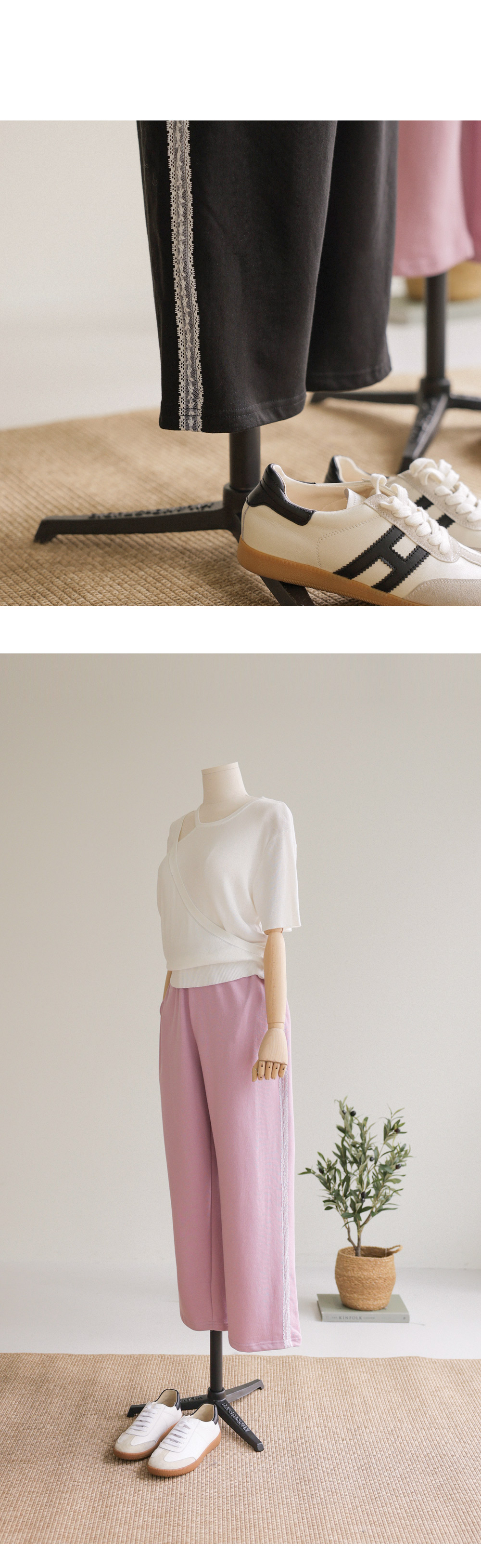 레아르 여유일자 롱팬츠 _ 핑크,블랙