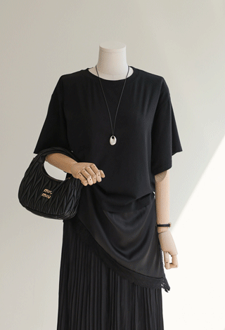 레이온의 부드러운 터칭감과 나일론의 탄탄함이 만나 최적의 밸런스를 보여주는 소재예요. 얇은 두께감으로 제작되어 무게감이 거의 느껴지지 않을 만큼 가볍고, 매끄러운 촉감이 피부에 닿을 때 자극 없이 편안하게 감싸준답니다. 조직감이 탄탄해 실루엣이 쉽게 흐트러지지 않고 여리여리한 핏을 오랫동안 유지해 주는 것이 특징이에요.