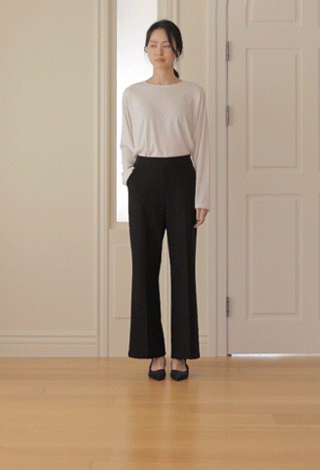 깔끔한 라운드 네크라인은 목선이 답답해 보이지 않도록 적당한 파임으로 제작되어 얼굴 라인을 더욱 갸름하게 연출해 줘요. 이 제품의 핵심은 허리 부분에 들어간 셔링과 스트링 디테일인데요, 가슴 아래쪽부터 촘촘하게 잡힌 셔링이 입체적인 실루엣을 만들어주어 복부의 미운 살을 완벽하게 커버해 준답니다.