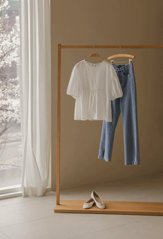 A:블랙데님 베이스에 아주 은은하게 녹아든 워싱이에요. 오히려 시선을 입체적으로 분산시켜 하체를 더 슬림해 보이게 하는 역할을 한답니다.