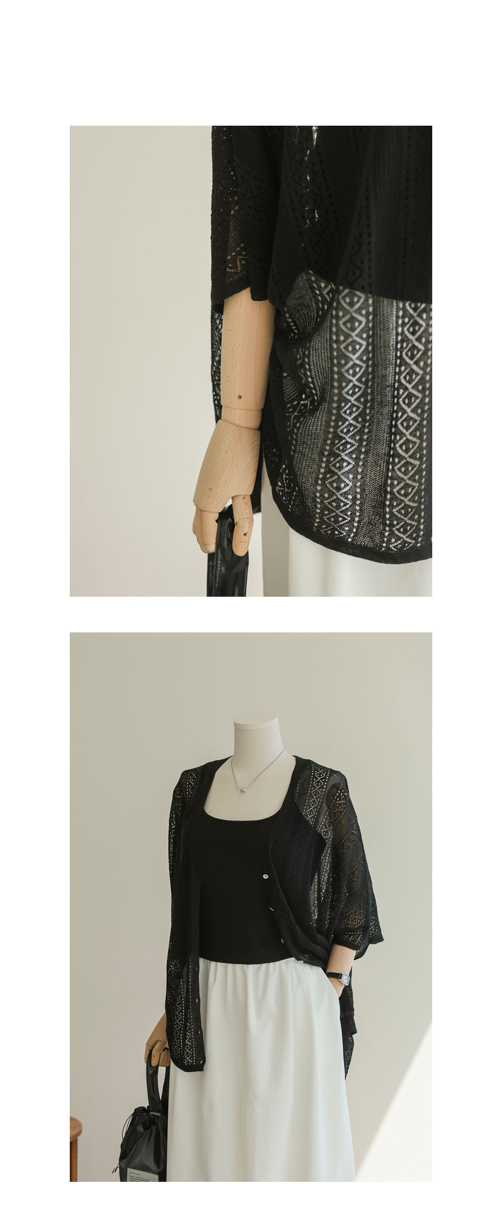 입는 순간 "정말 가볍다!"라는 감탄이 먼저 나오는 아이템이에요. 낙낙한 사이즈로 88~100 사이즈이신 분들도 여유로운 핏을 경험하실 수 있구요. 얇고 유연한 소재 덕분에 가방 속에 쏙 넣어 다니다가 필요할 때마다 꺼내 입기 좋아 활용도가 정말 높은 효자 아이템이 될 거예요.