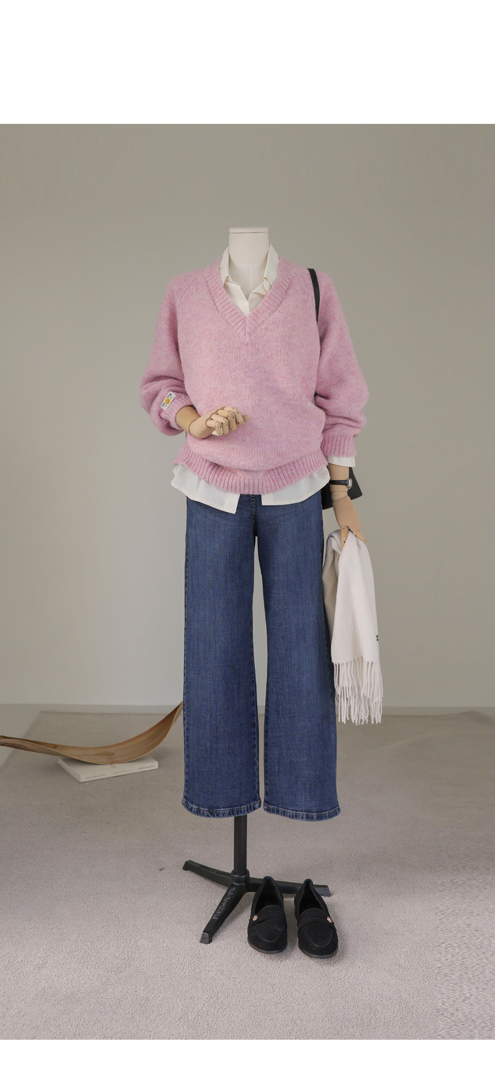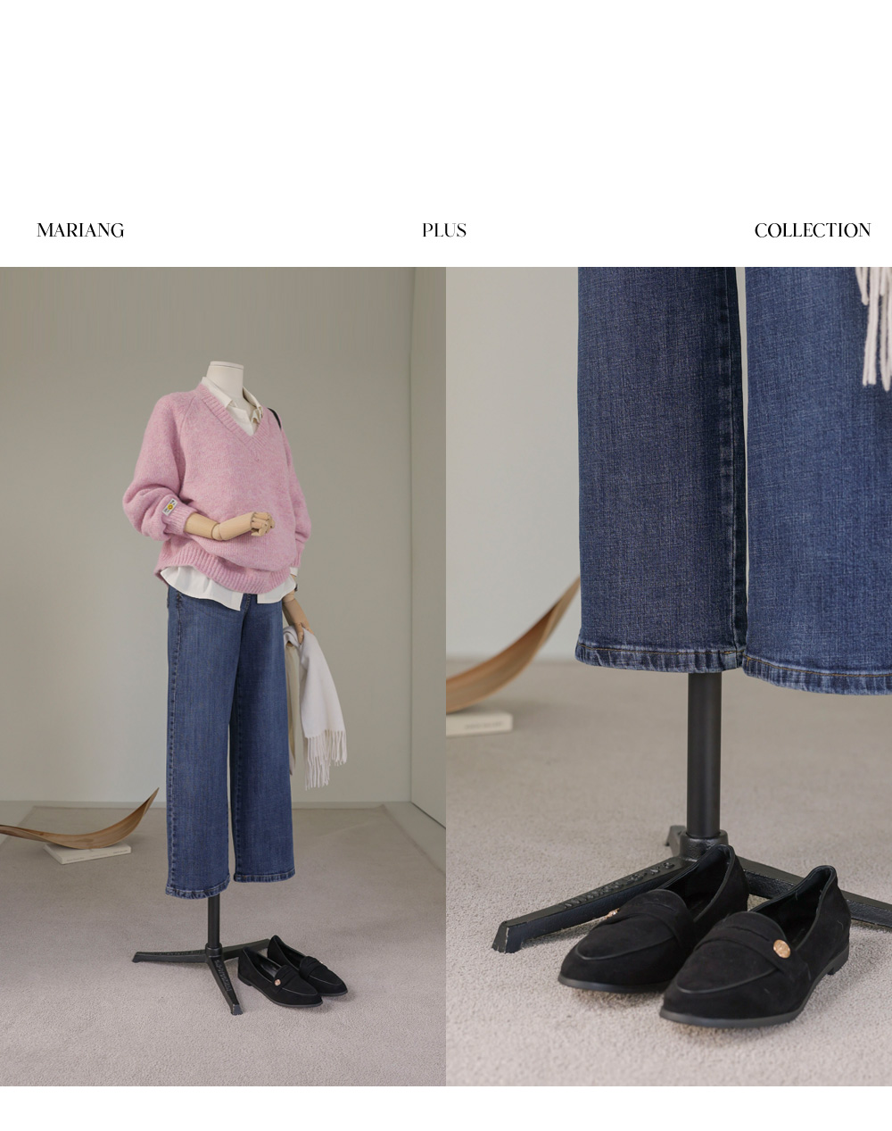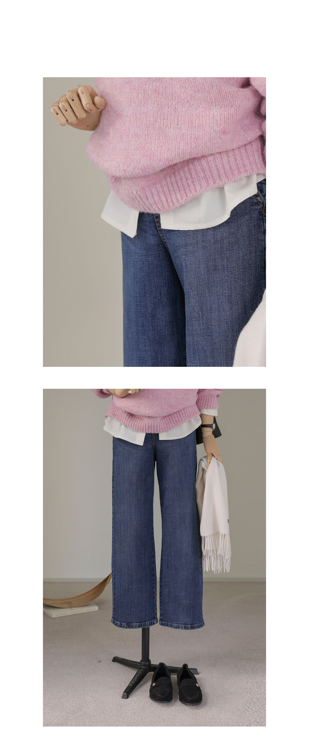 모델정보키 166cm / 상의 55 / 하의 26(S) / 신발 240mm 코디정보여토드 카라 맨투맨 _ 그레이 스포락 일자팬츠 _ 데님