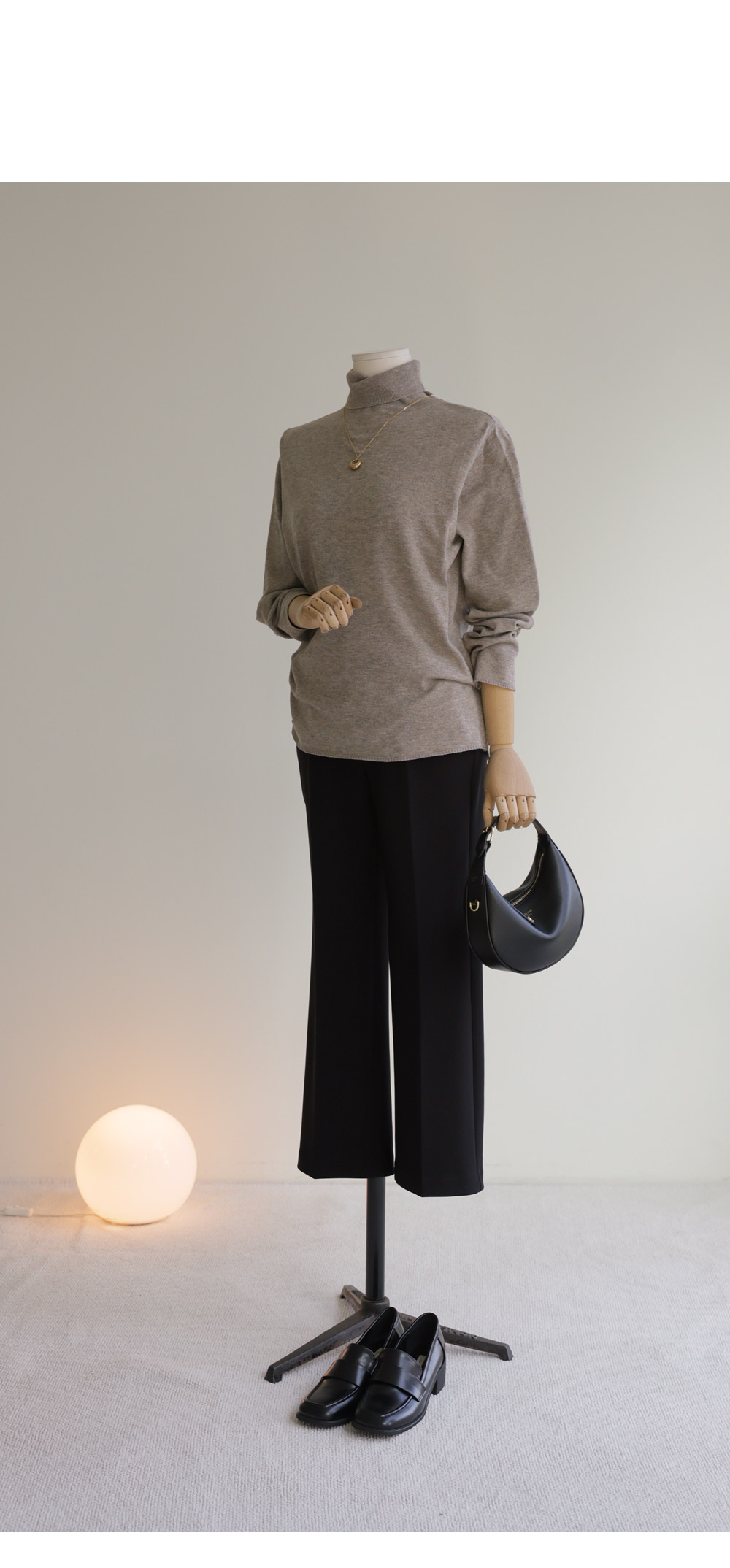 코디정보 호리온 핸드메이드 코트 _ 브라운미스트 폴라 티셔츠 _ 베이지 안콘즈 슬림일자 팬츠 _ 블랙
