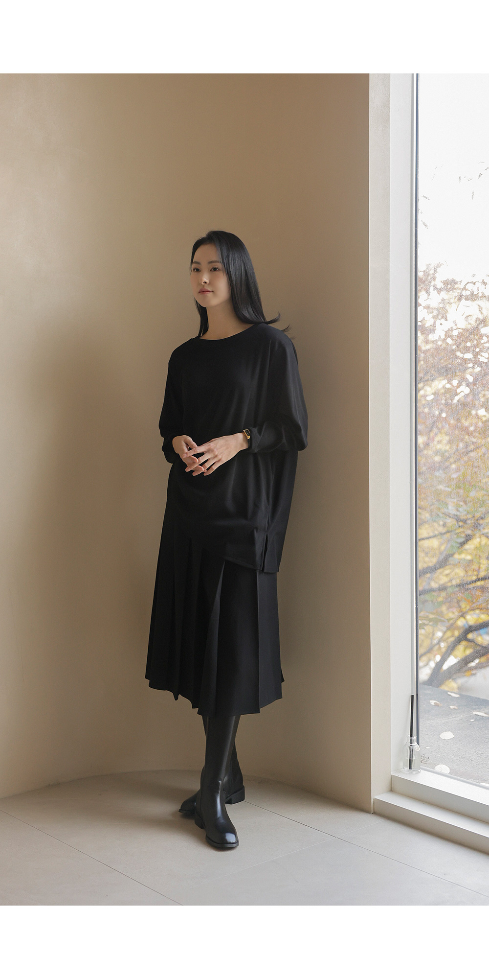코디정보 피하더 슬릿 티셔츠 _ 브라운하의 _ 코디용