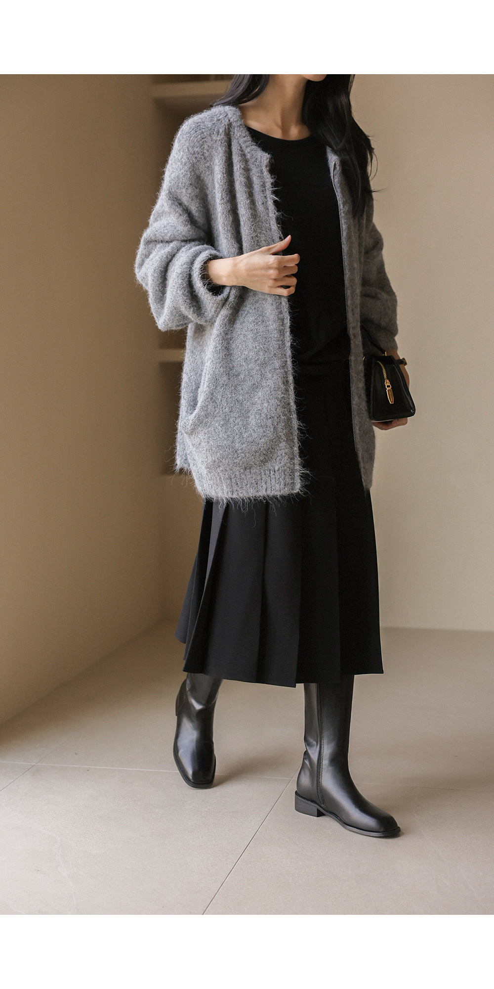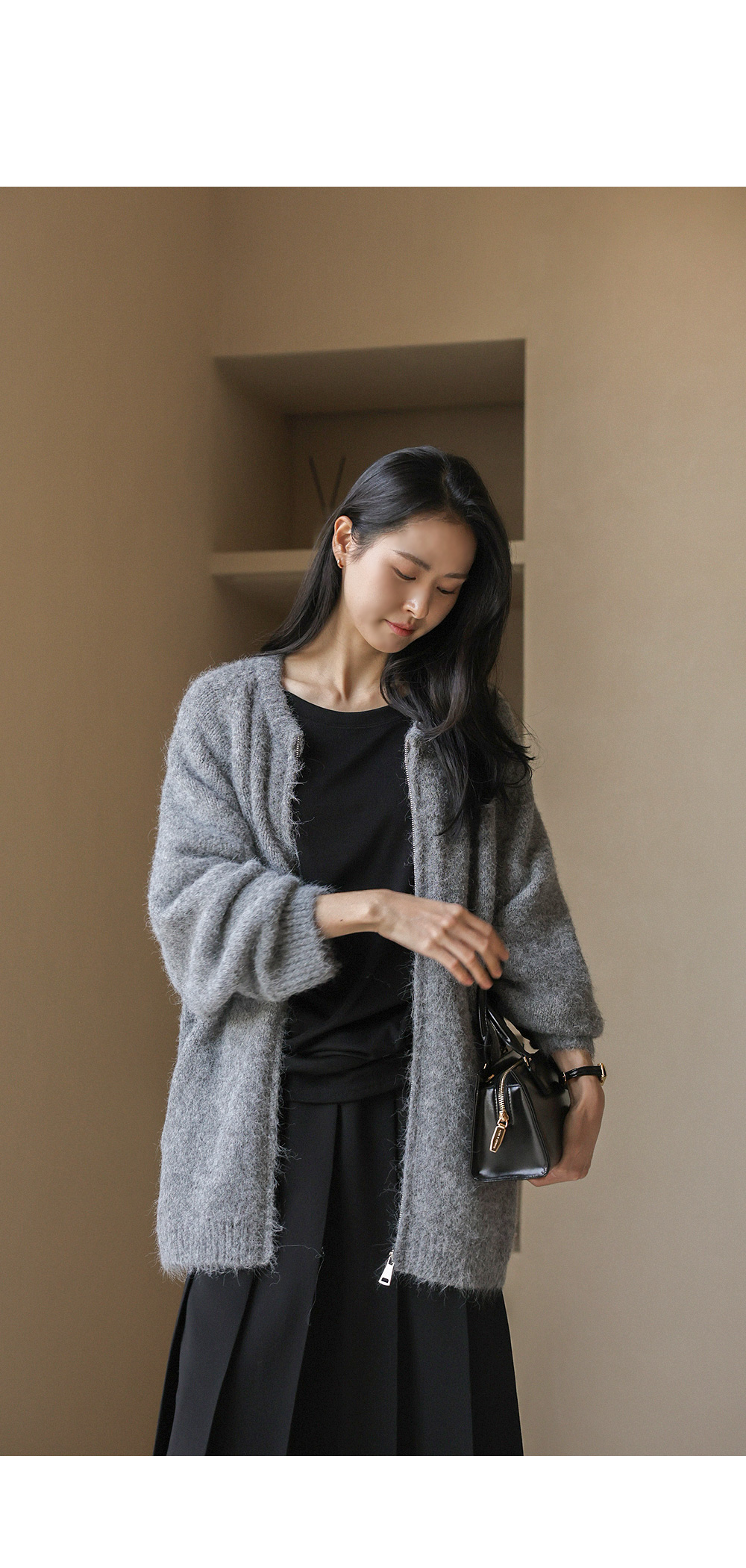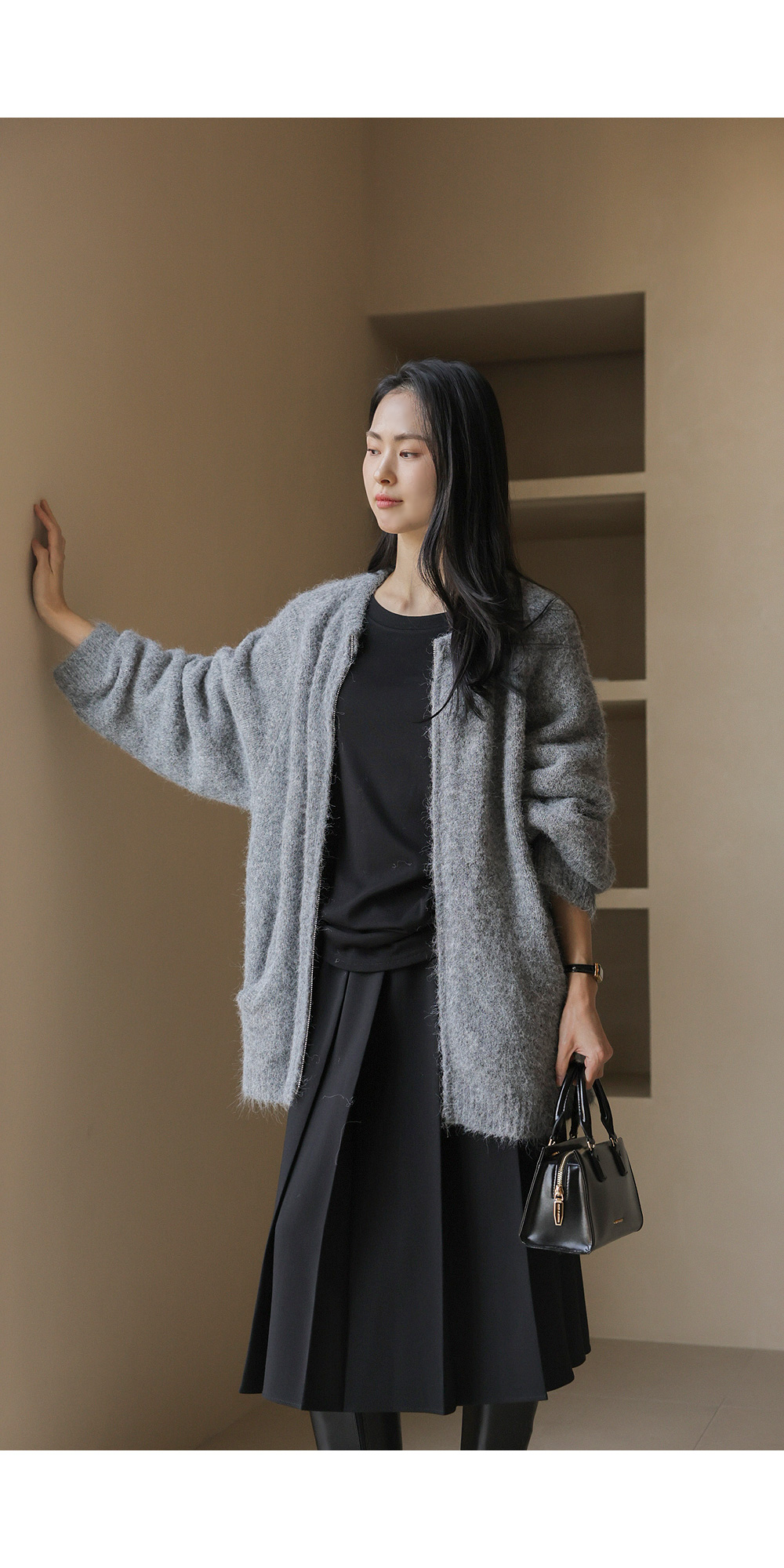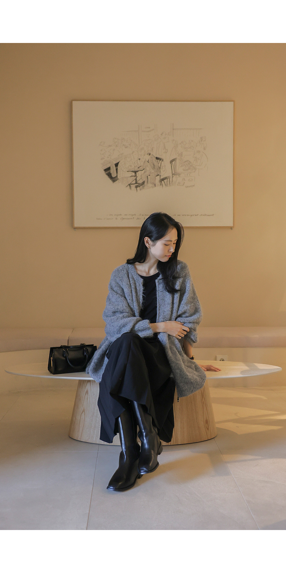 코디정보 에클로 니트집업 _ 그레이피하더 슬릿 티셔츠 _ 블랙 하의 _ 코디용