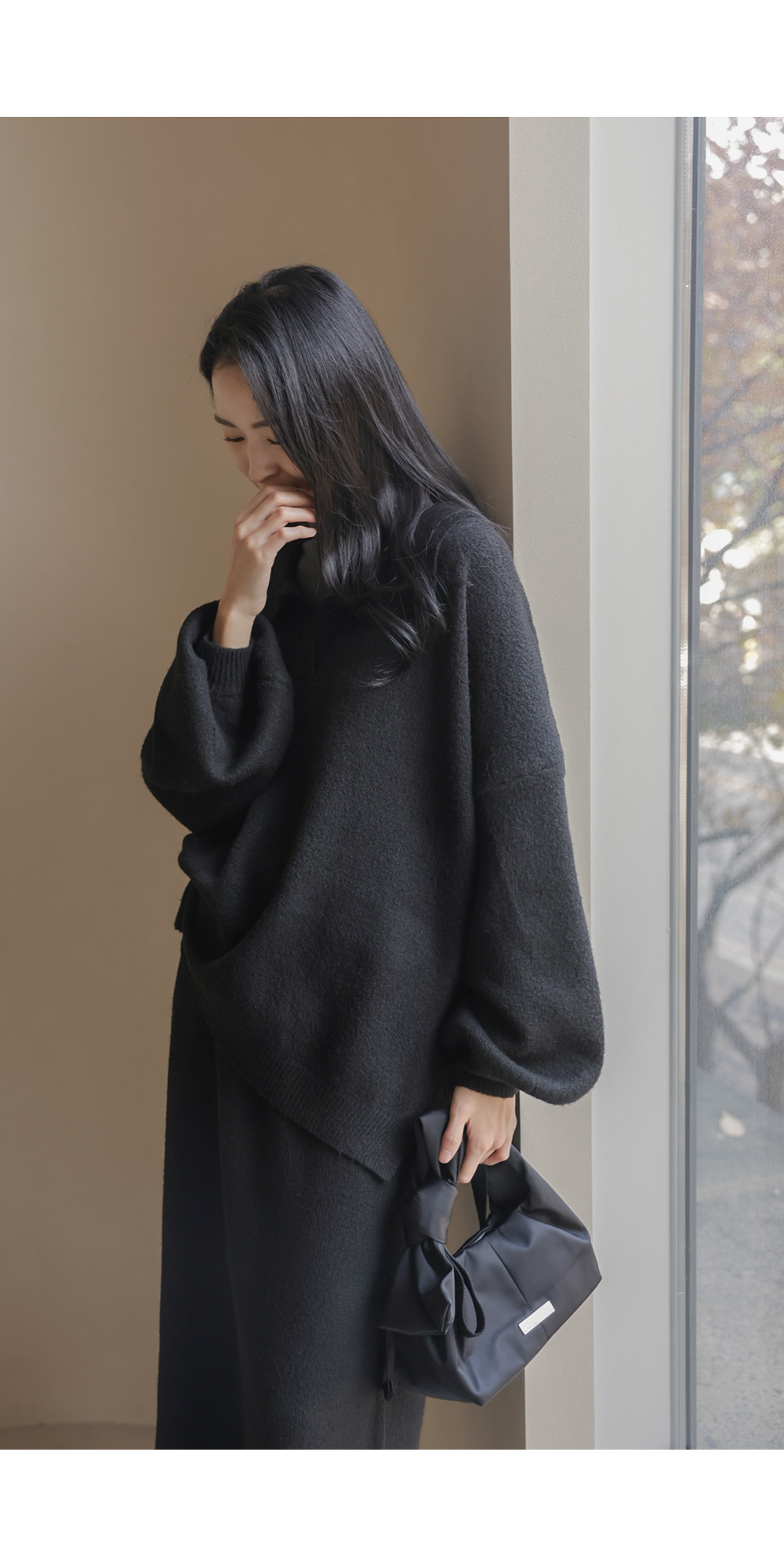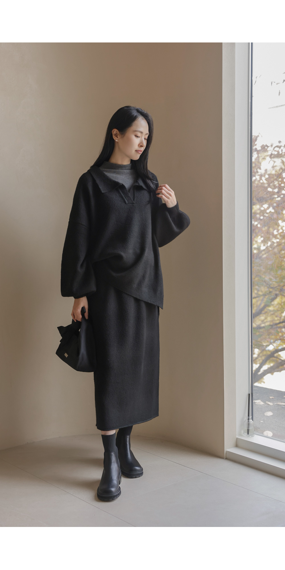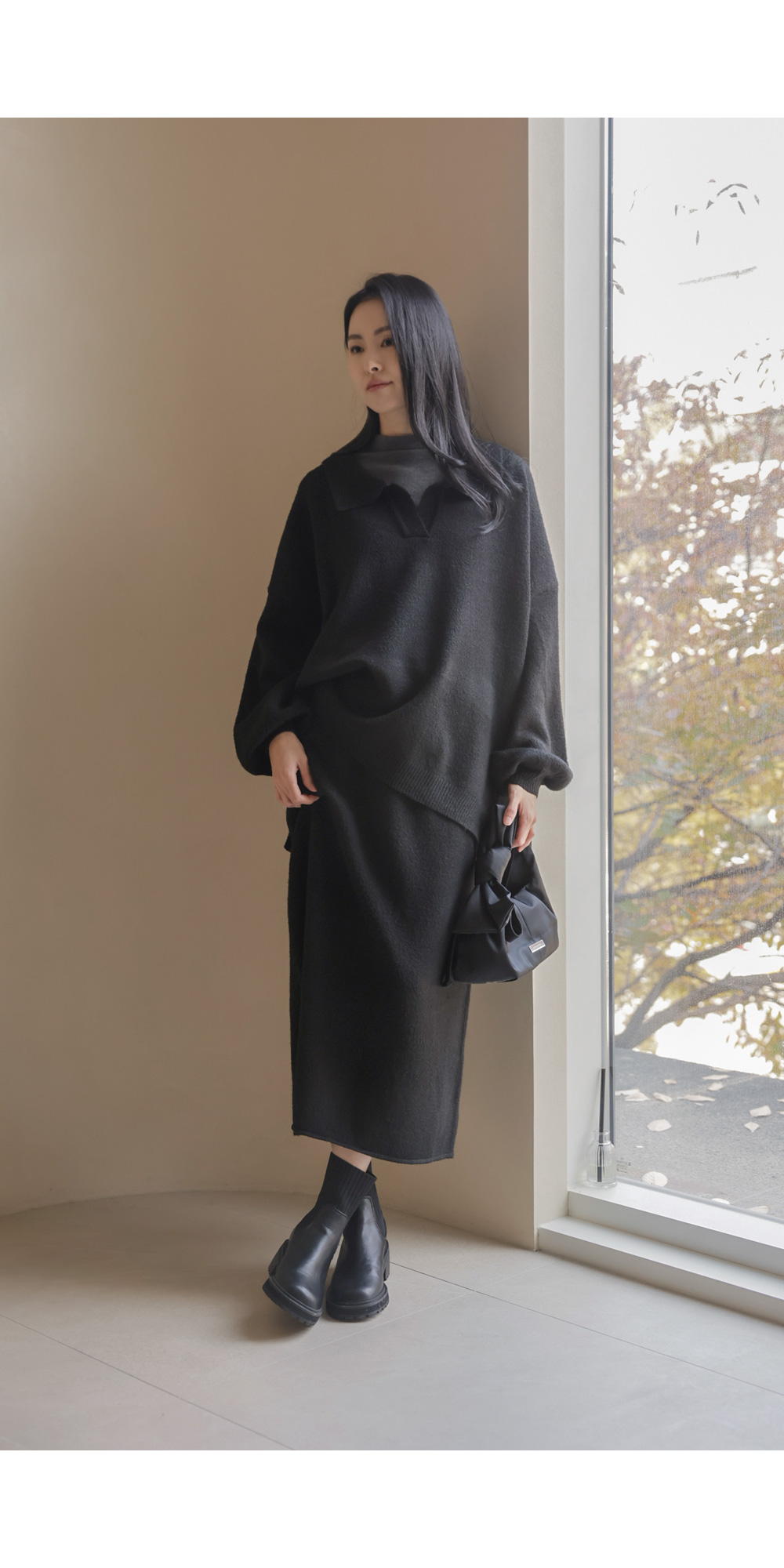 라온파 배색 덕다운 패딩 _ 블랙너체에 스커트 울세트 _ 블랙