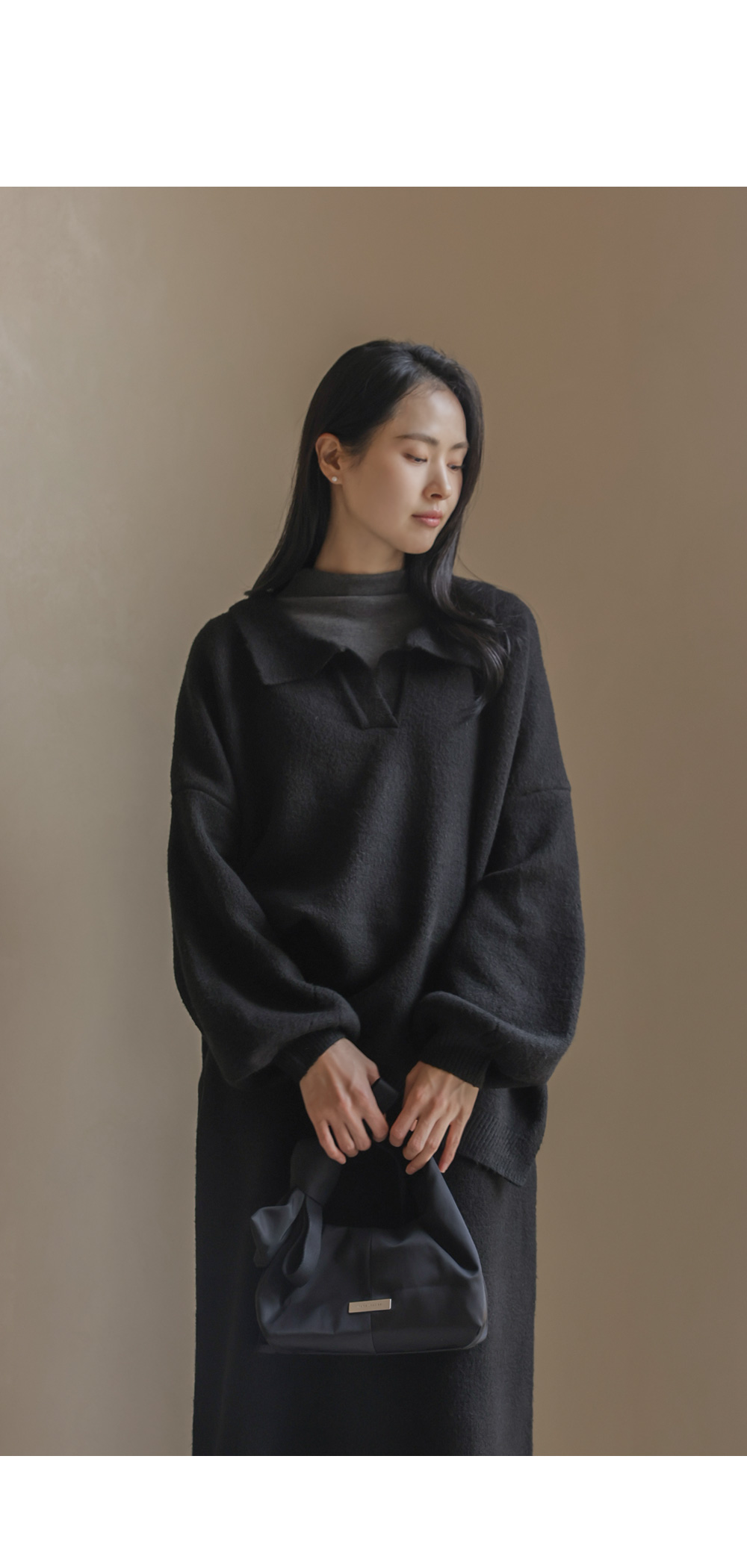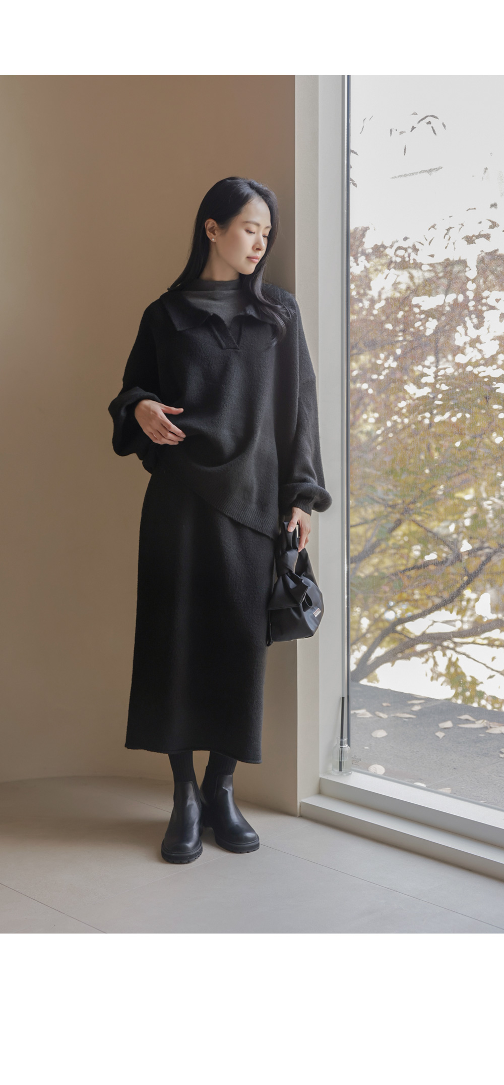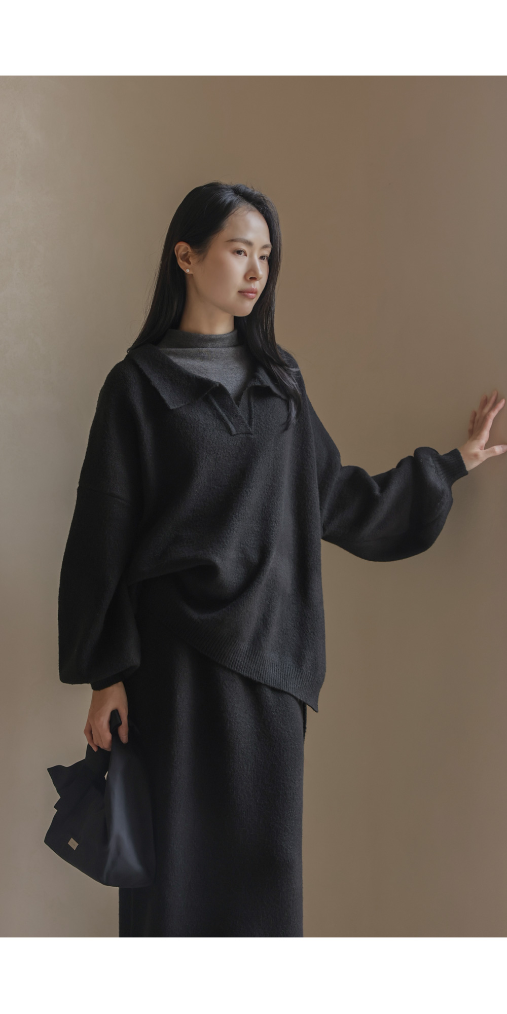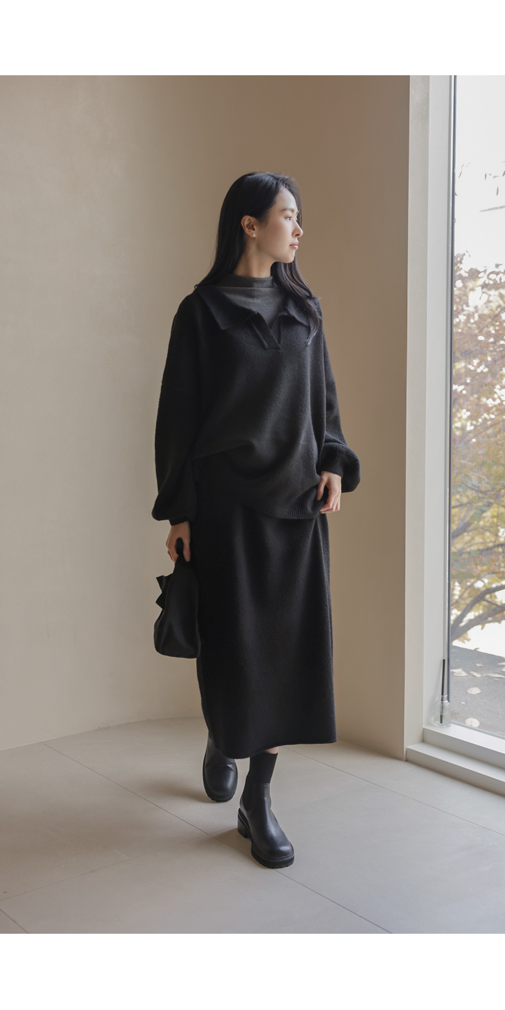 라온파 배색 덕다운 패딩 _ 블랙너체에 스커트 울세트 _ 블랙