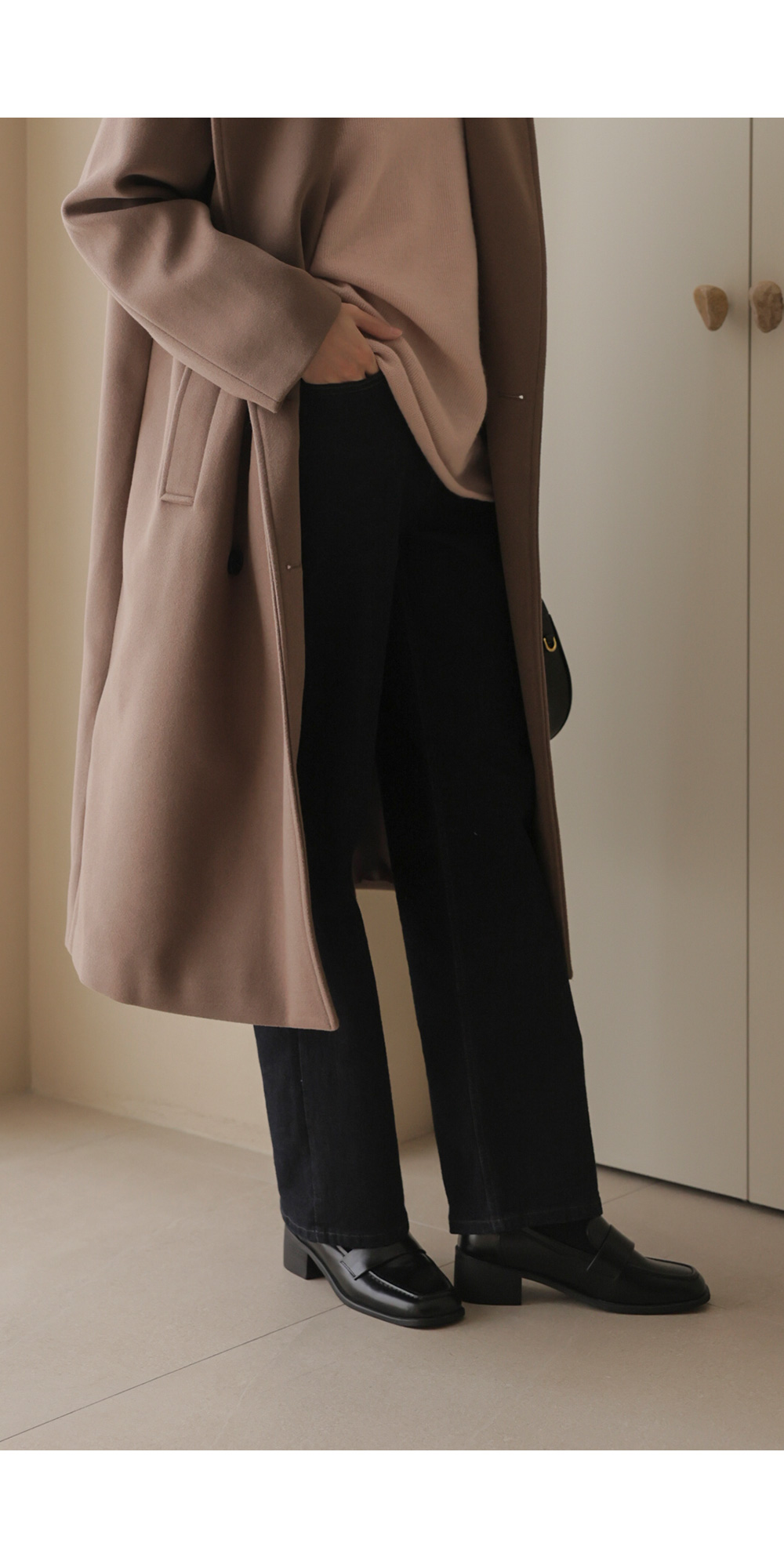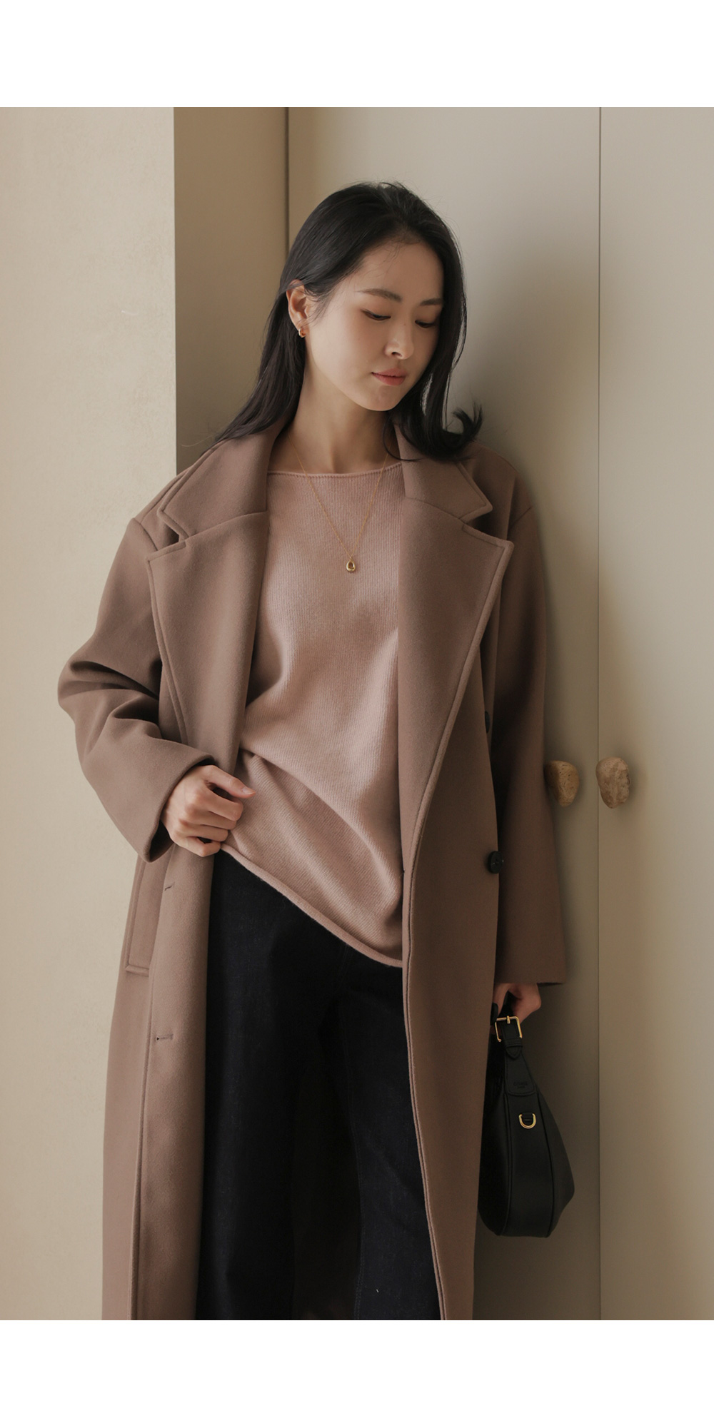 모델정보 HR : 키 167cm / 상의 55 / 하의 26(S) / 신발 240mm코디정보 하이엘 더블 울코트 _ 코코아렘넌트 캐시미어 울니트 _ 핑크 다히어 일자팬츠 _ 데님