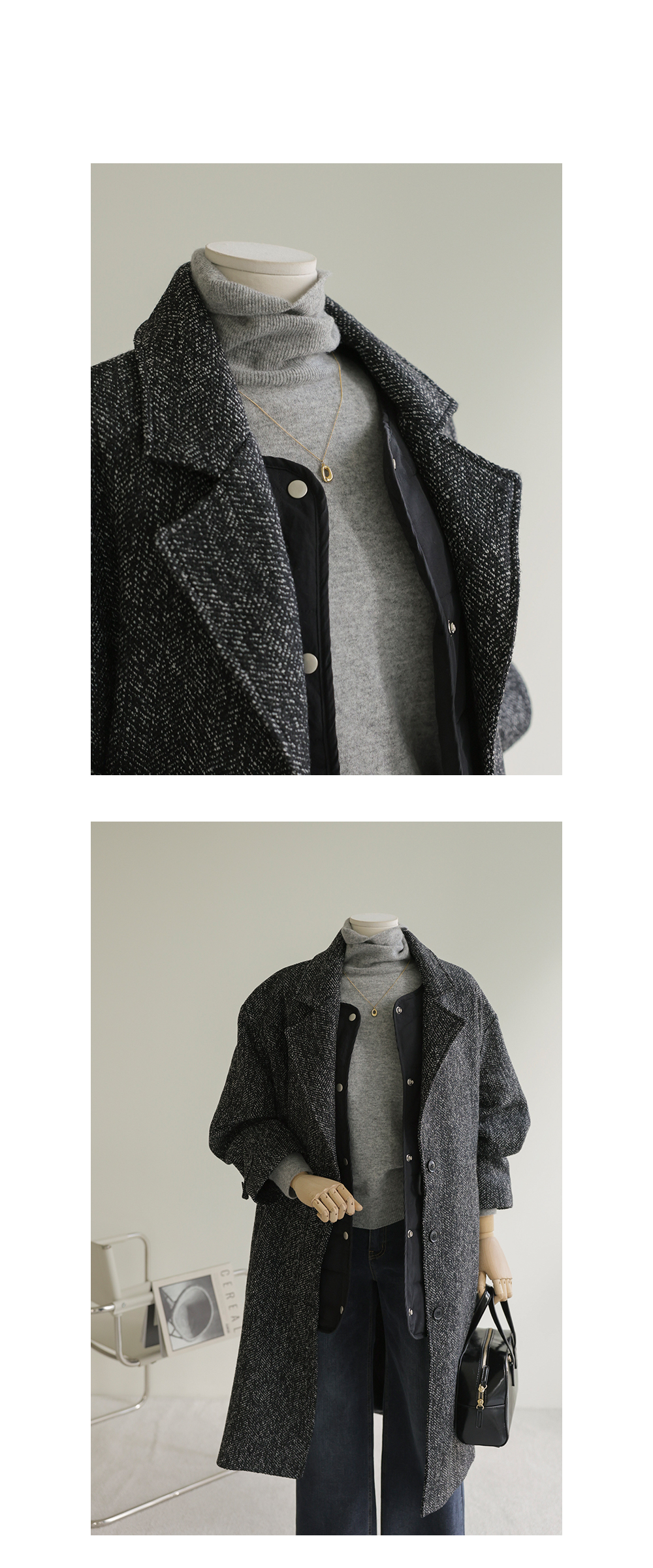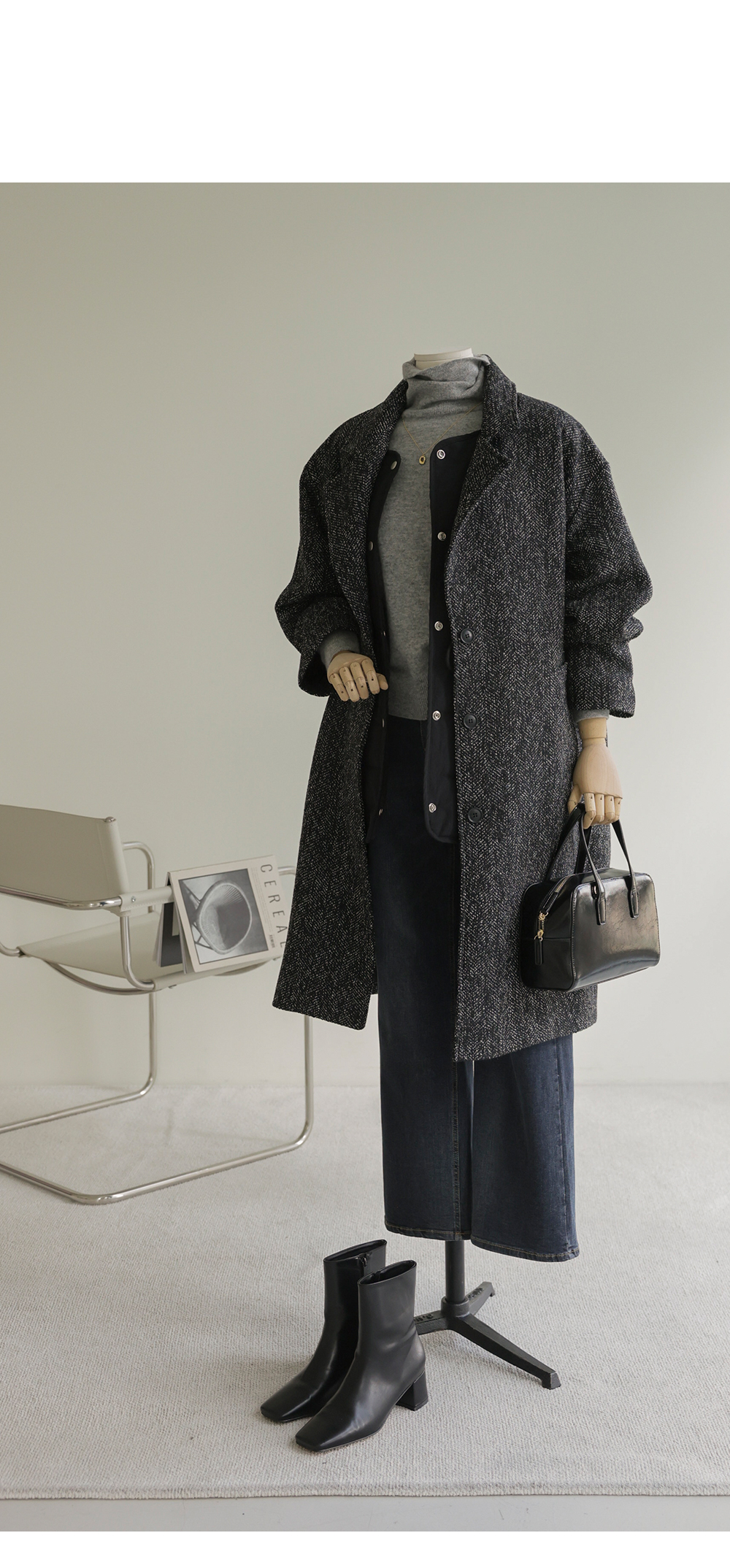 모델정보 키 167cm / 상의 55 / 하의 26(S) / 신발 240mm코디정보 구다케 헤링본 울코트 _ 블랙테치우 니트 세트 _ 블랙 하의 _ 코디용
