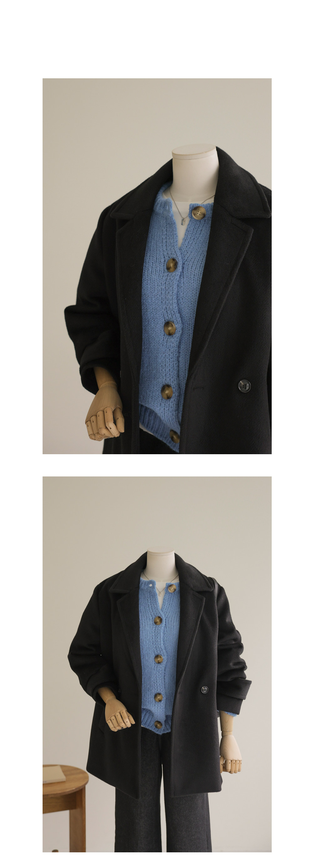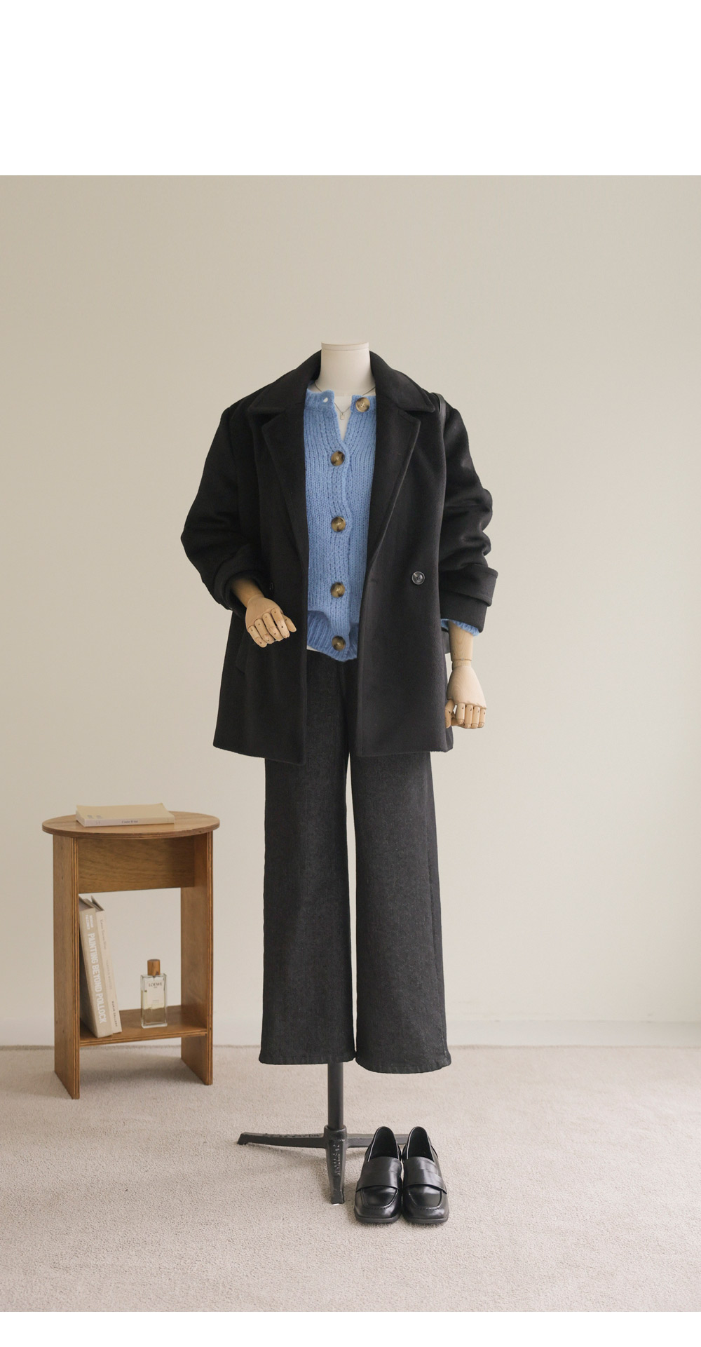 코디정보 카터추 하프 코트 _ 블랙세나스 알파카 울가디건 _ 스카이블루 카이븐 티셔츠 _ 아이보리 그로피 여유일자 팬츠 _ 블랙데님