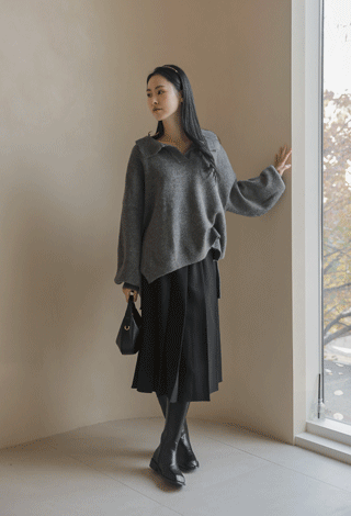 코디정보 두네미 맨투맨 _ 멜란지퍼미특 배기팬츠 _ 블랙