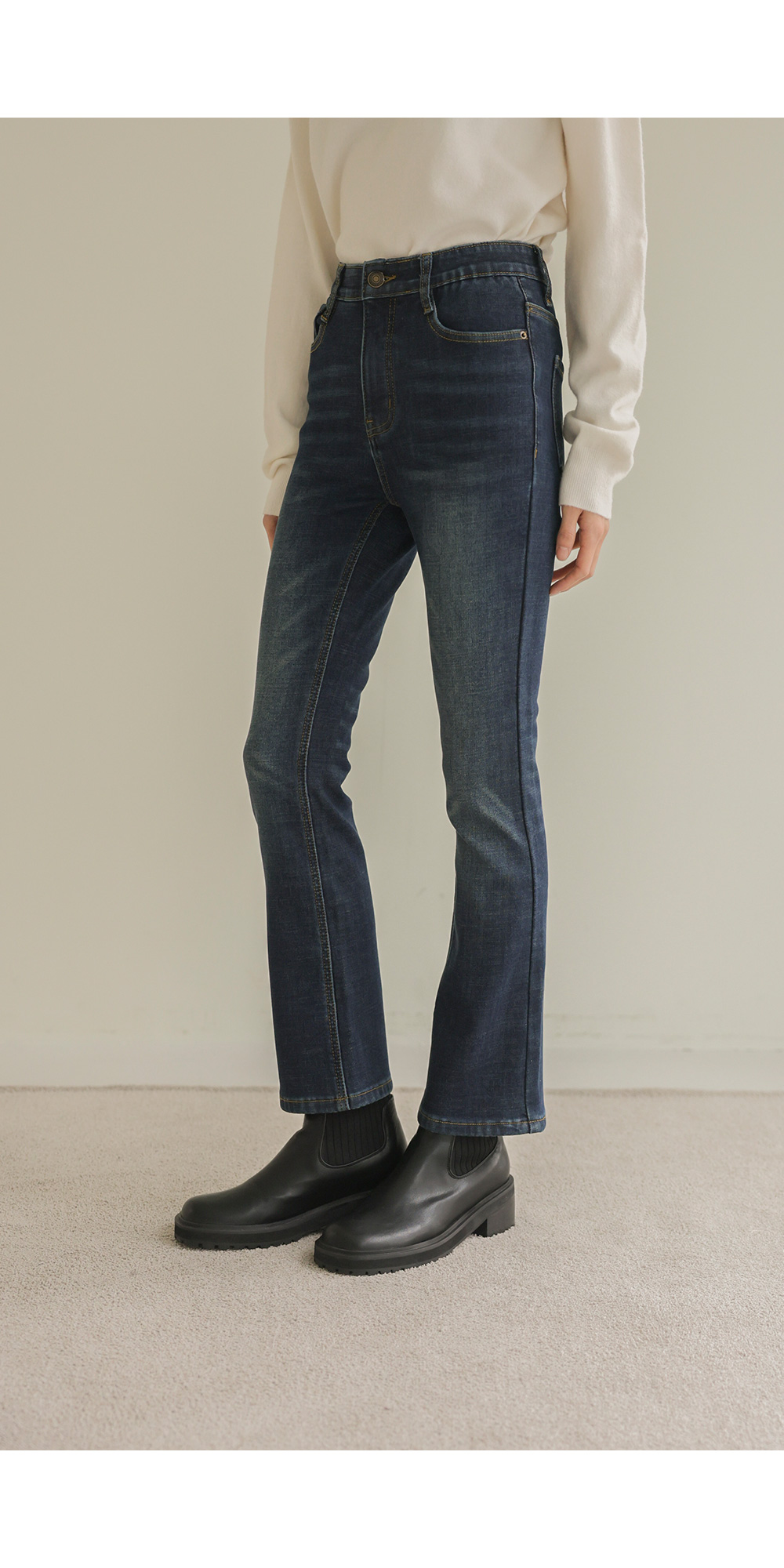 코디정보 말리온 조끼 _ 베이지히드라 캐시미어 폴라니트 _ 크림 사서나 슬림부츠컷 팬츠 _ 데님
