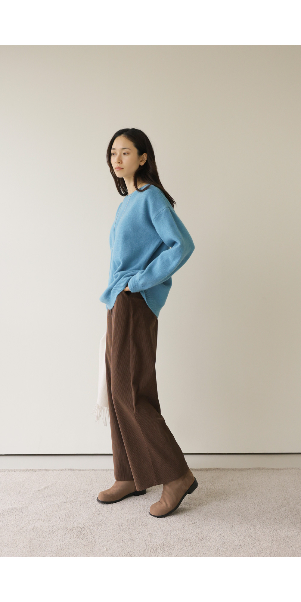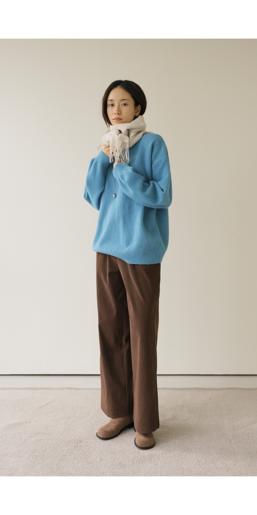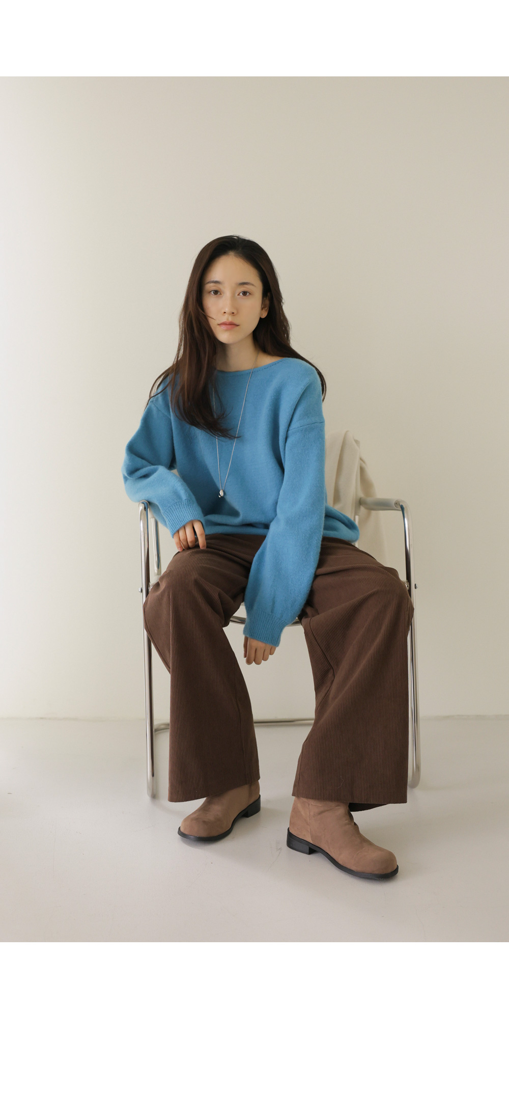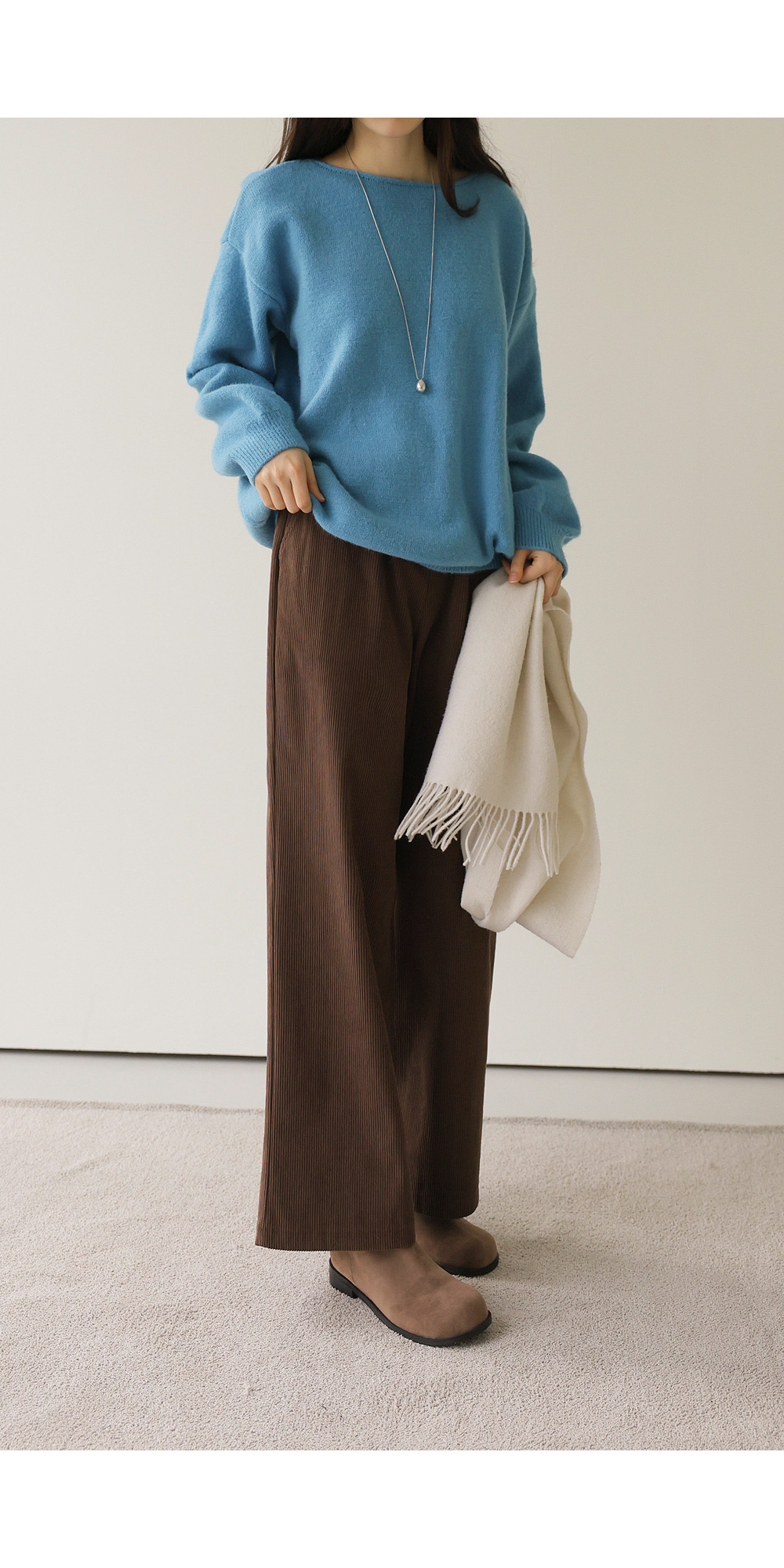 코디정보 티리히 보트넥 니트 _ 블루굿커버 여유일자 팬츠 _ 브라운