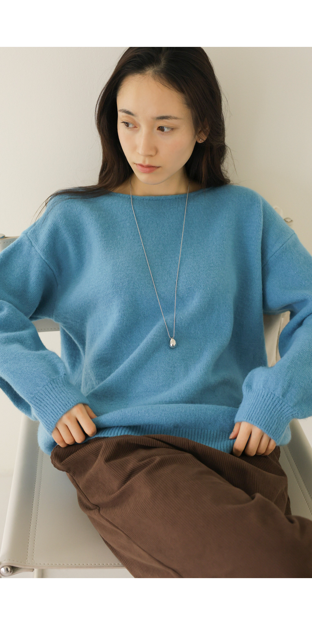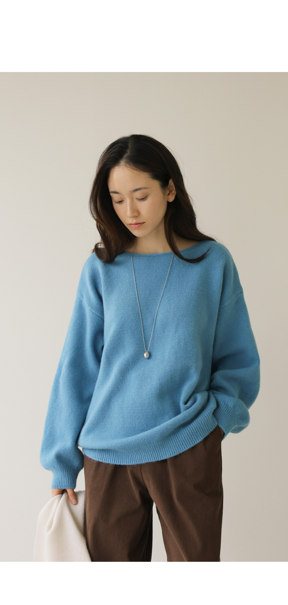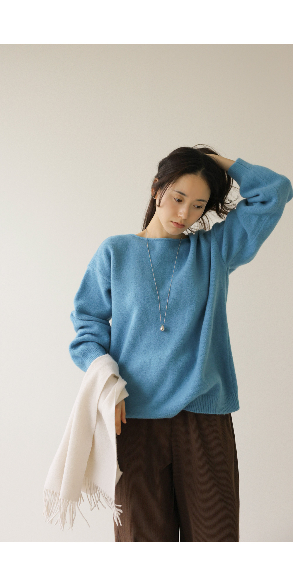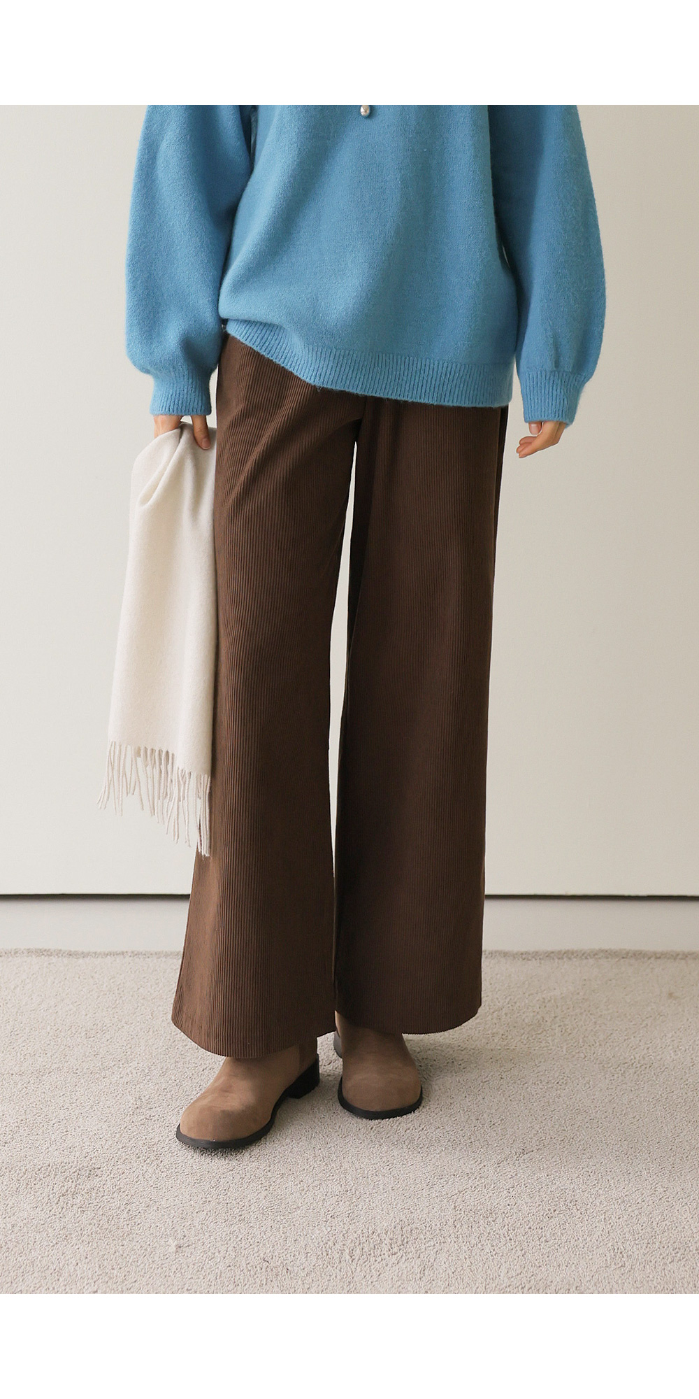 코디정보 티리히 보트넥 니트 _ 블루굿커버 여유일자 팬츠 _ 브라운
