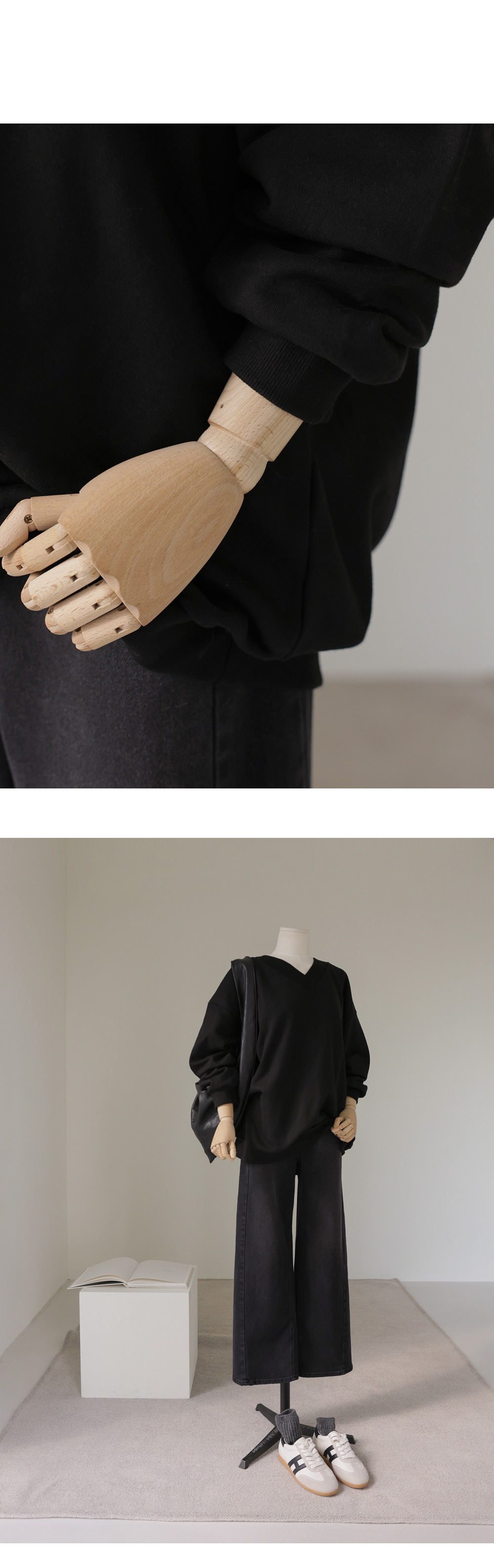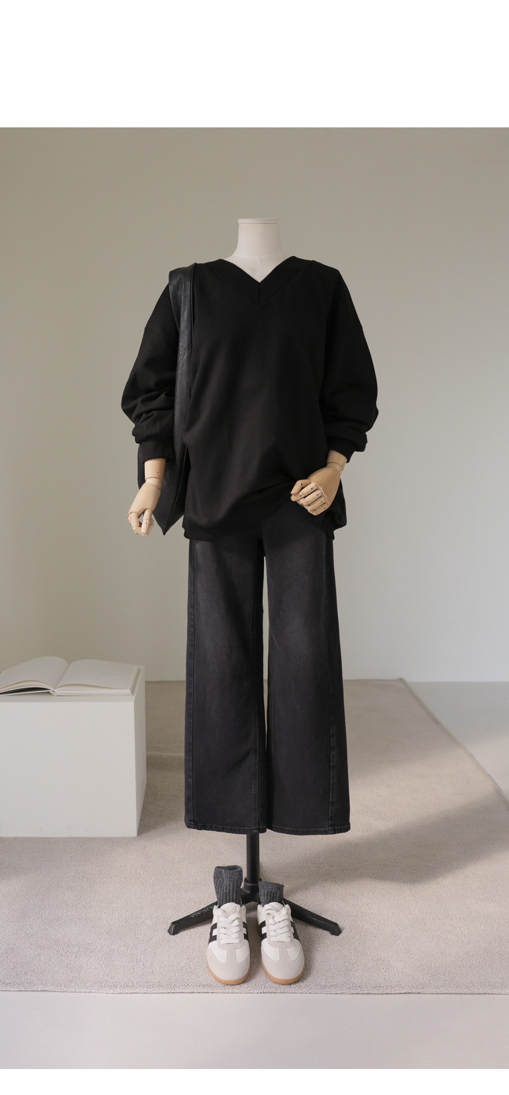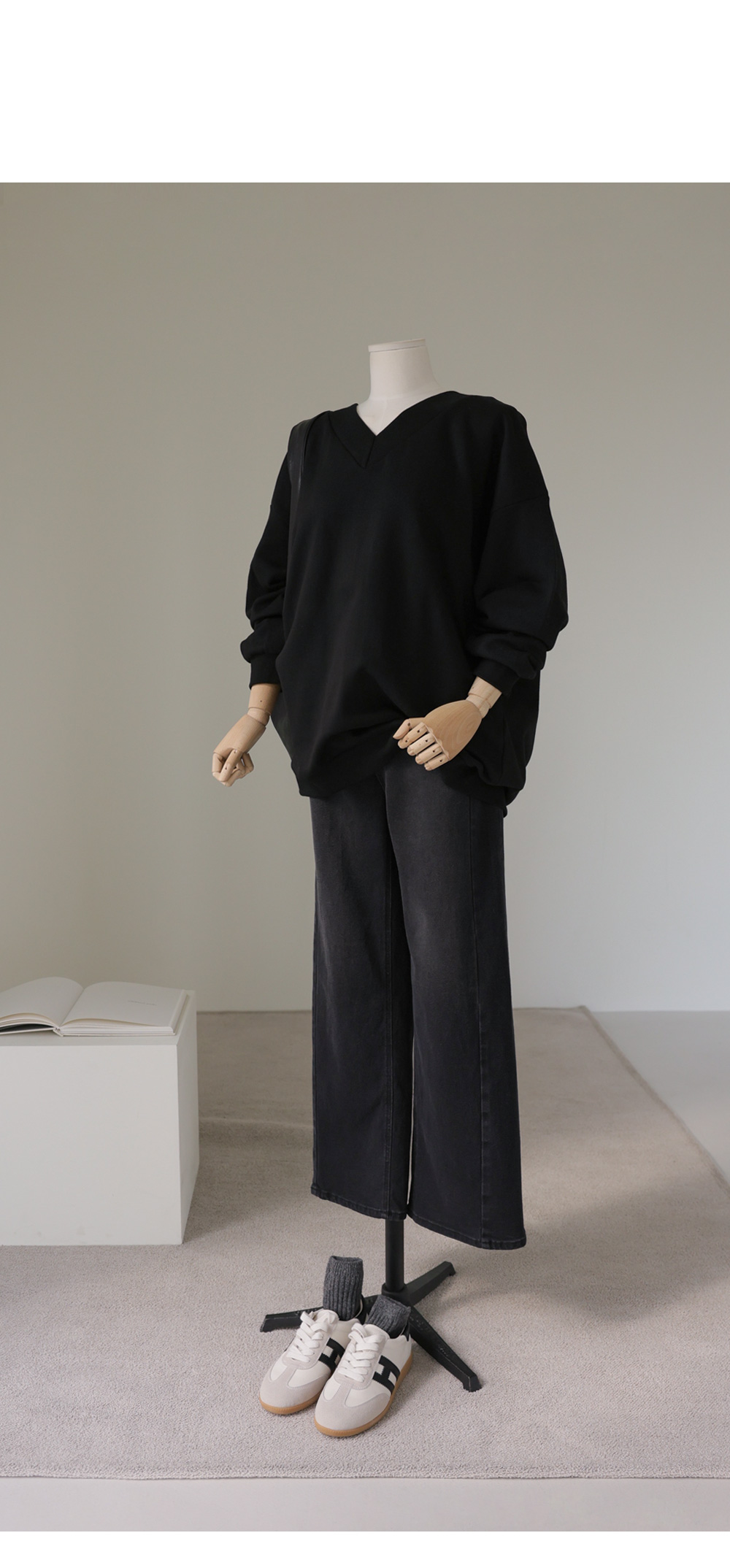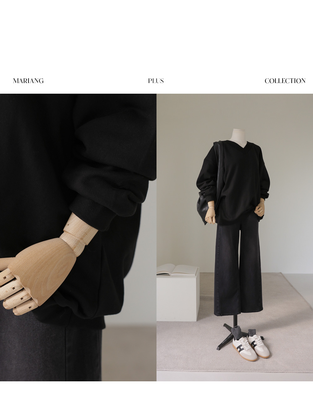 차마머 브이넥 맨투맨 _ 멜란지,블랙