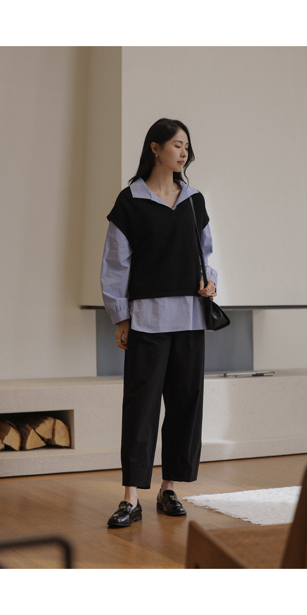 게두어 여유배기 팬츠 _ 베이지,블랙