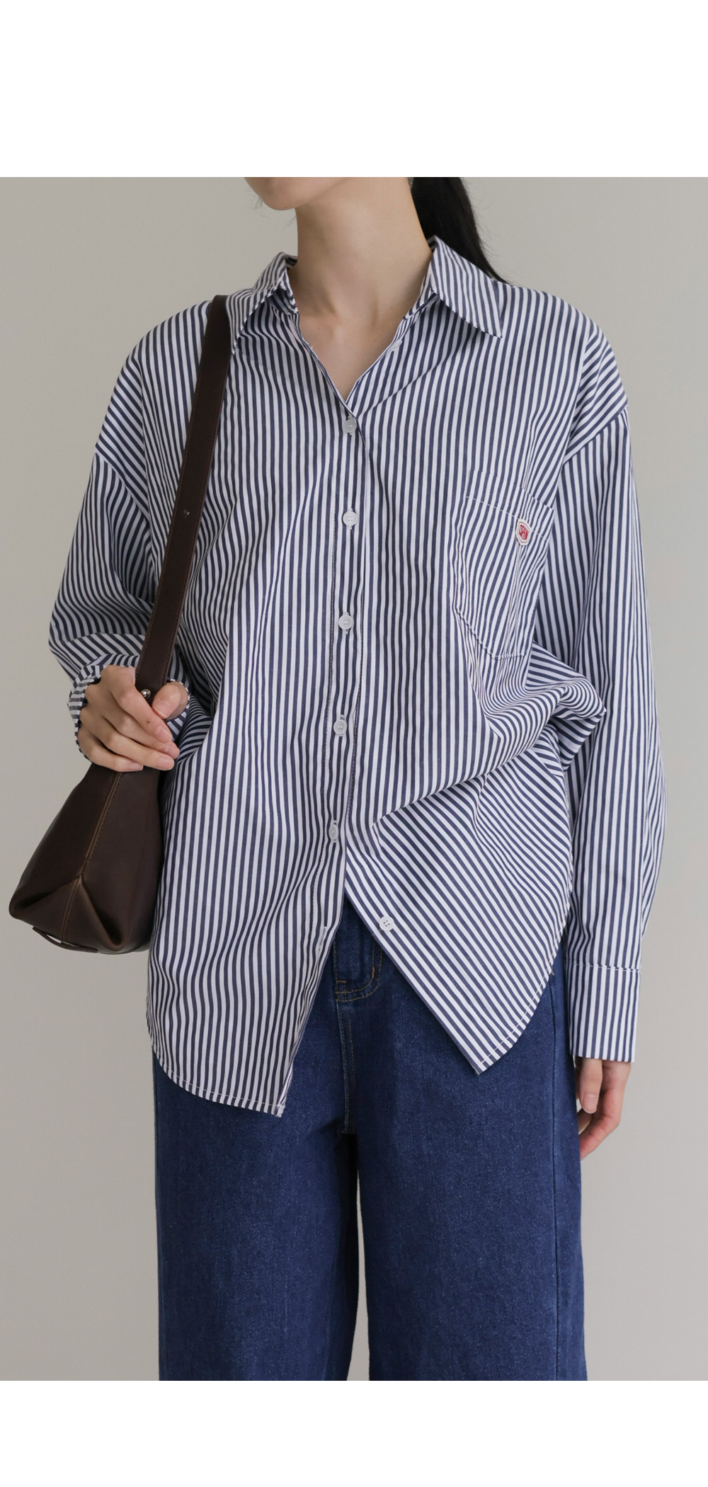 수솔케 스트라이프 셔츠 _ 와인,네이비
