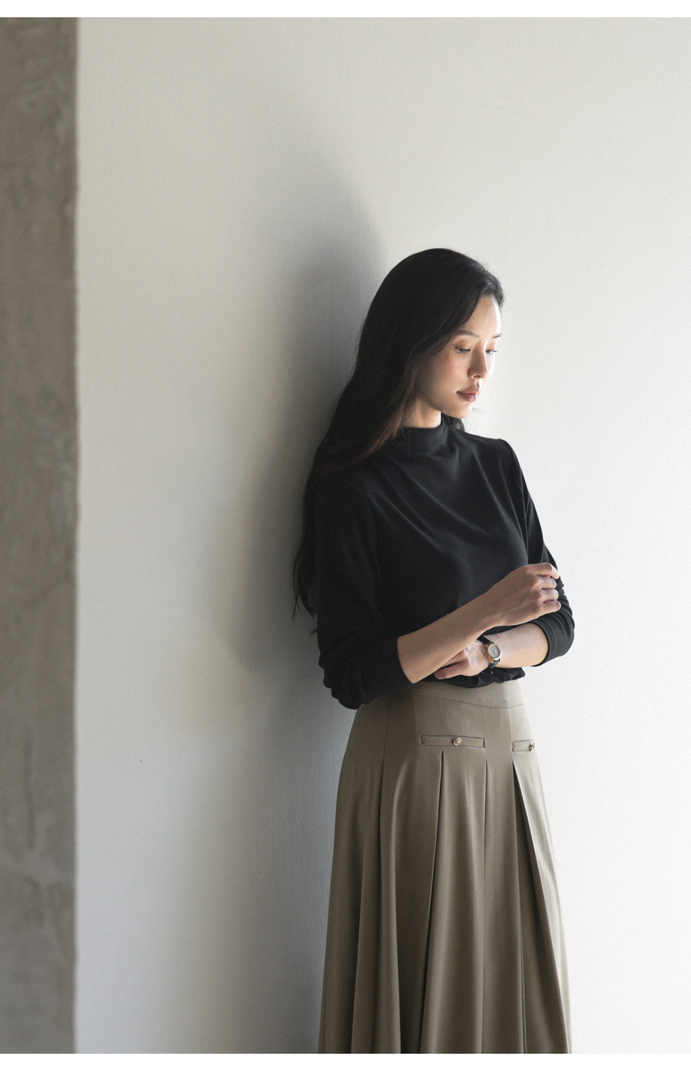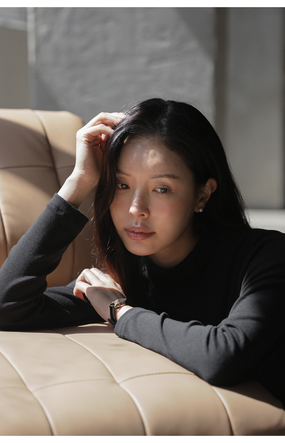 아델린 하프넥 셔링 티셔츠 _ 블랙,베이지