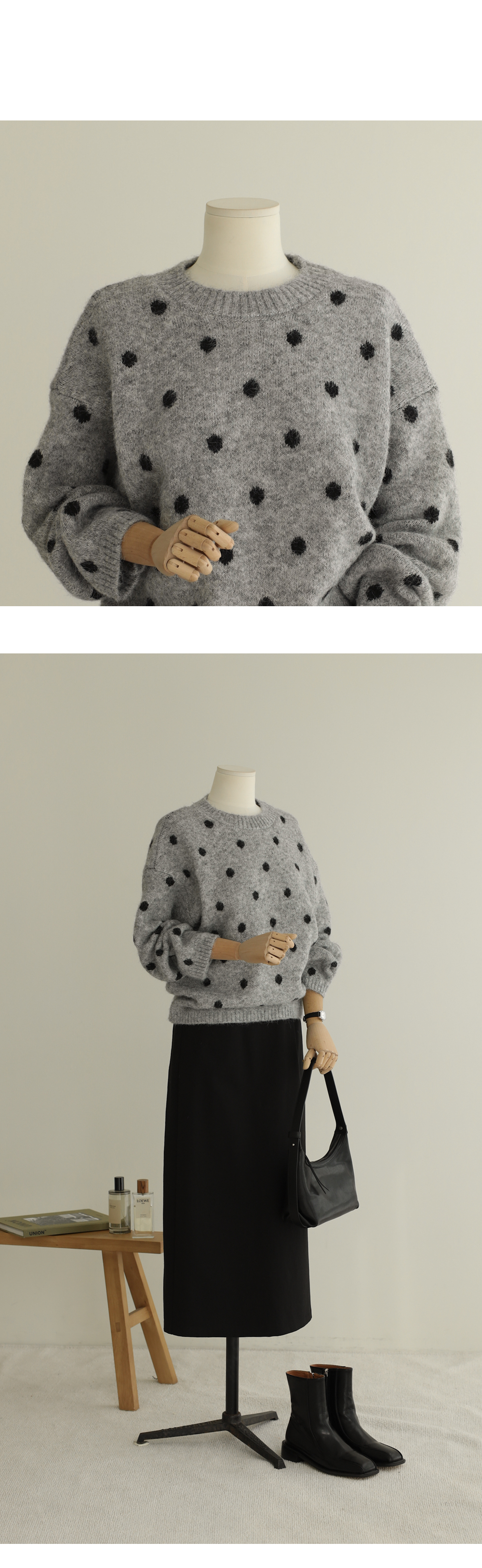 코렌디 도트 니트 _ 라이트그레이,커피