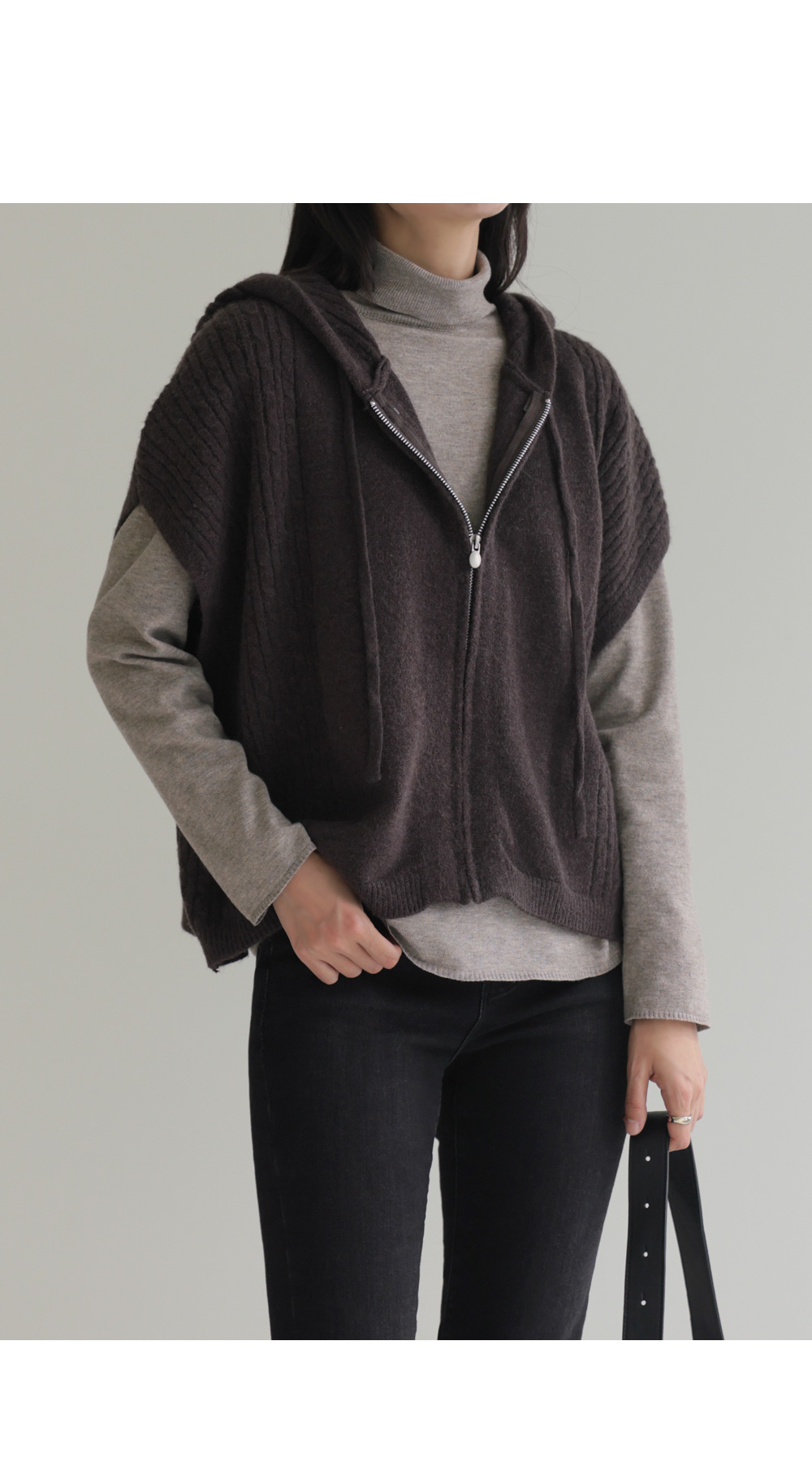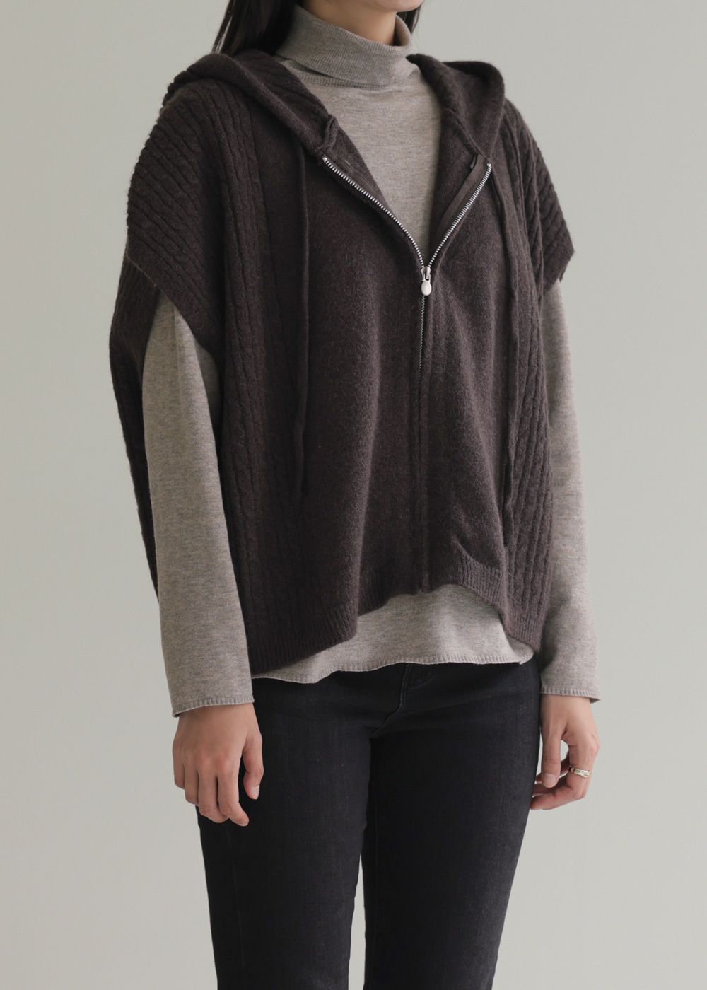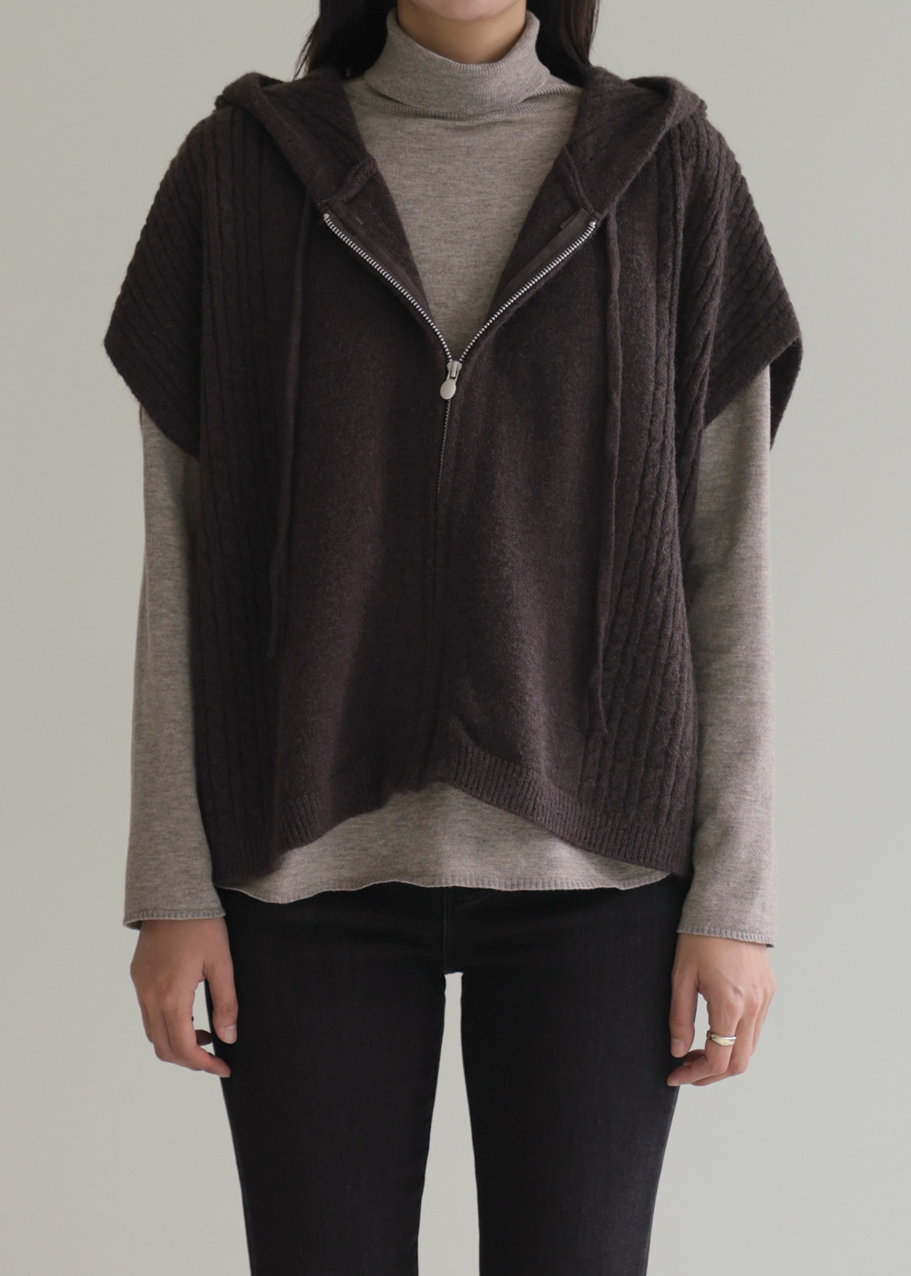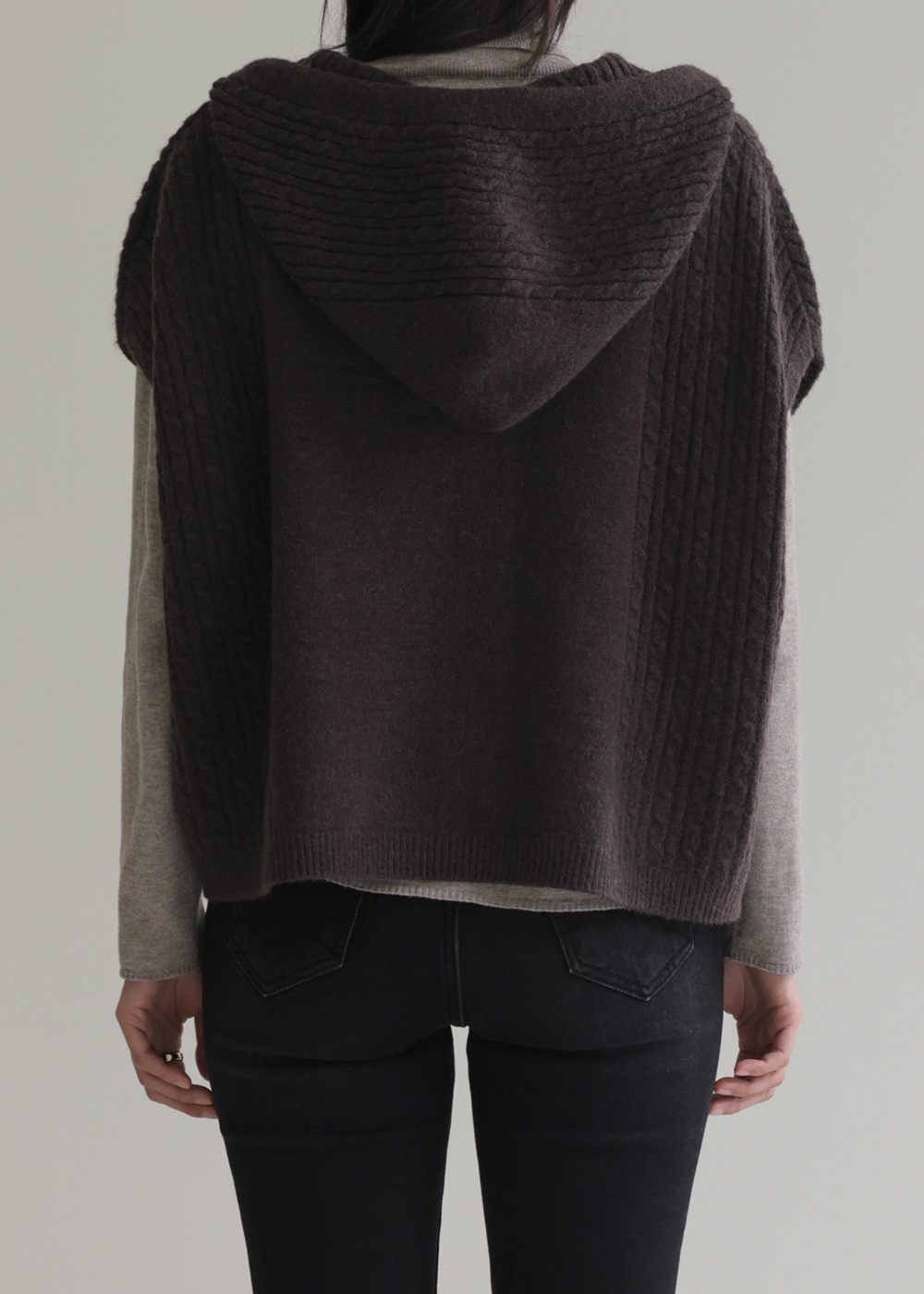 미노벨 후드니트 조끼 _ 브라운