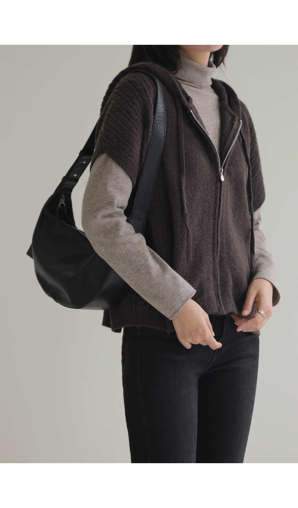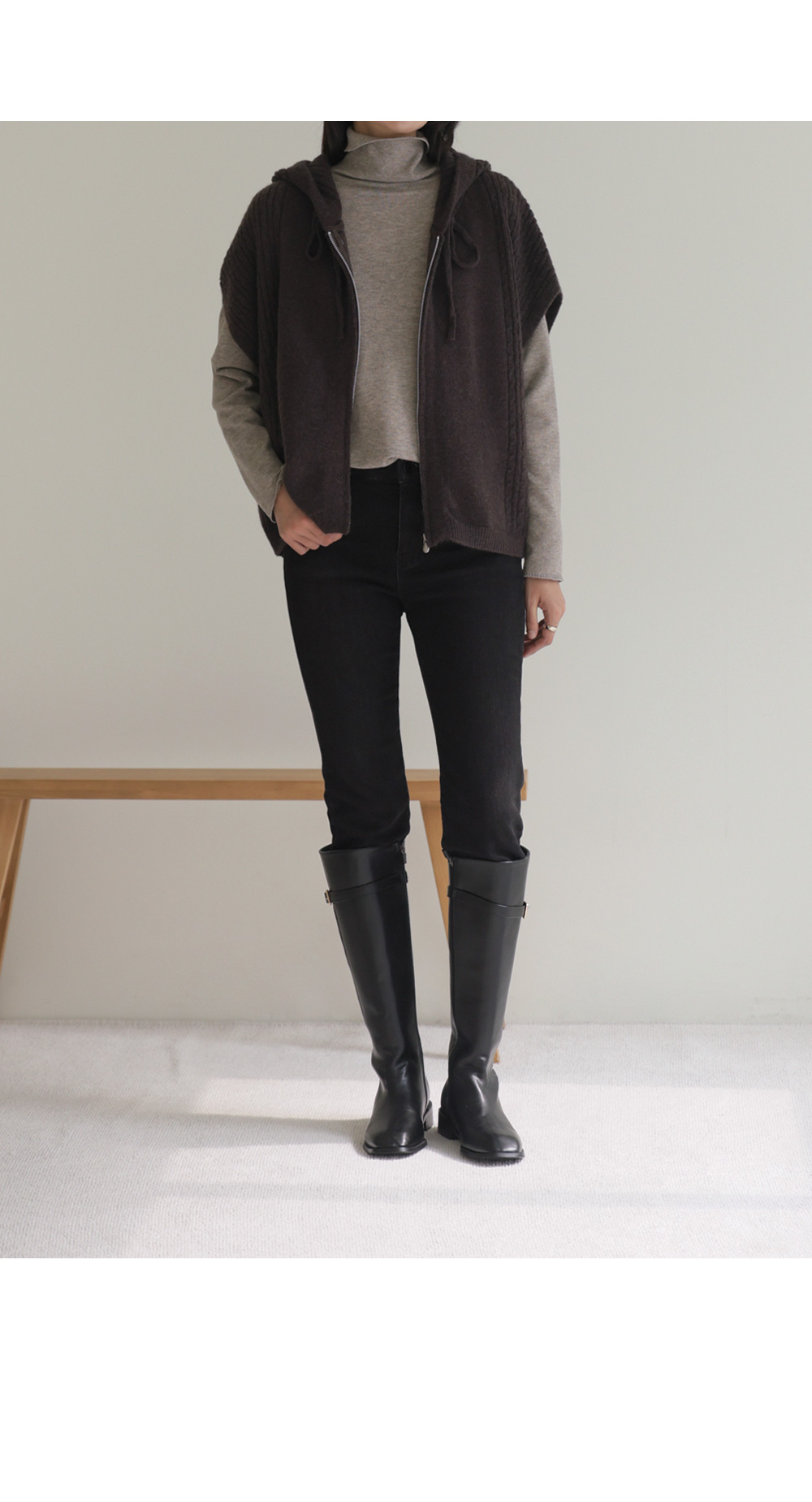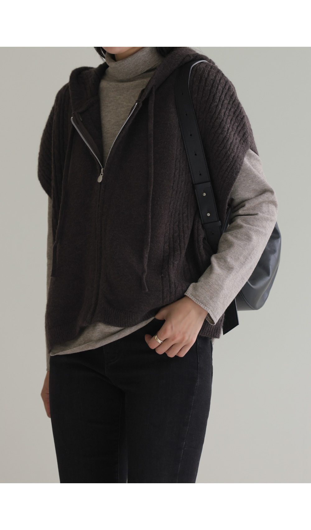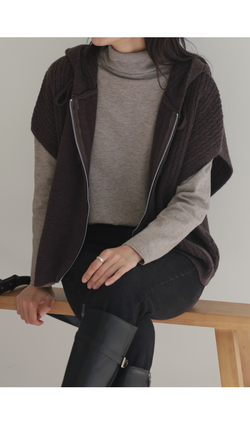 미노벨 후드니트 조끼 _ 브라운