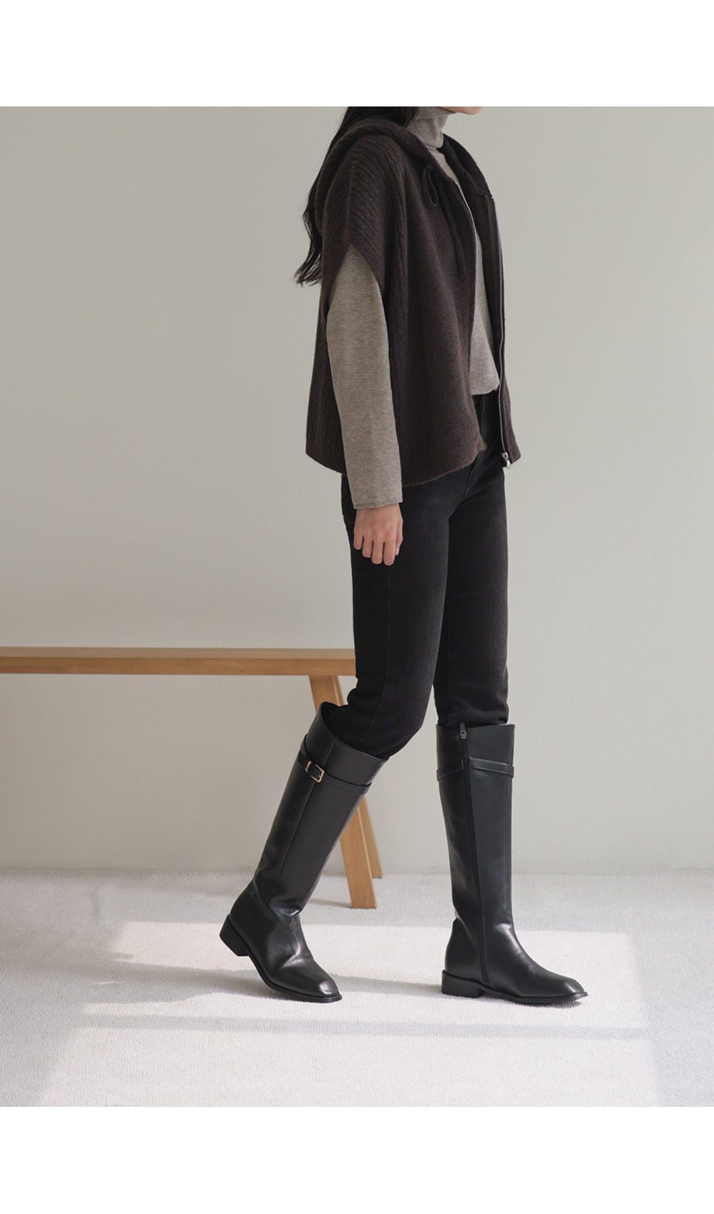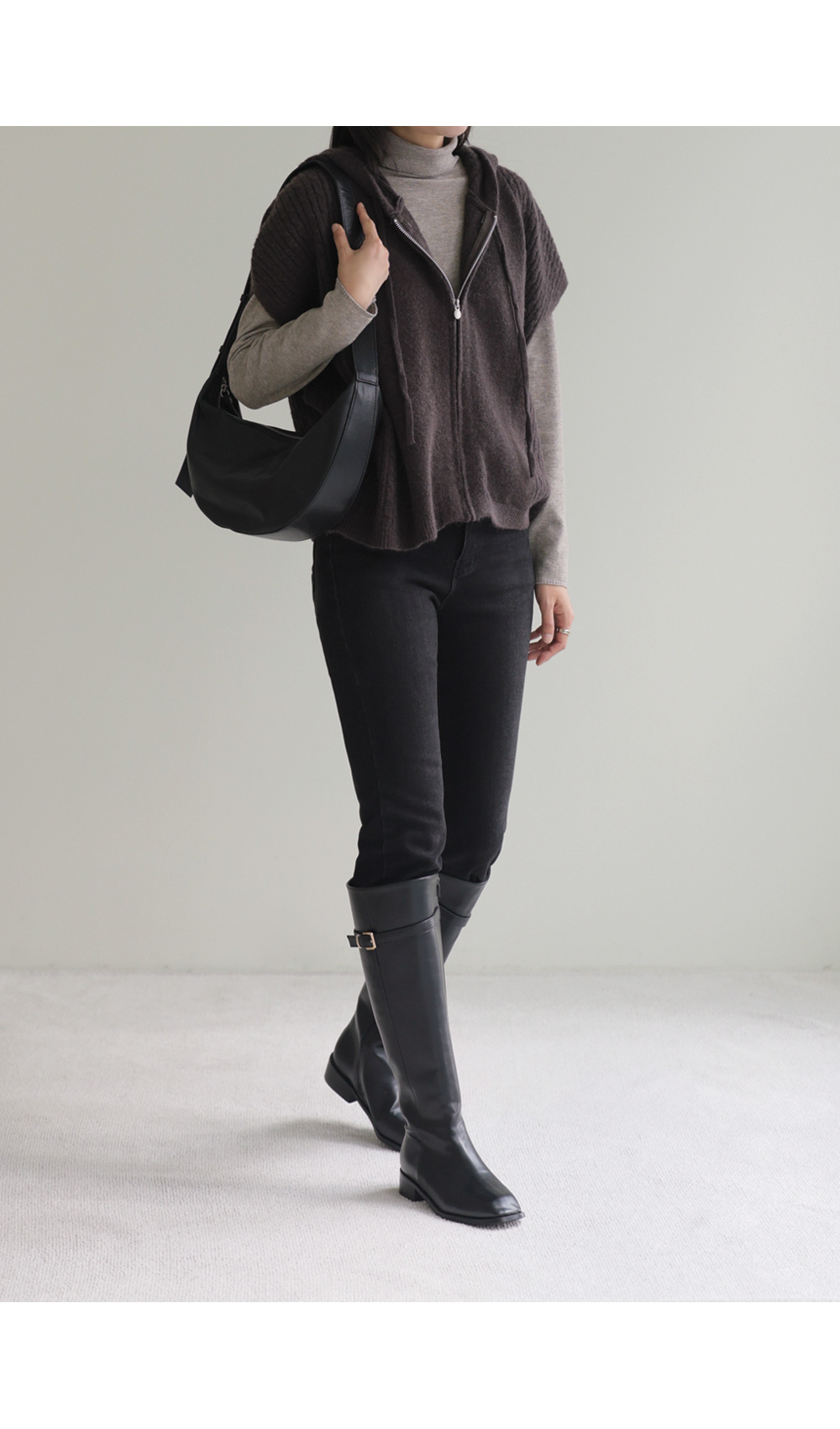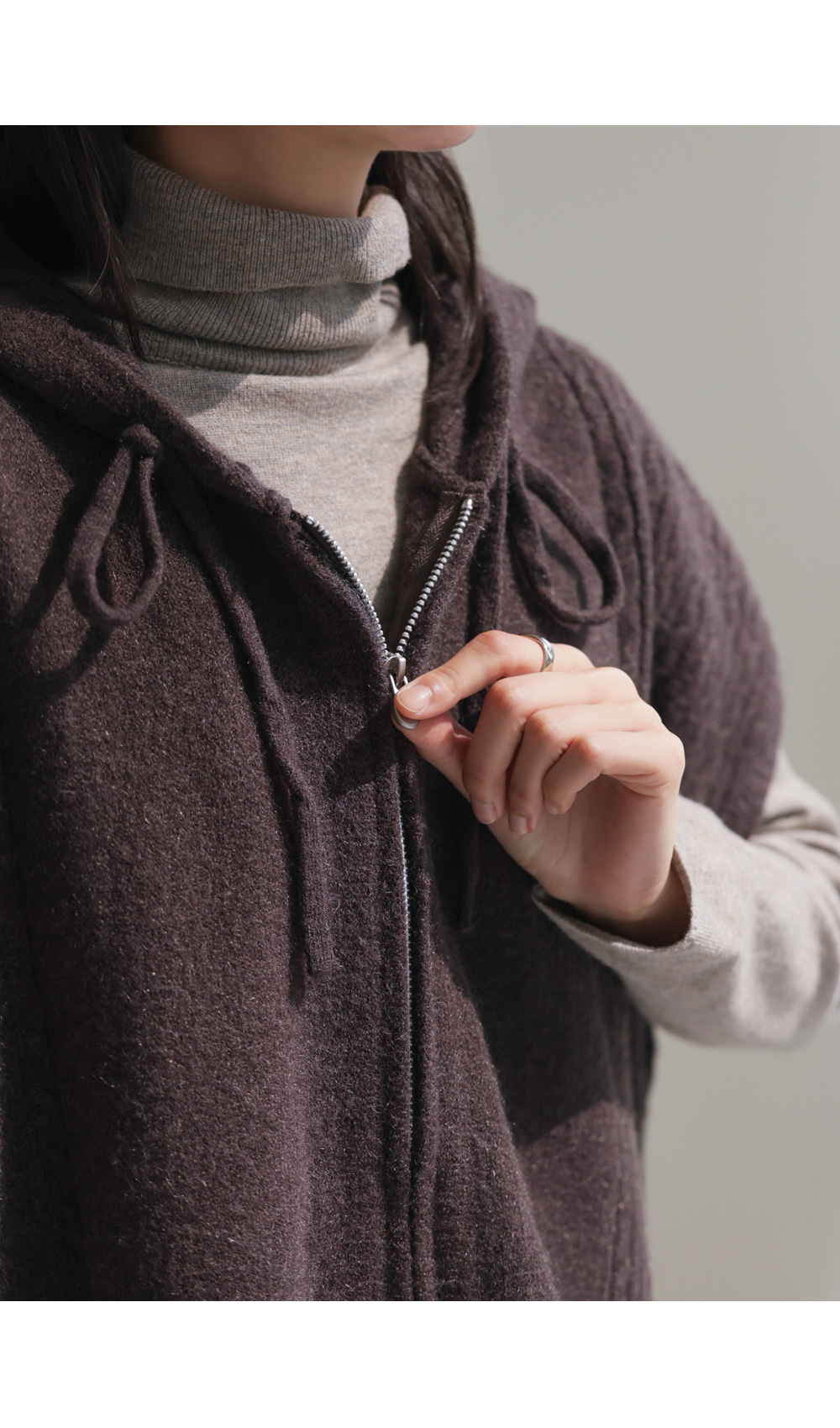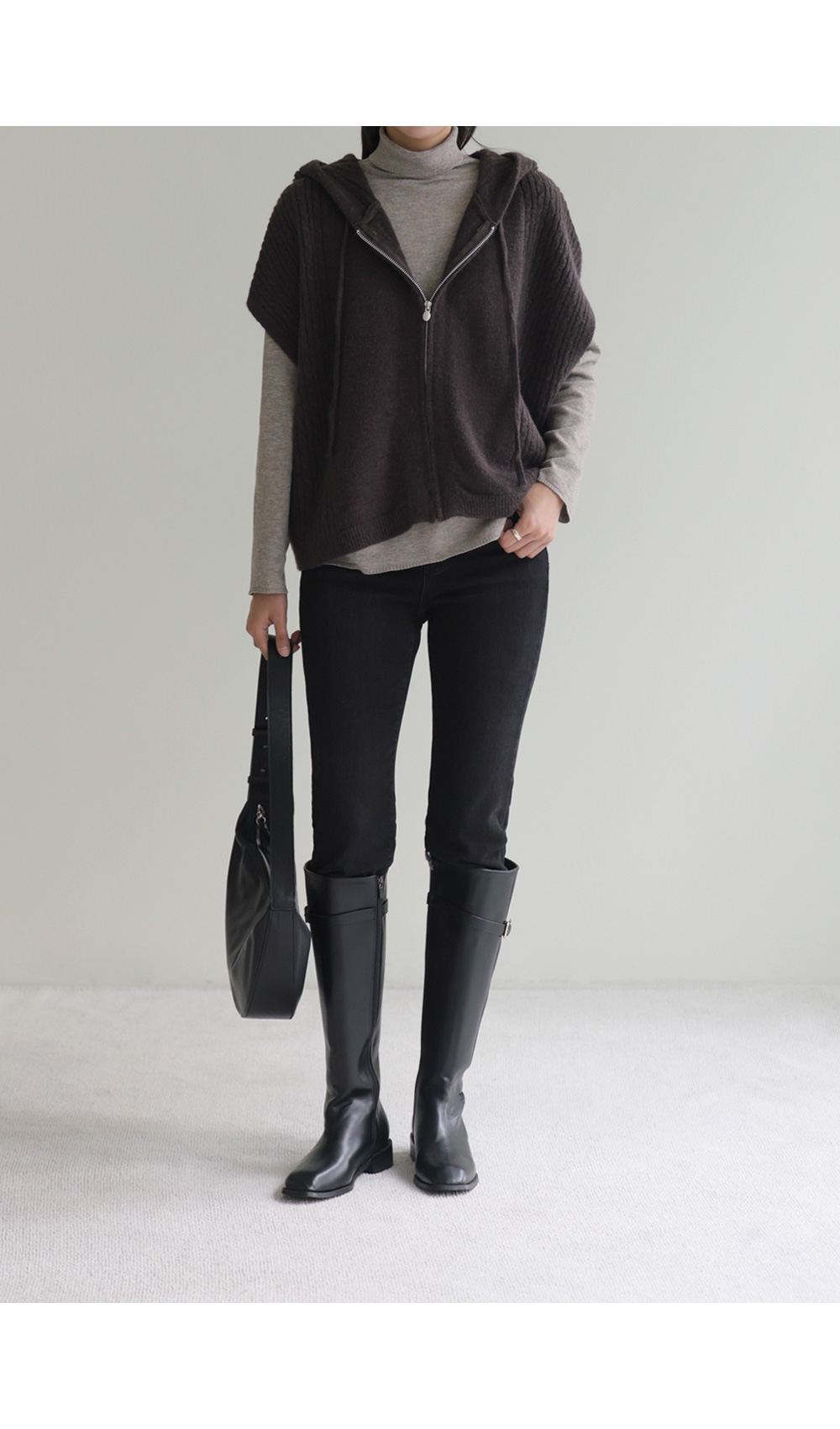 미노벨 후드니트 조끼 _ 브라운