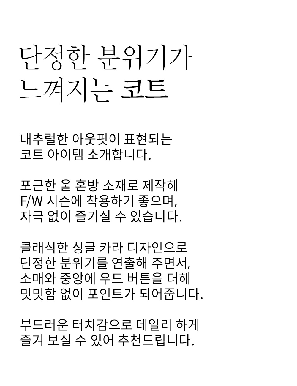 ※첫 세탁은 드라이클리닝을 권장합니다.