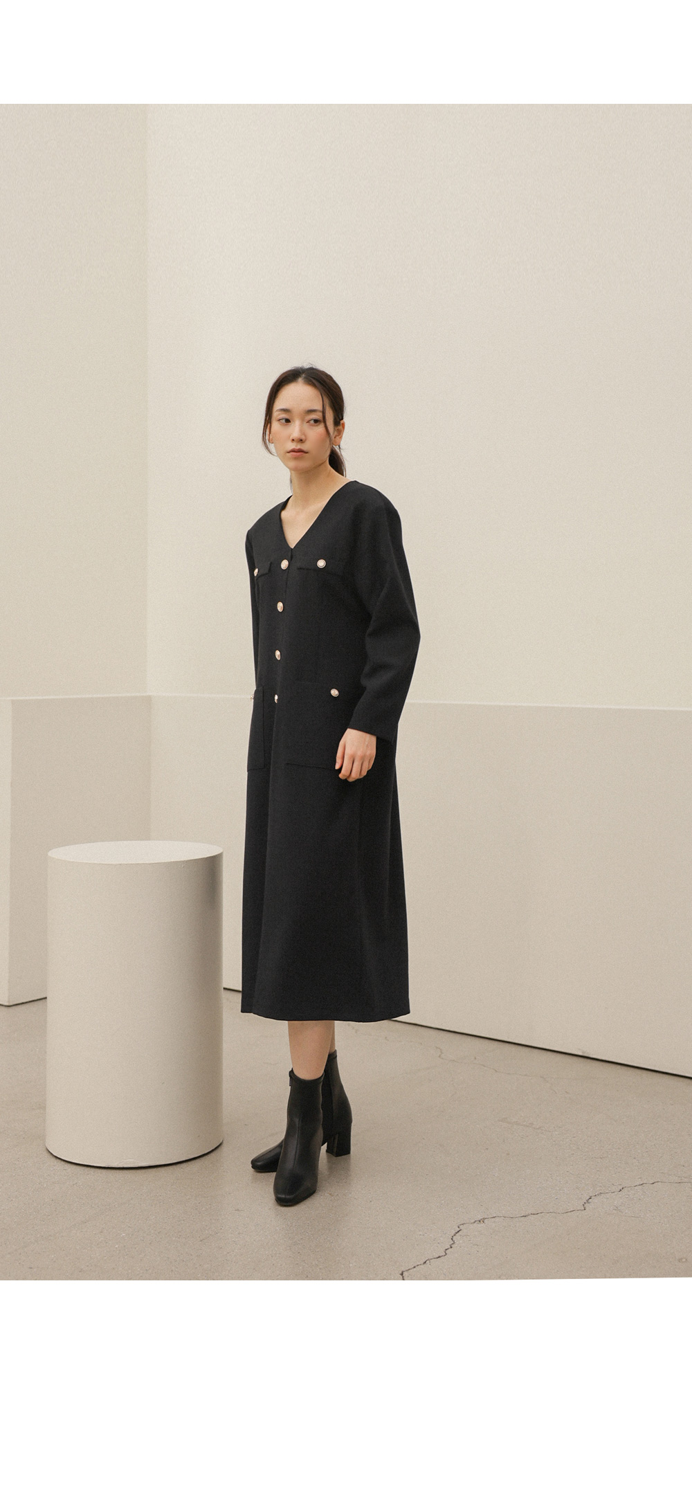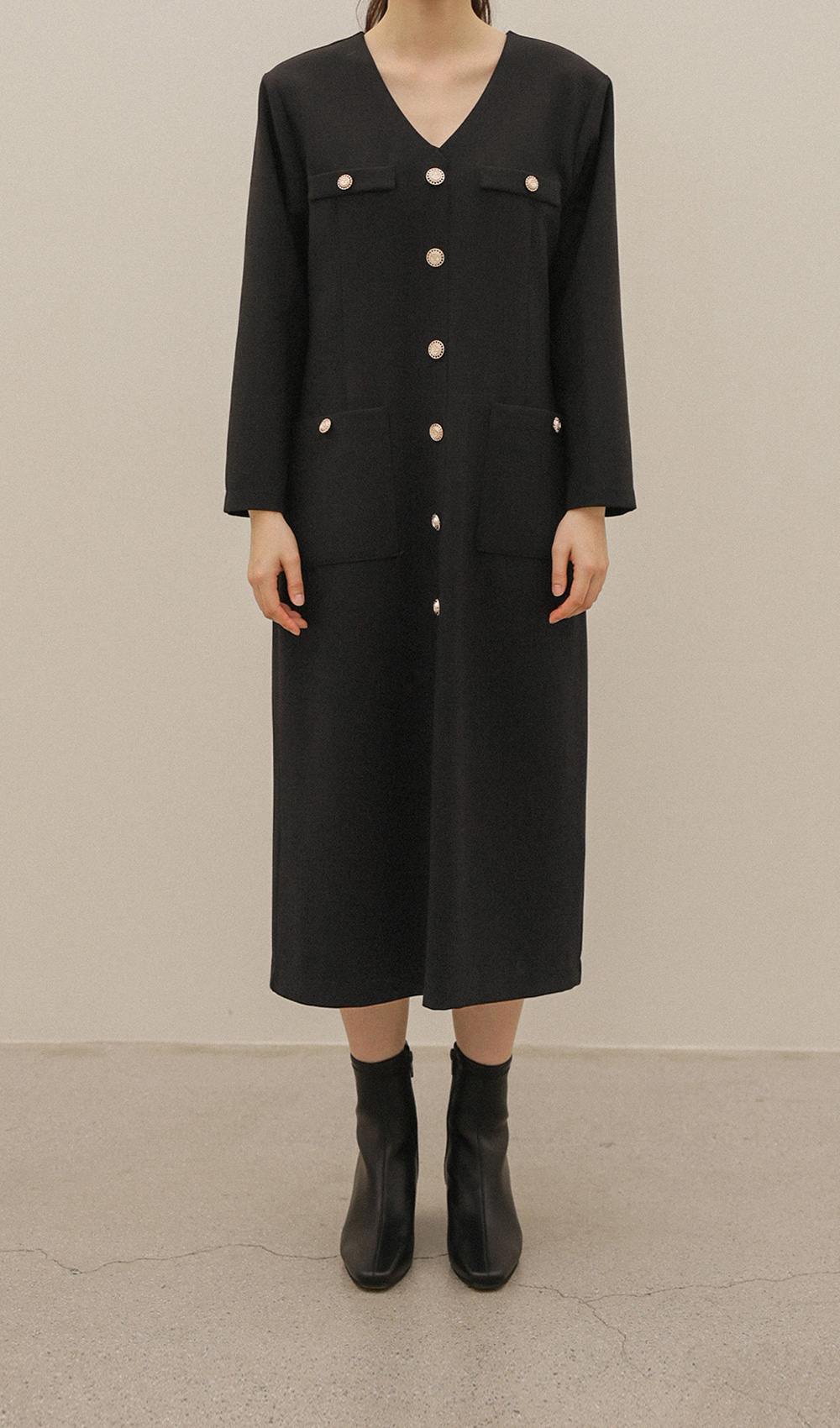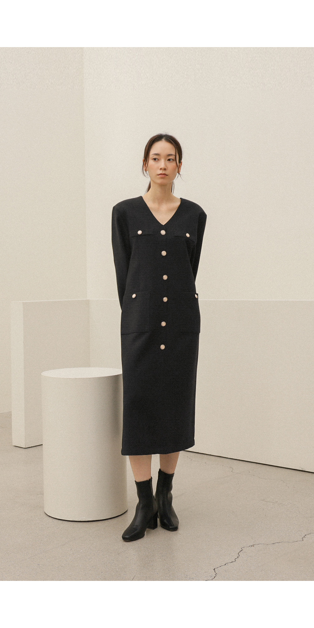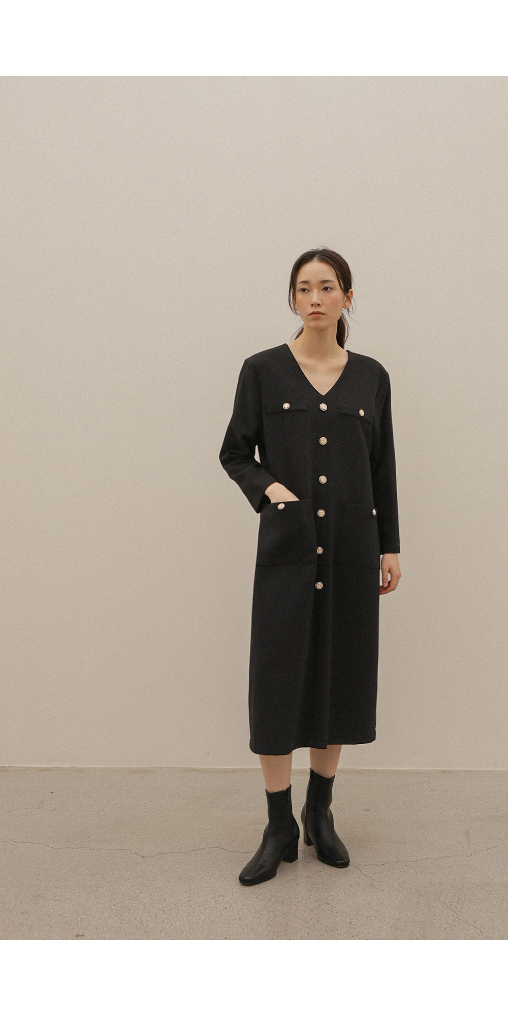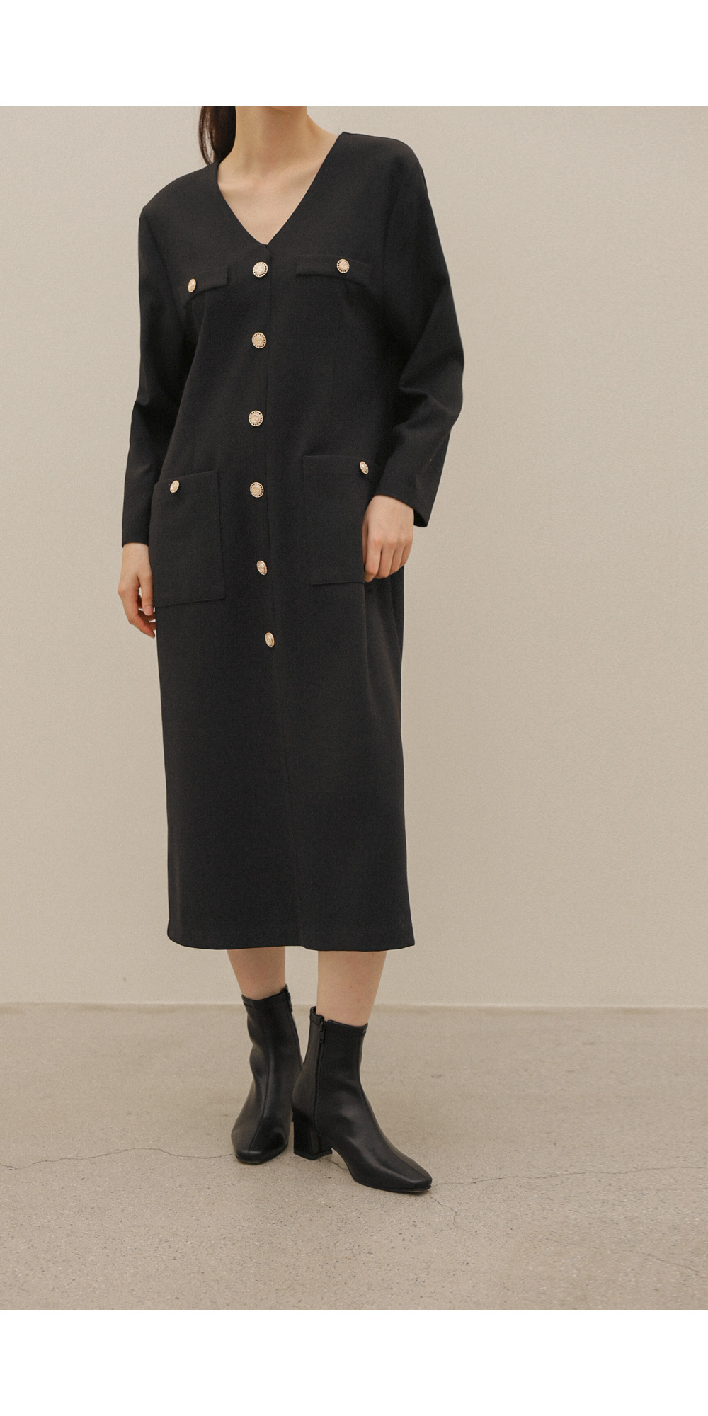 헤리온 브이넥 원피스 _ 블랙