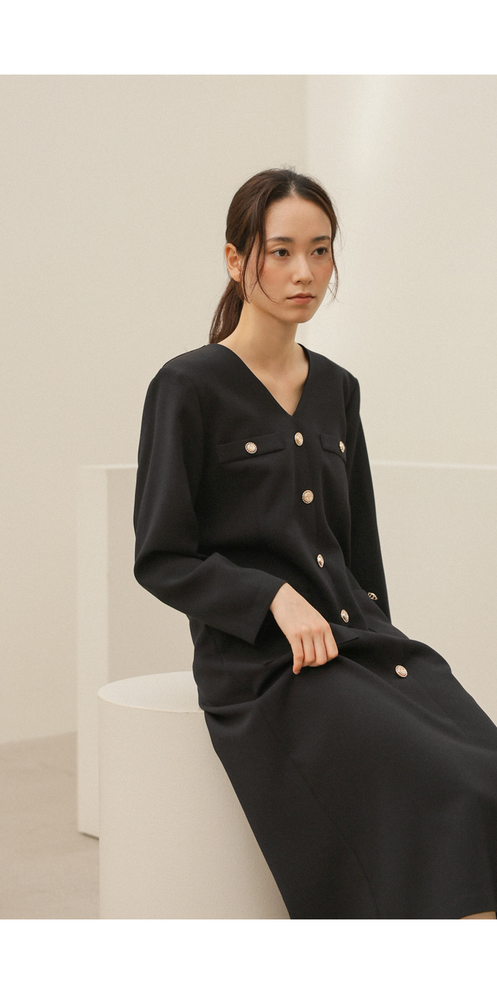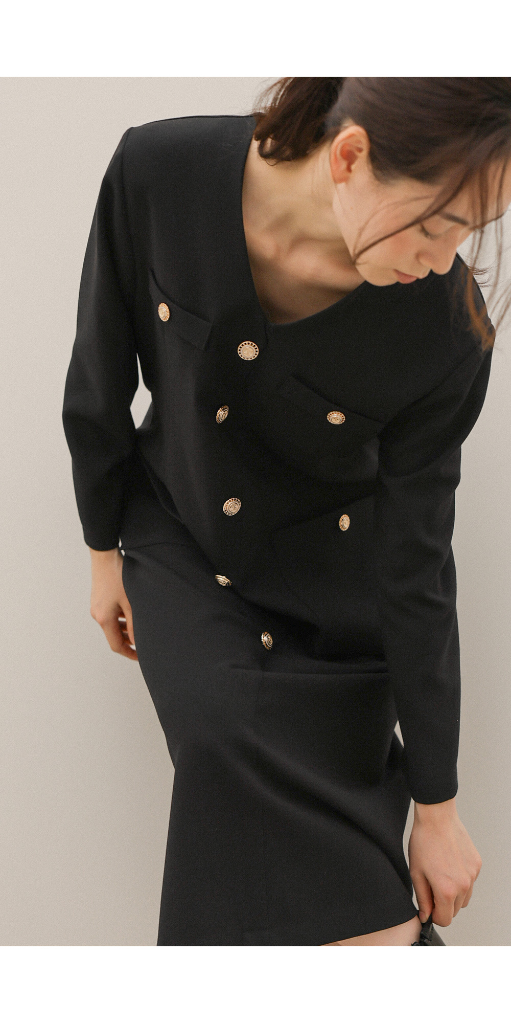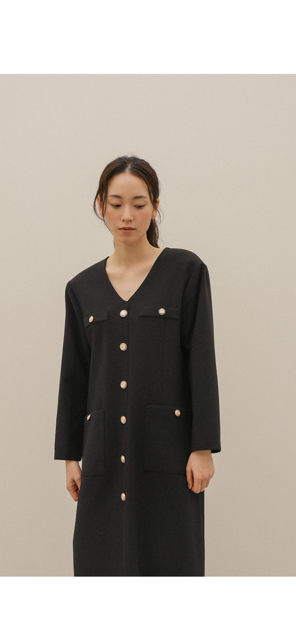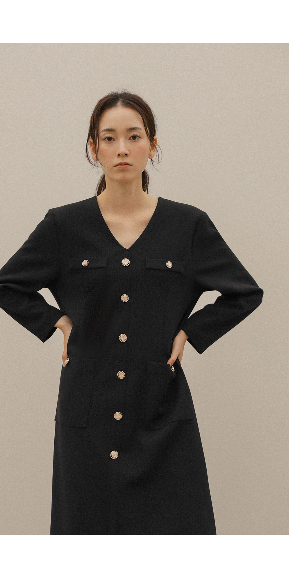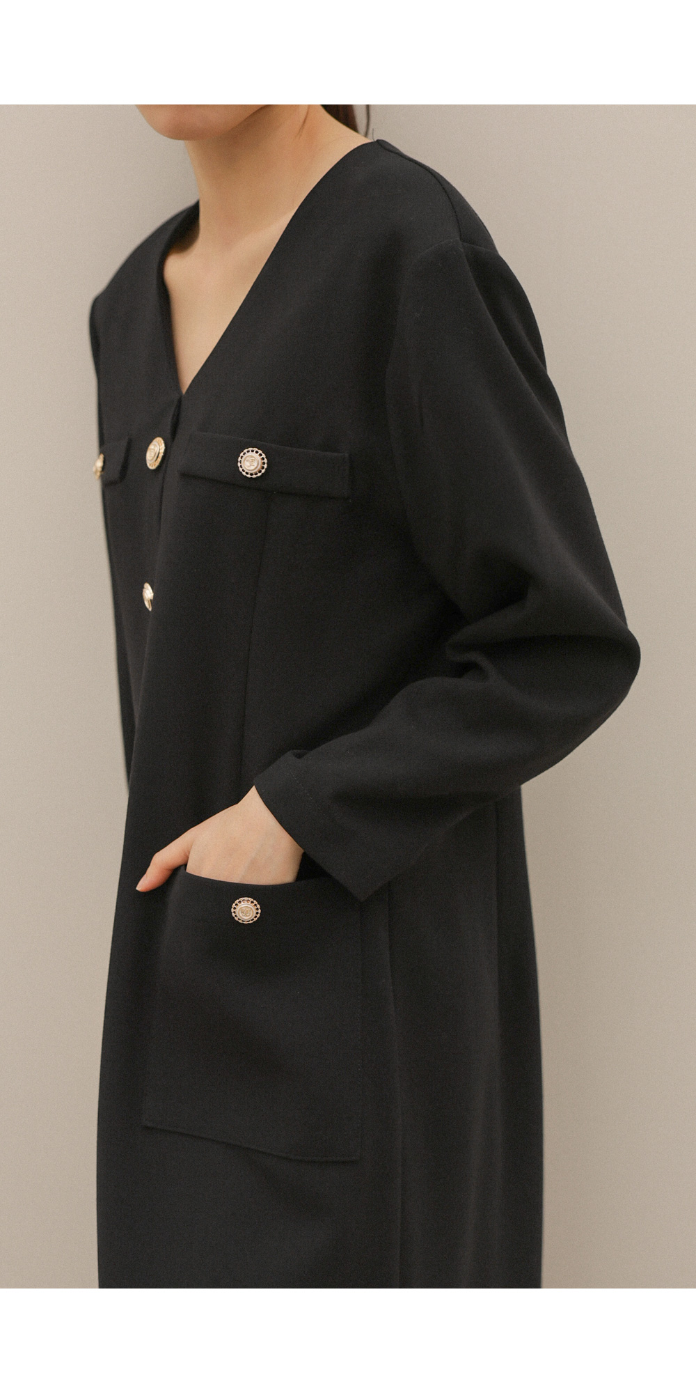 헤리온 브이넥 원피스 _ 블랙