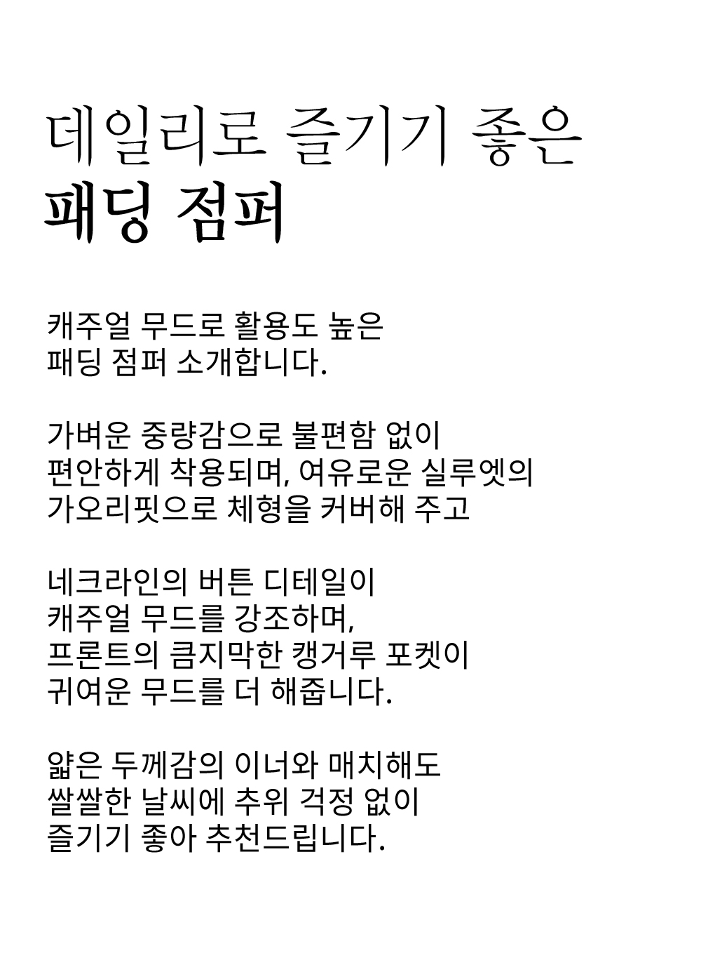 핏감 살짝루즈  /   전체길이 힙덮음  /