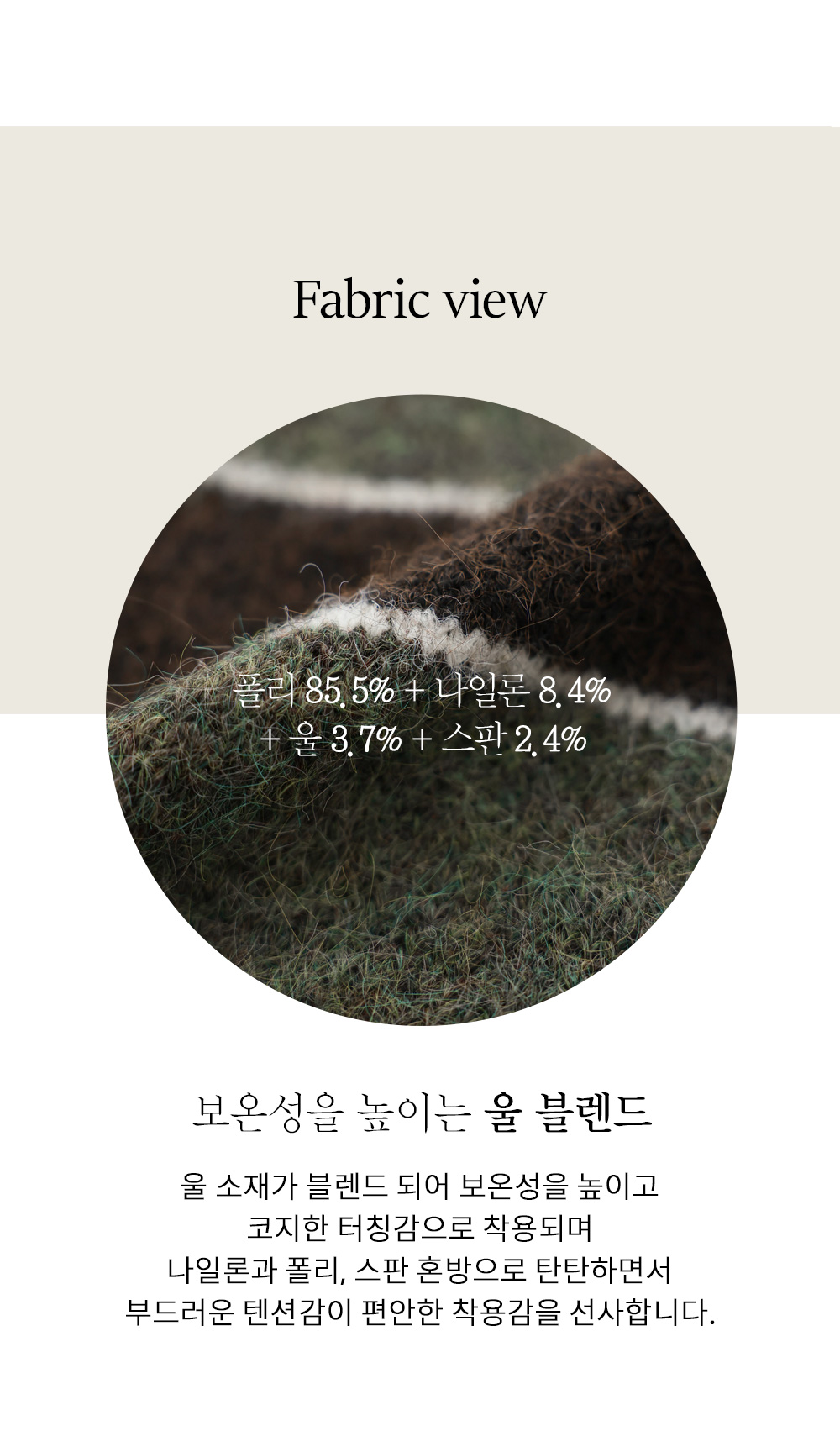 폴리85.5%,나일론8.4%,울3.7%,스판2.4%
