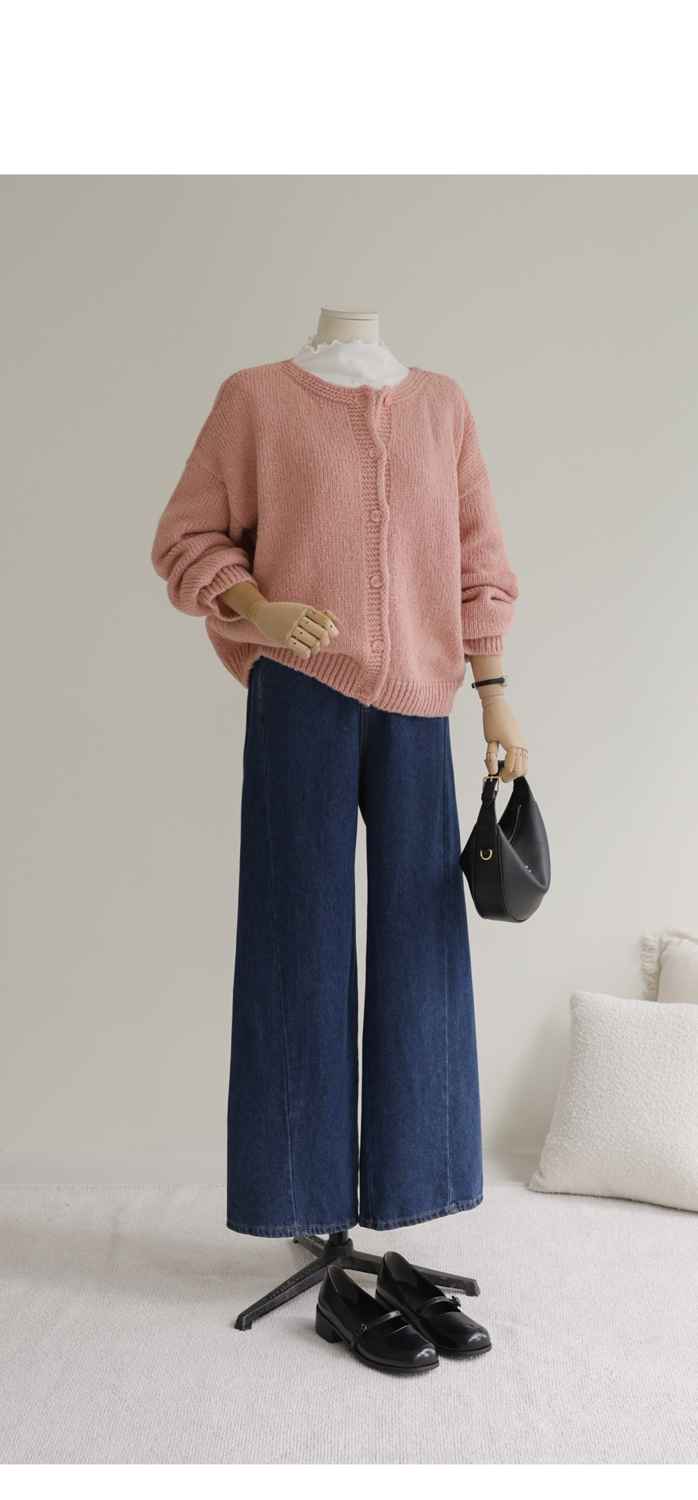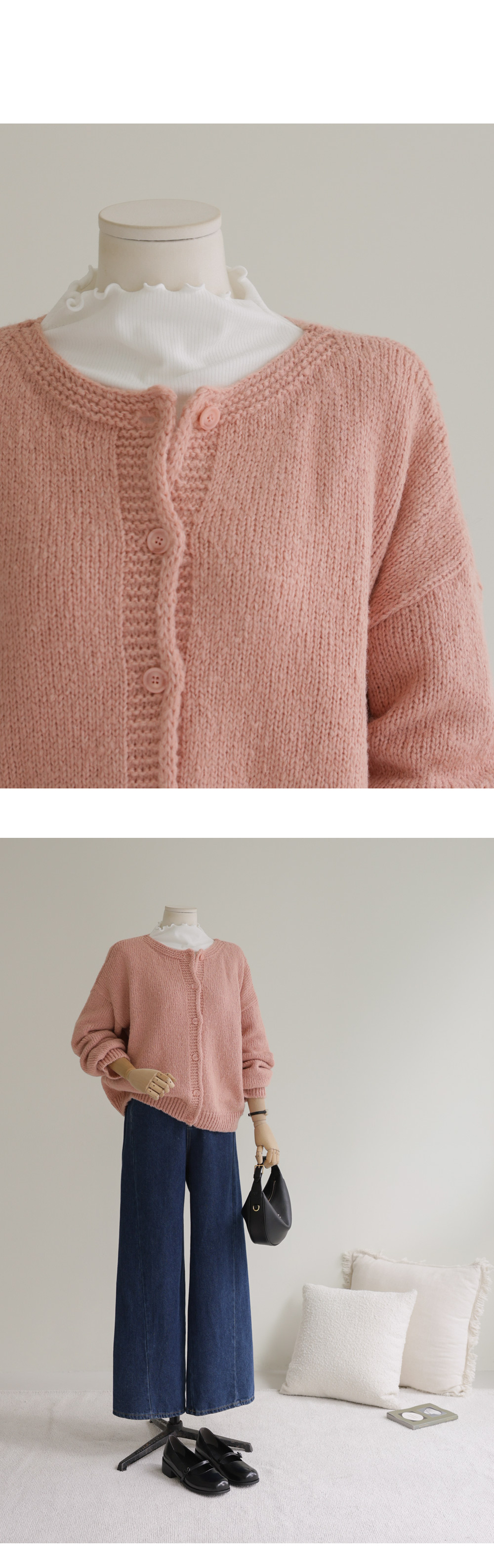 쿠보라 알파카 울가디건 _ 핑크