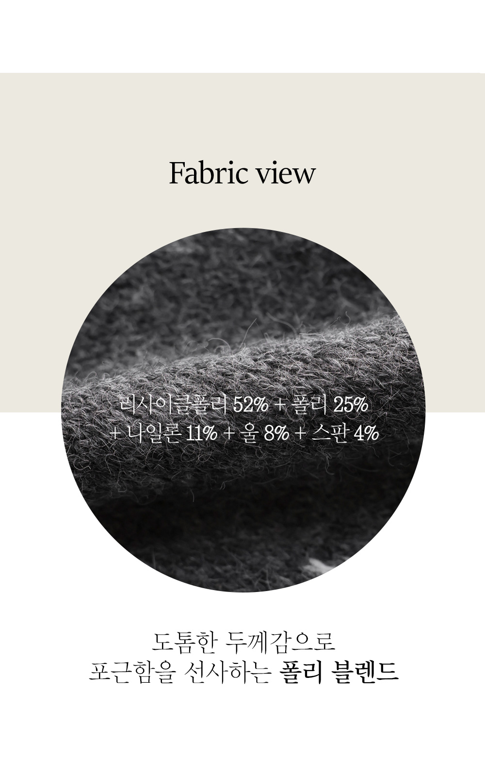 리사이클폴리52%,폴리25%,나일론11%,울8%,스판4%