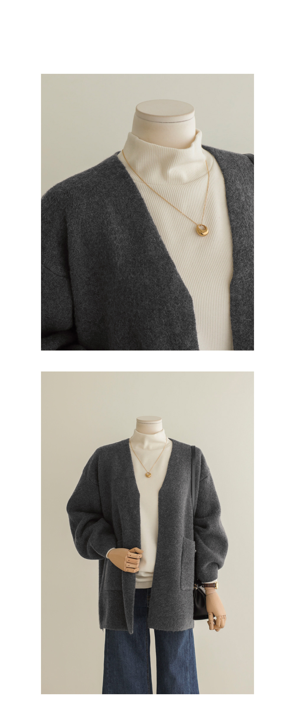 림노스 오픈 울가디건 _ 브라운,차콜