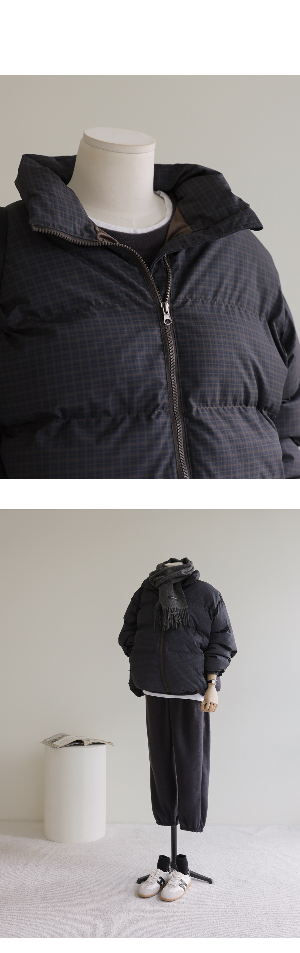 클레마 체크 패딩 _ 브라운