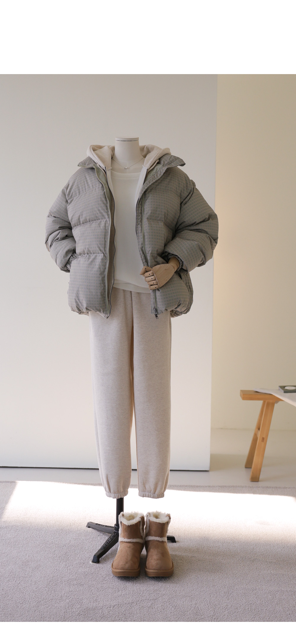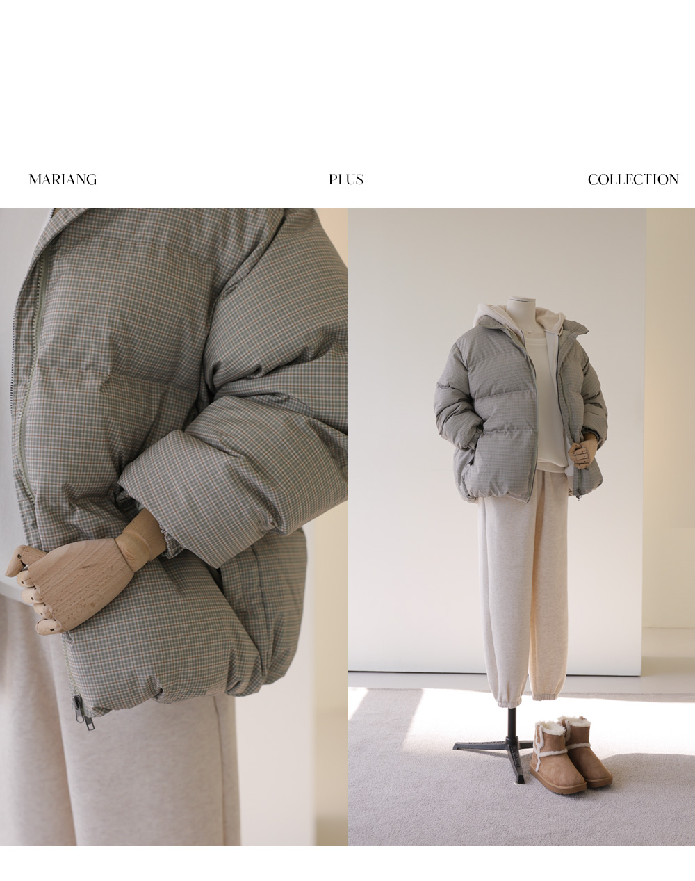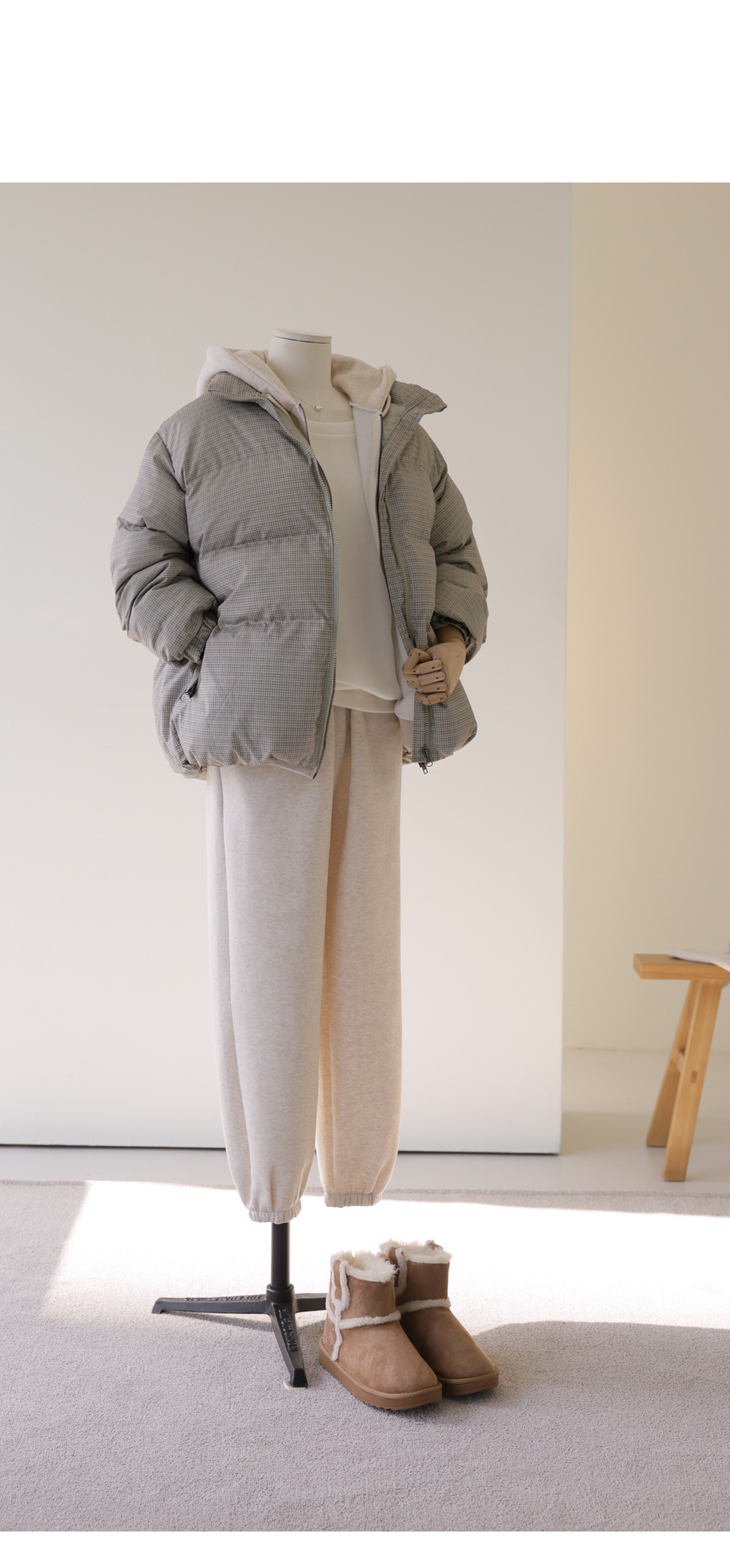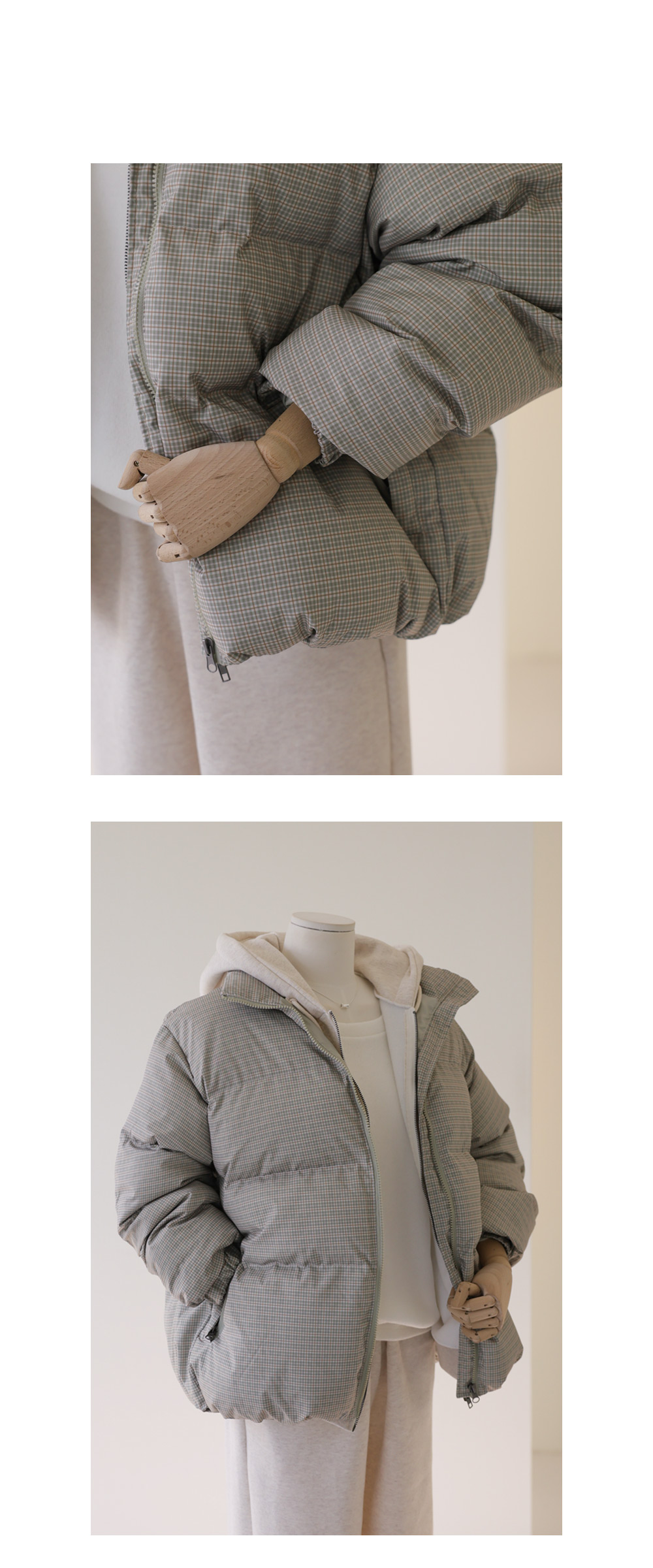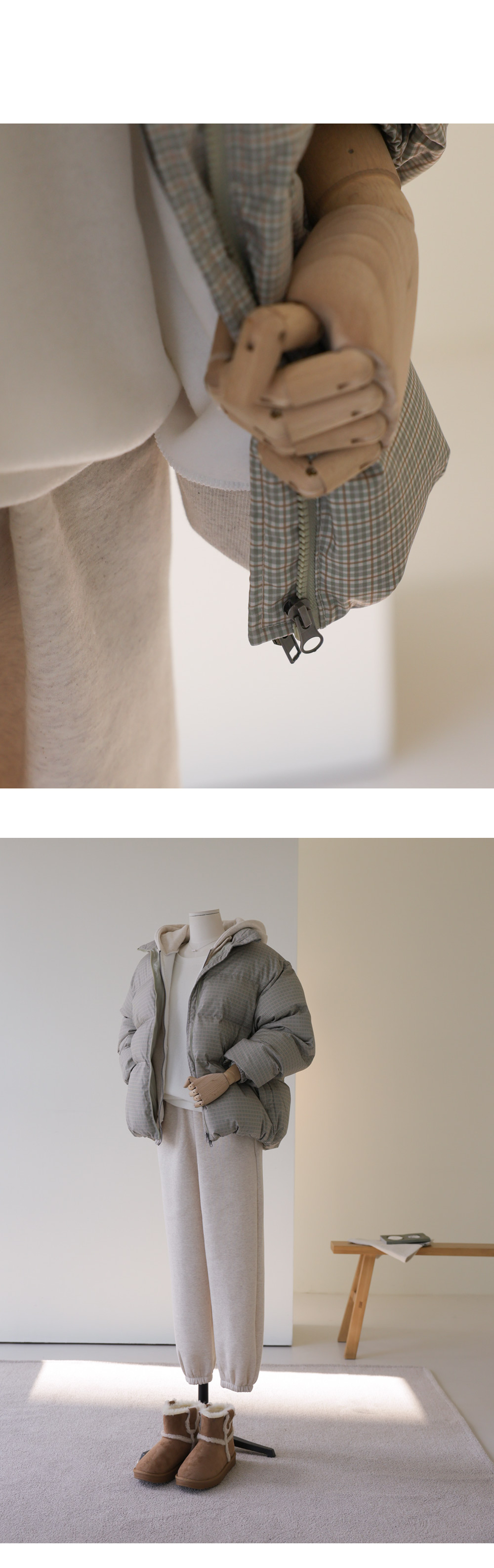 클레마 체크 패딩 _ 베이지