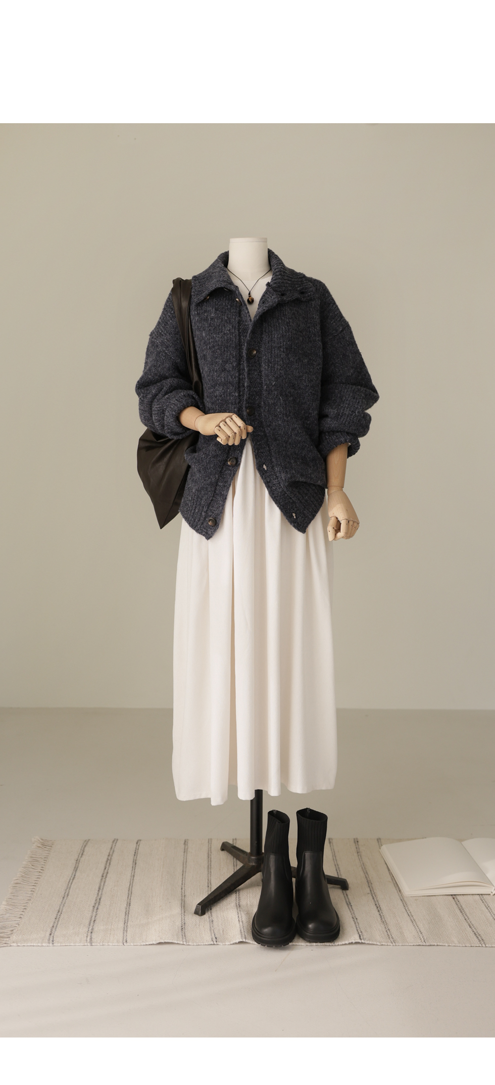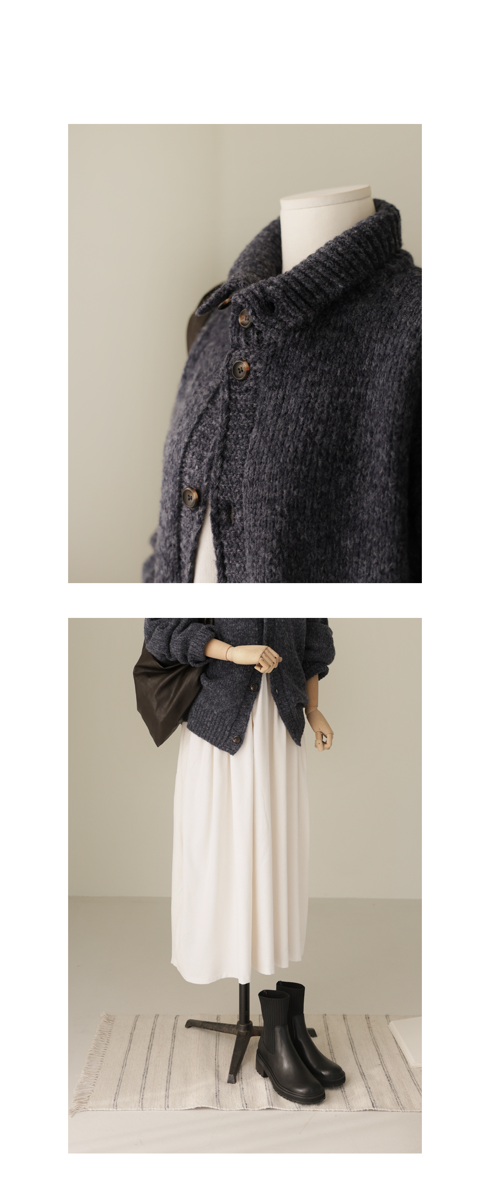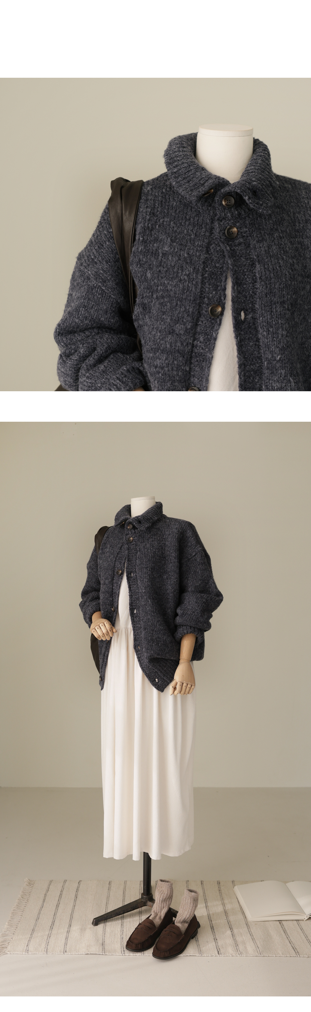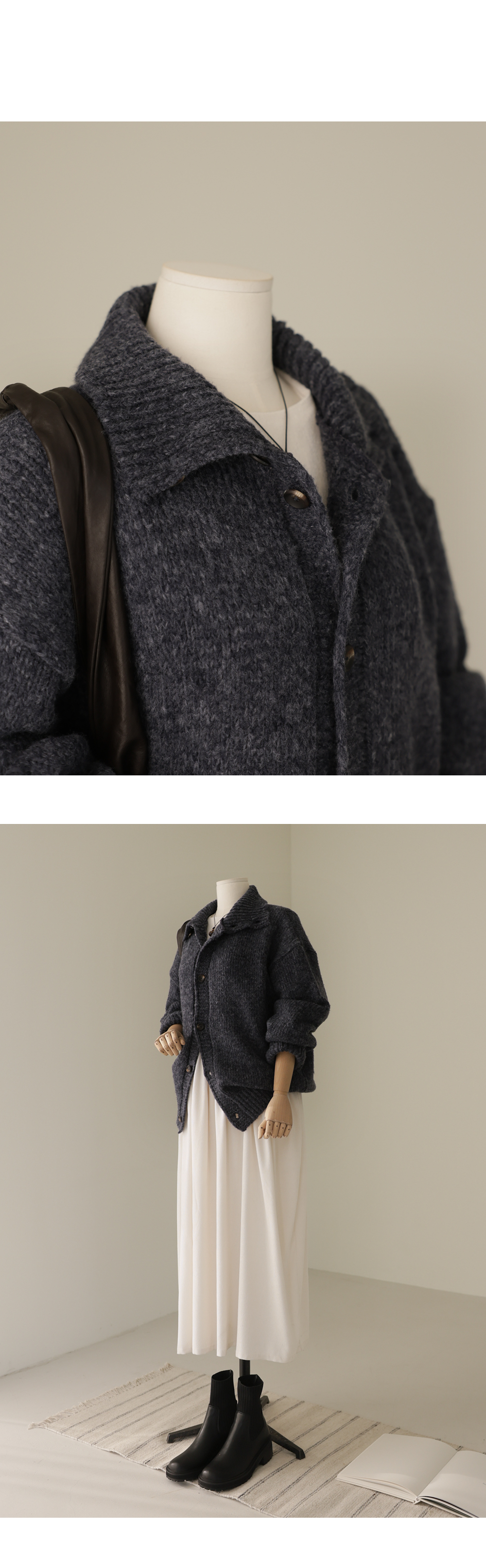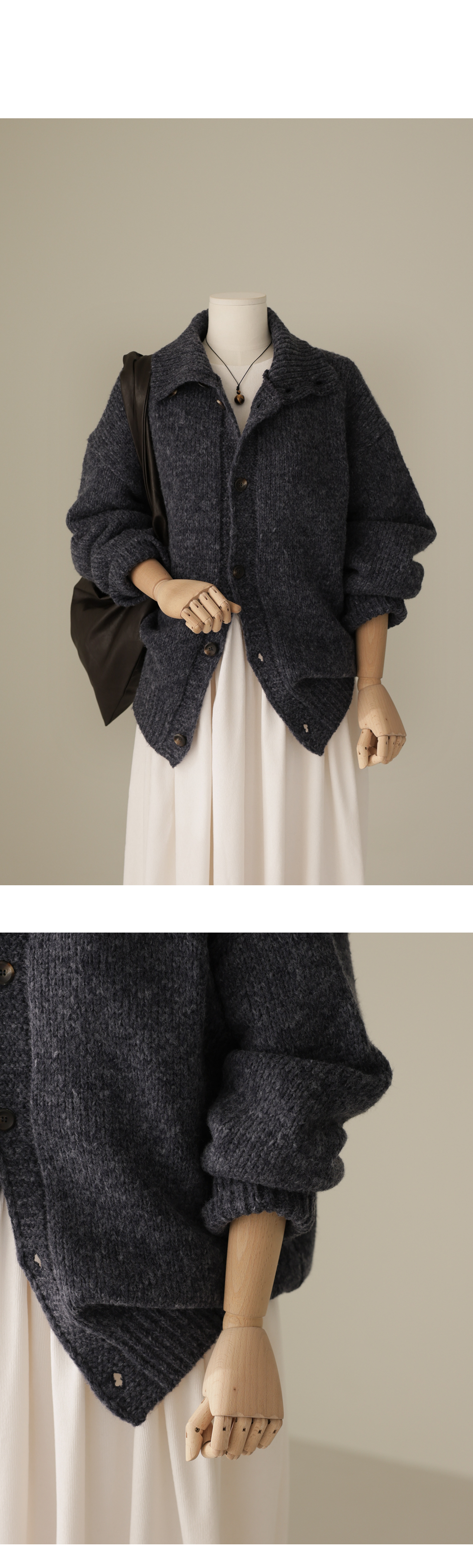 엑시렌 카라 가디건 _ 차콜