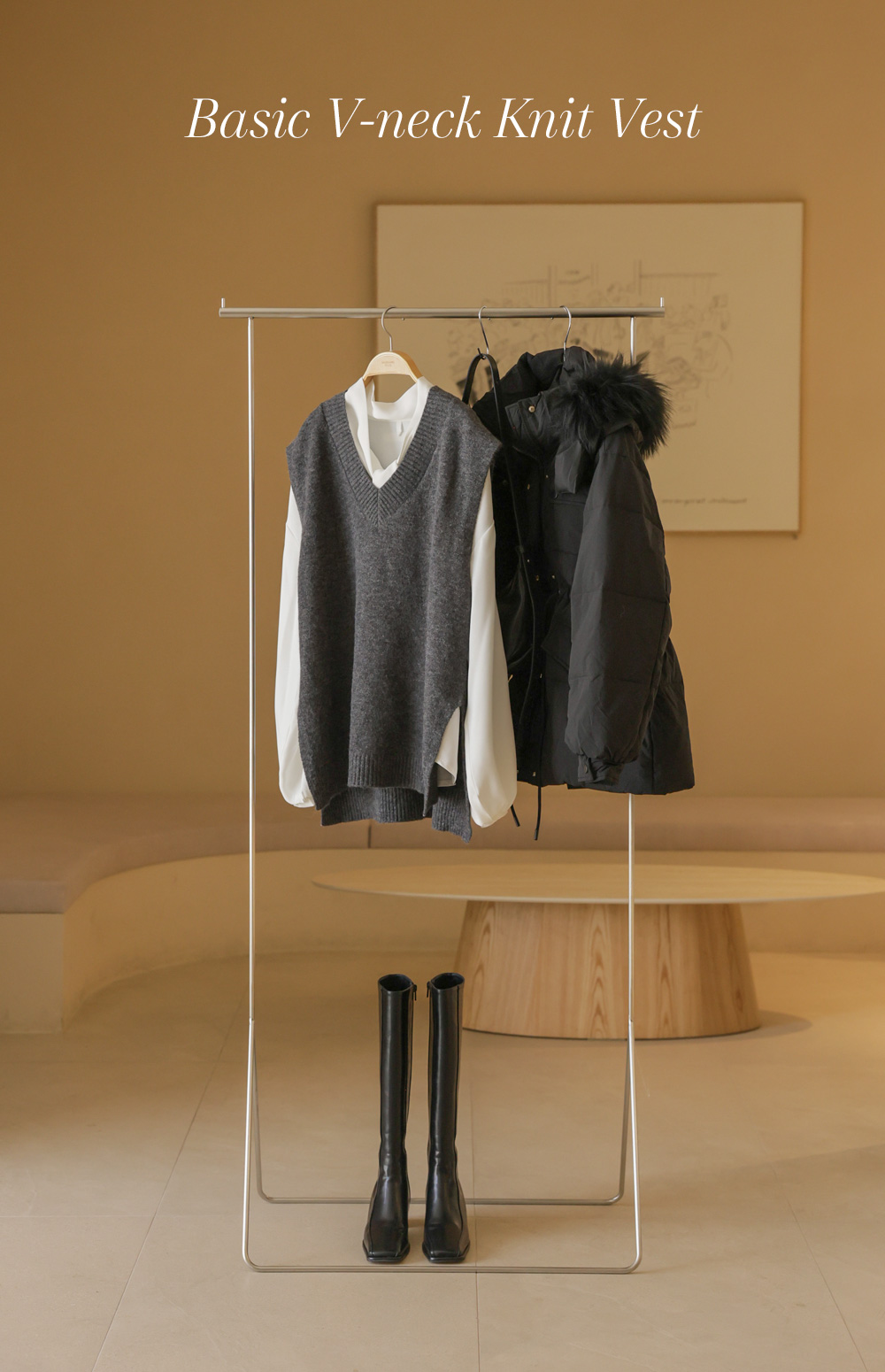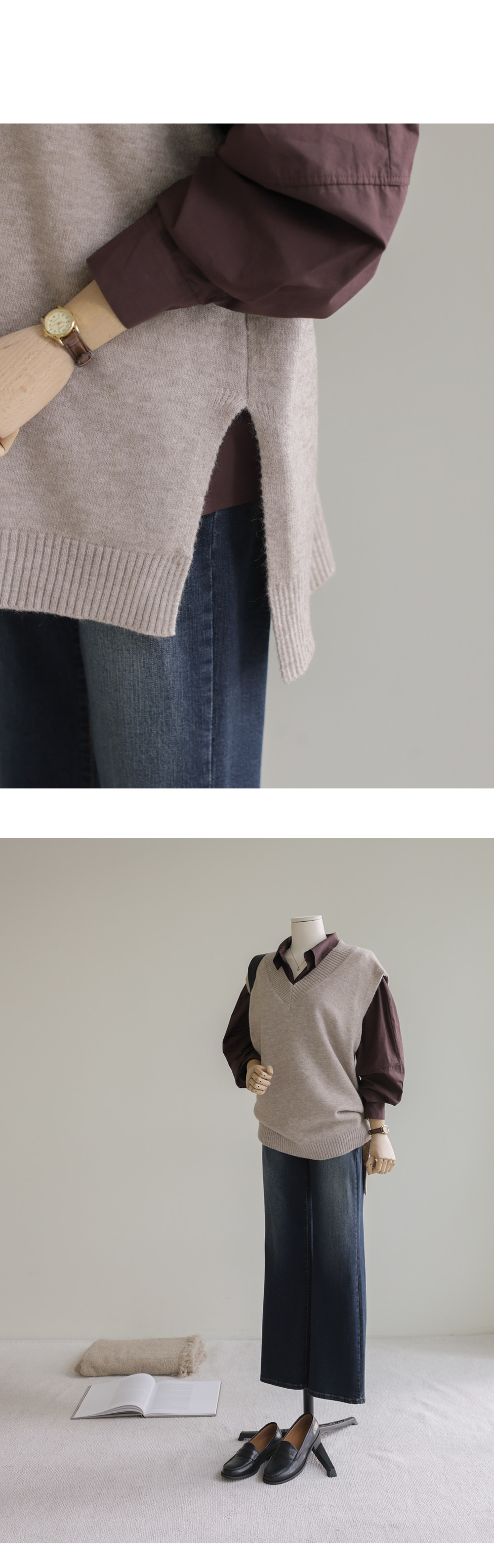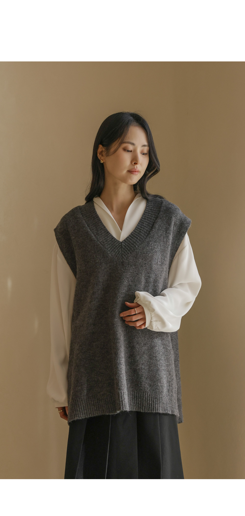 카르판 브이넥 니트조끼 _ 다크그레이,오트밀
