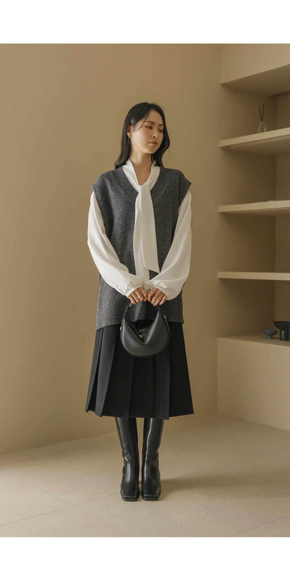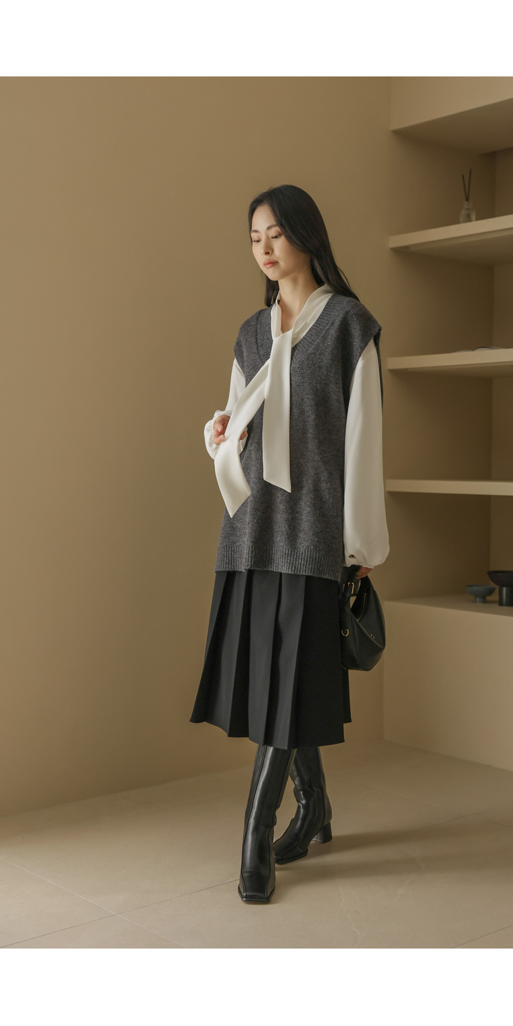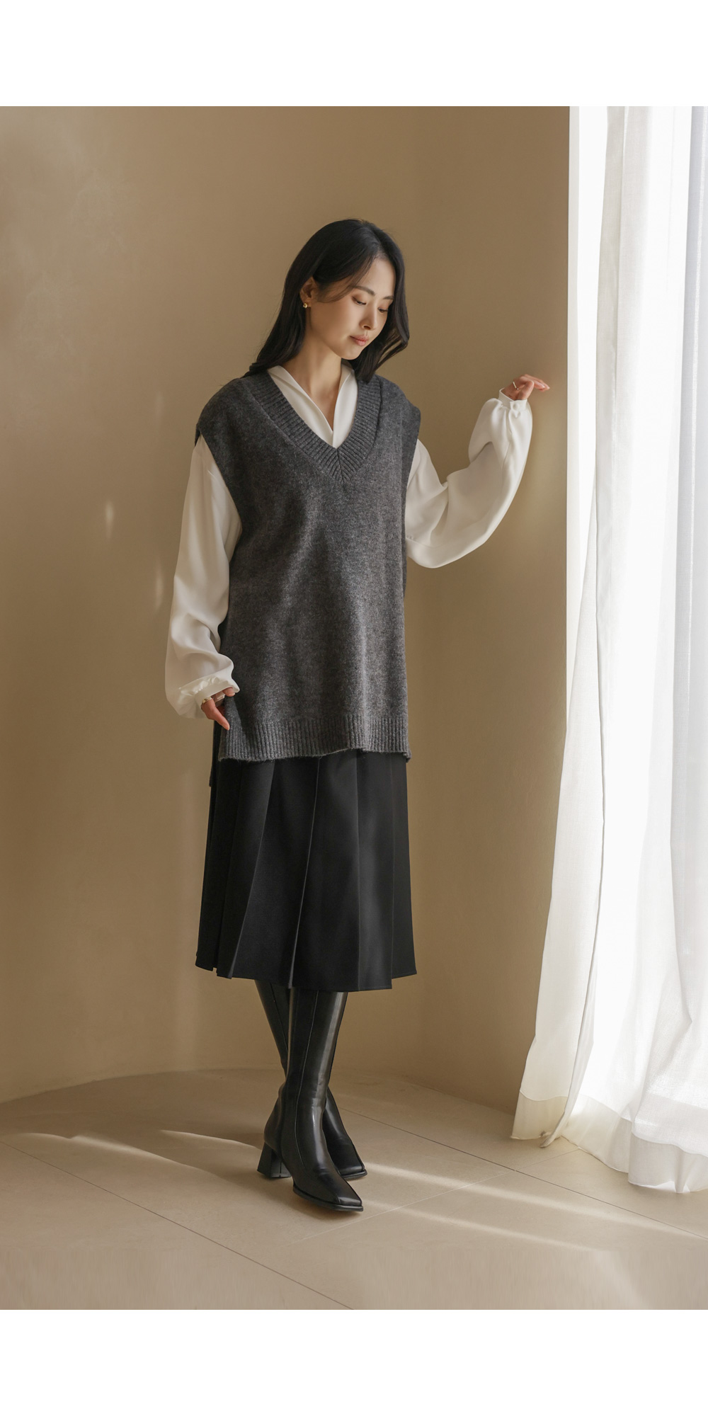 카르판 브이넥 니트조끼 _ 다크그레이,오트밀