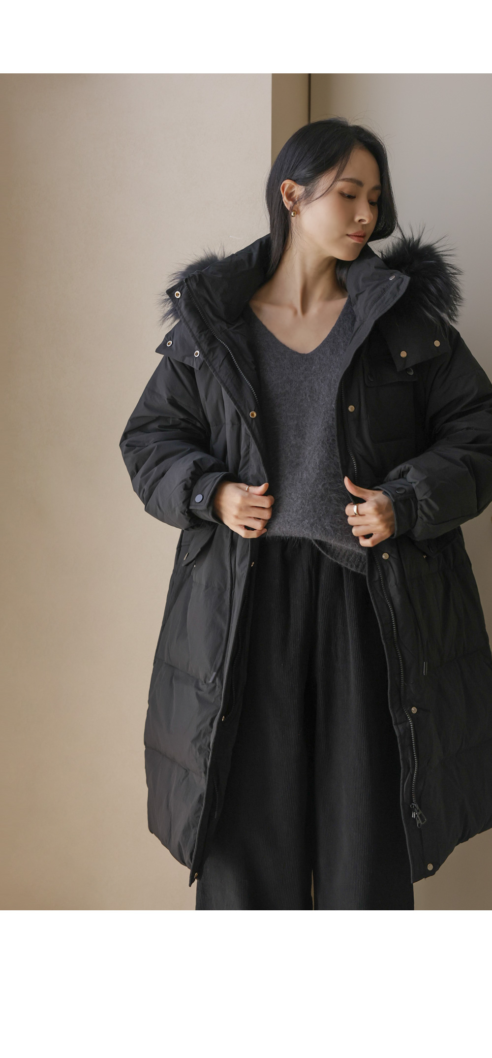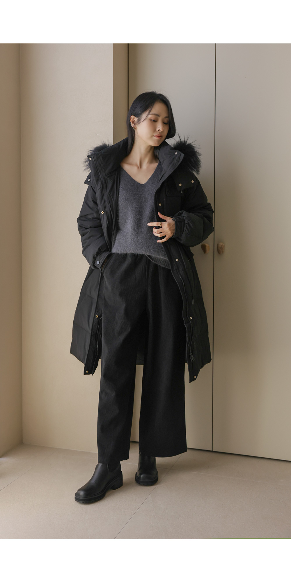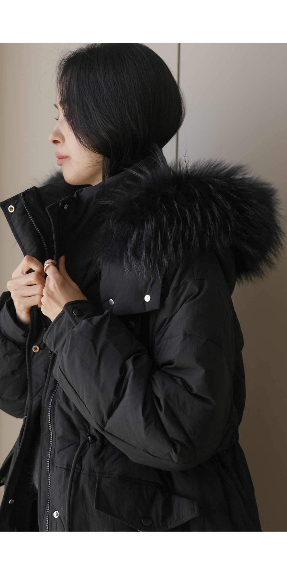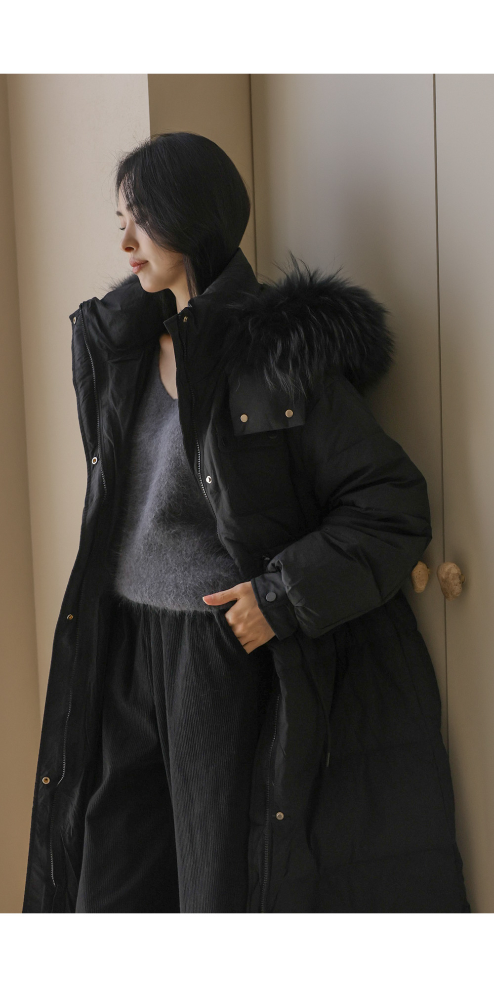 헤던코 후드 덕다운 롱패딩 _ 블랙