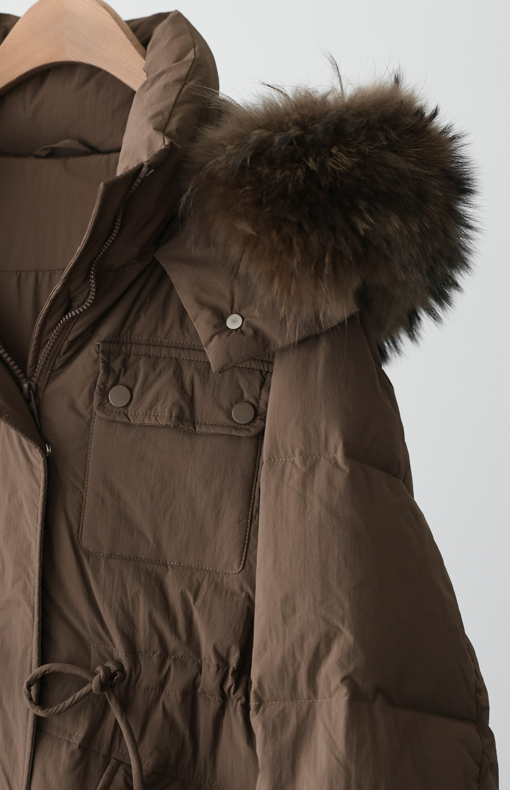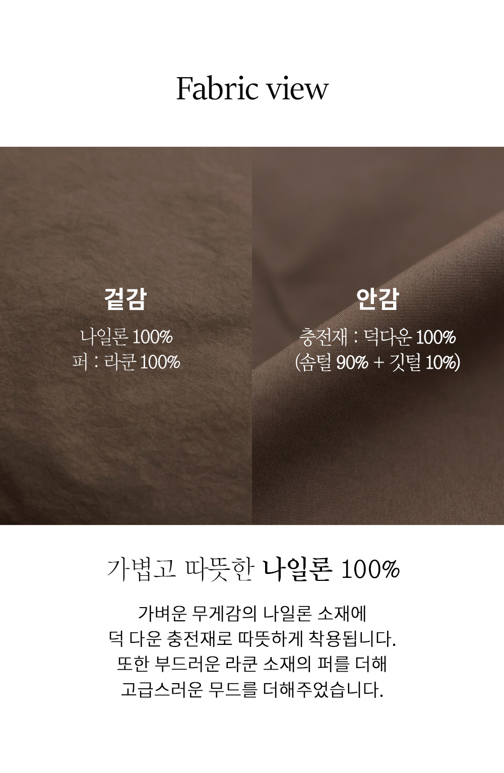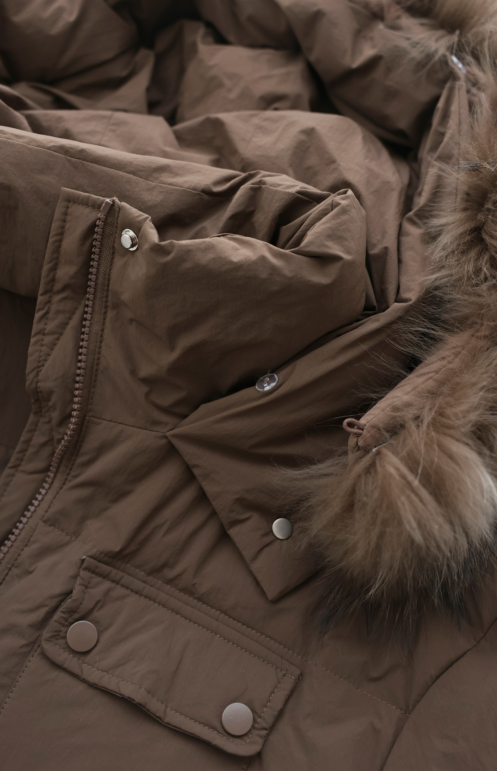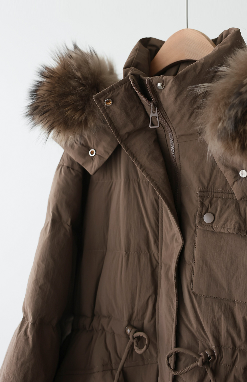 [90% duck down, 10% feather, 100% raccoon fur]