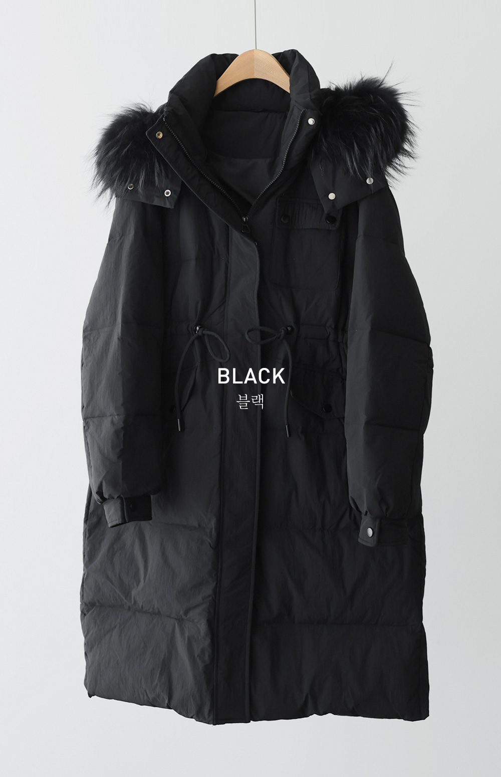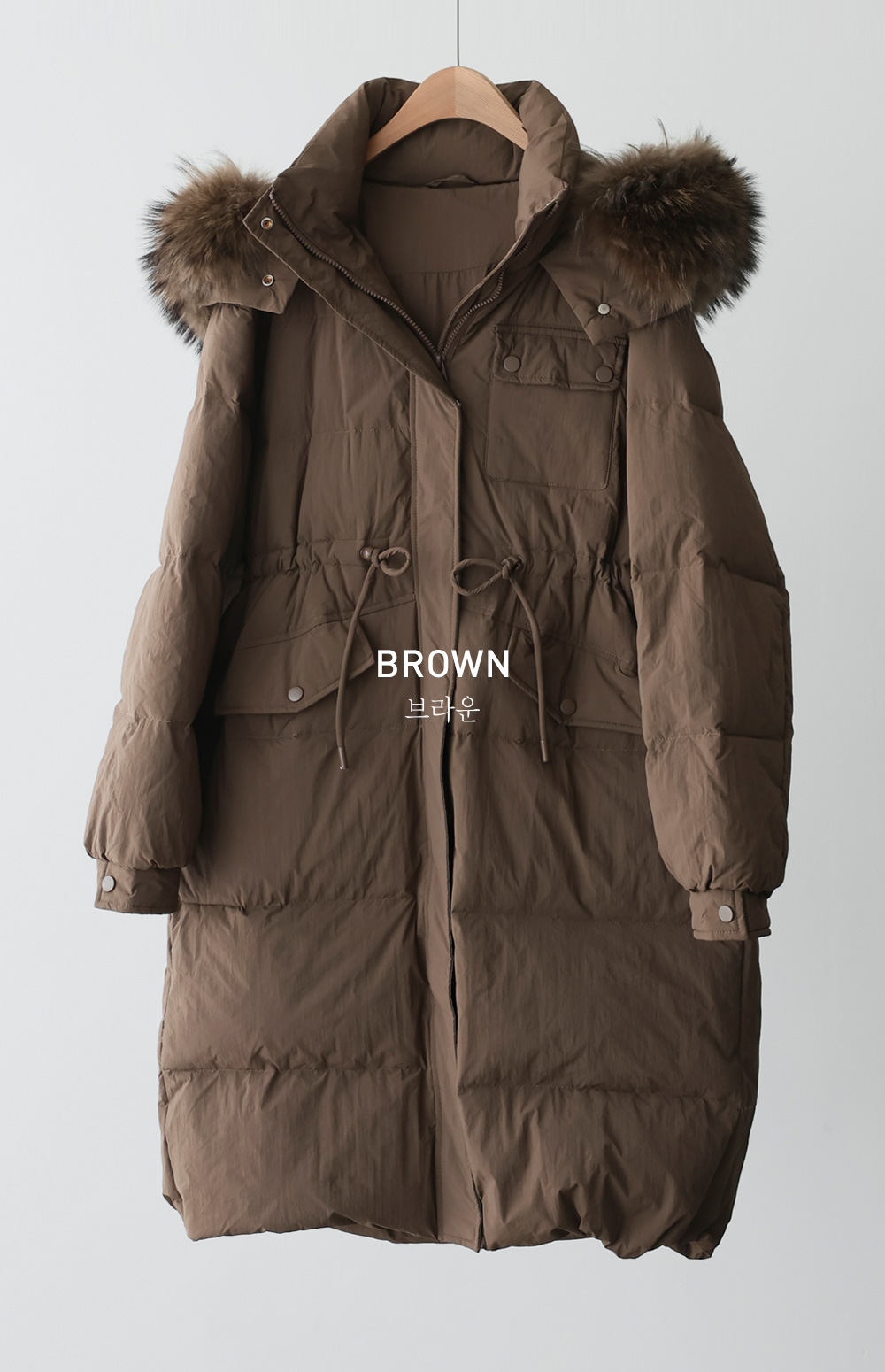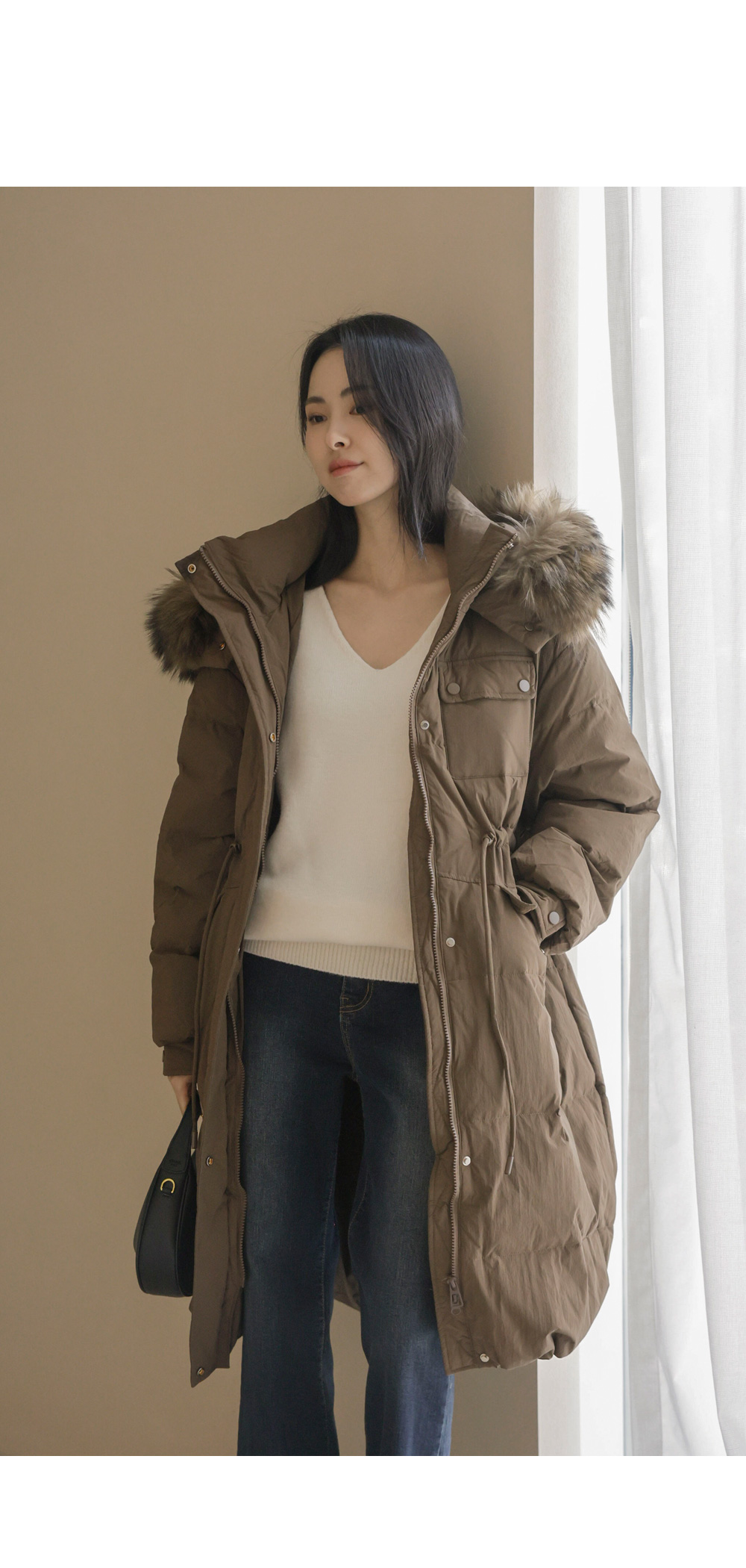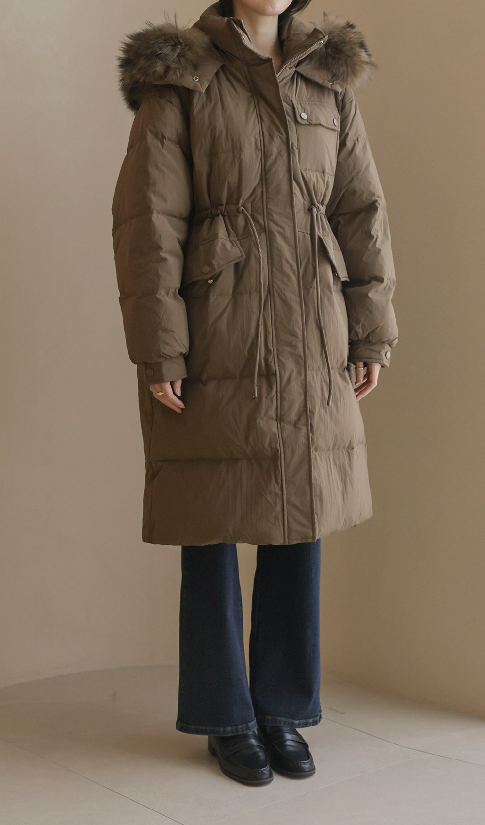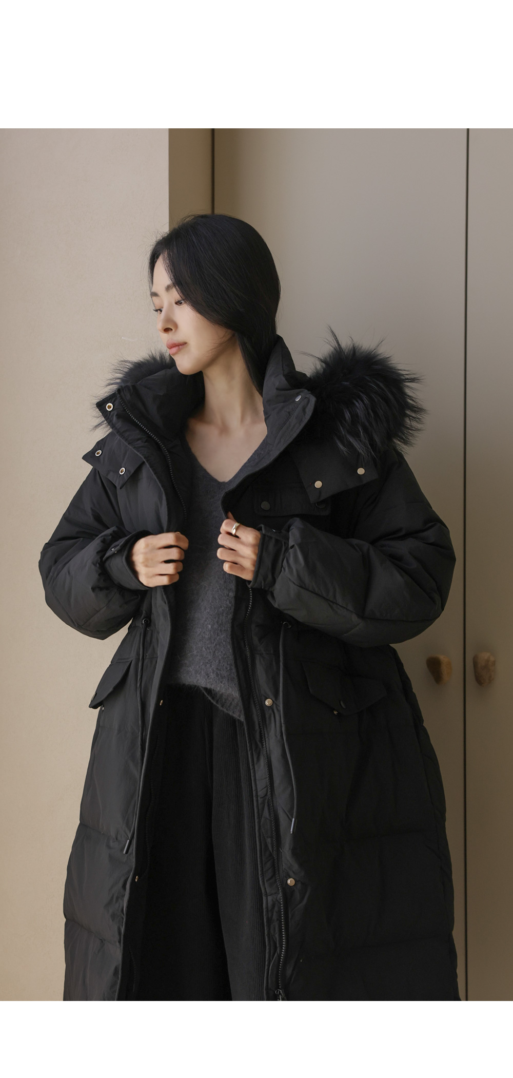[90% duck down, 10% feather, 100% raccoon fur]