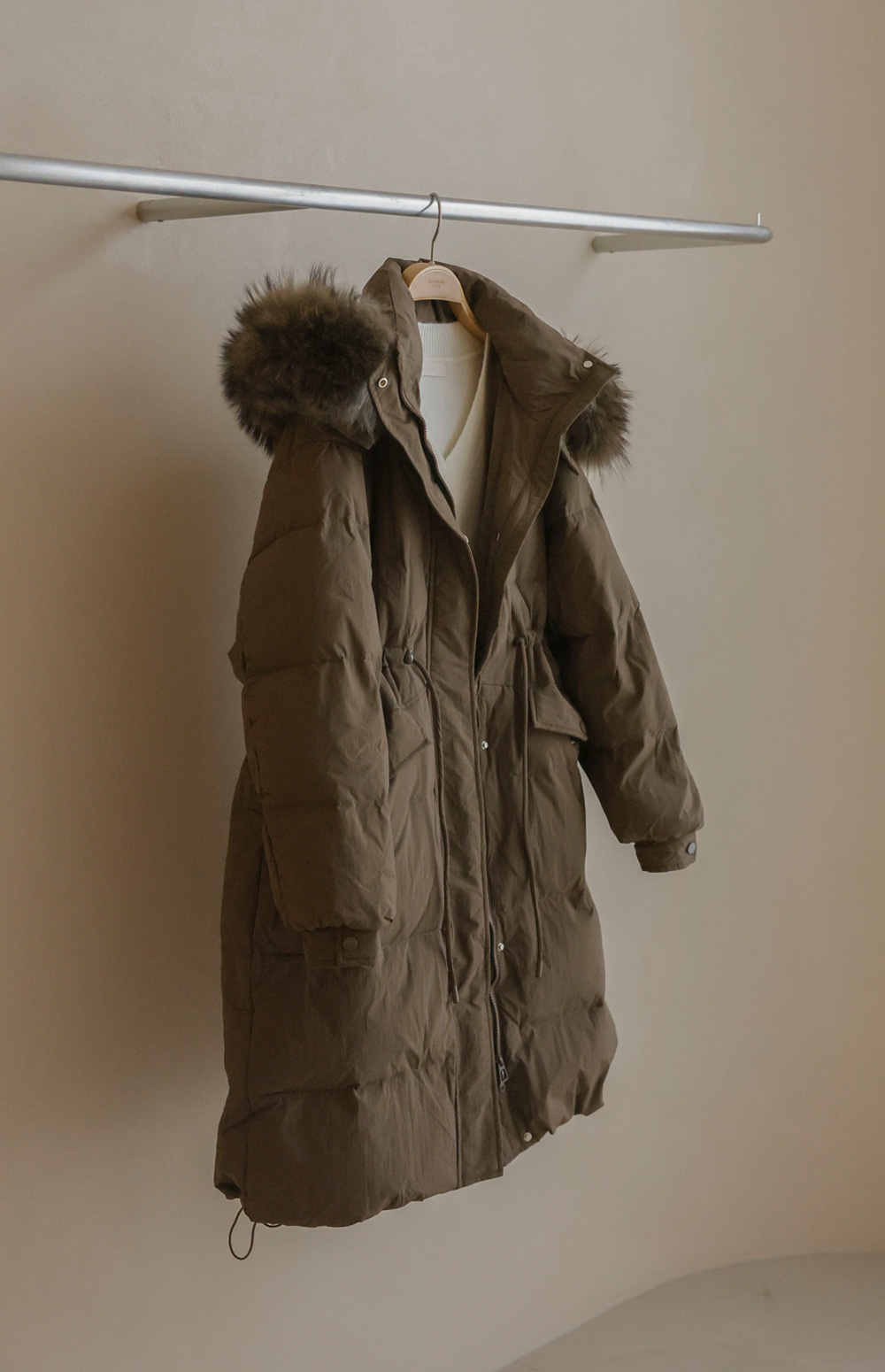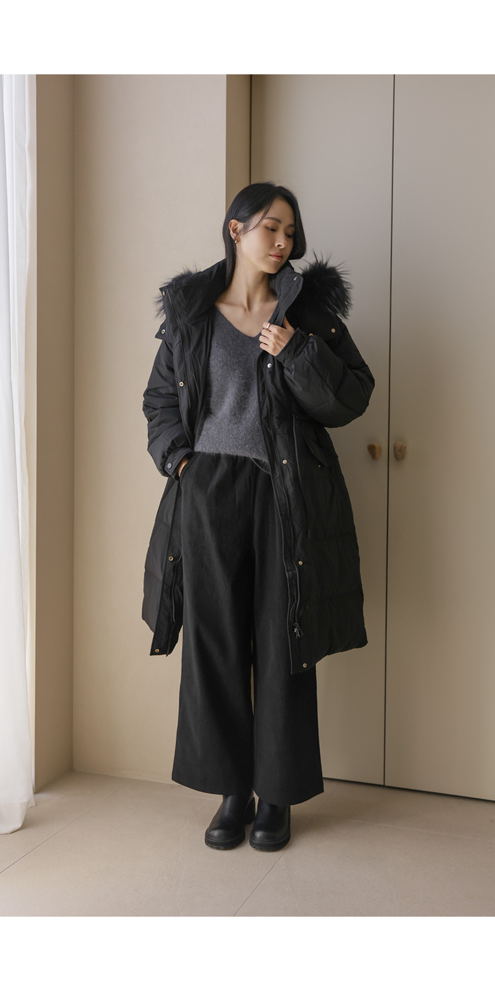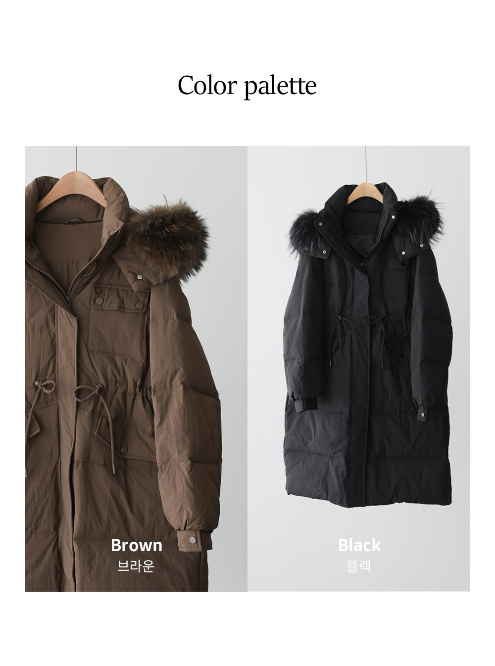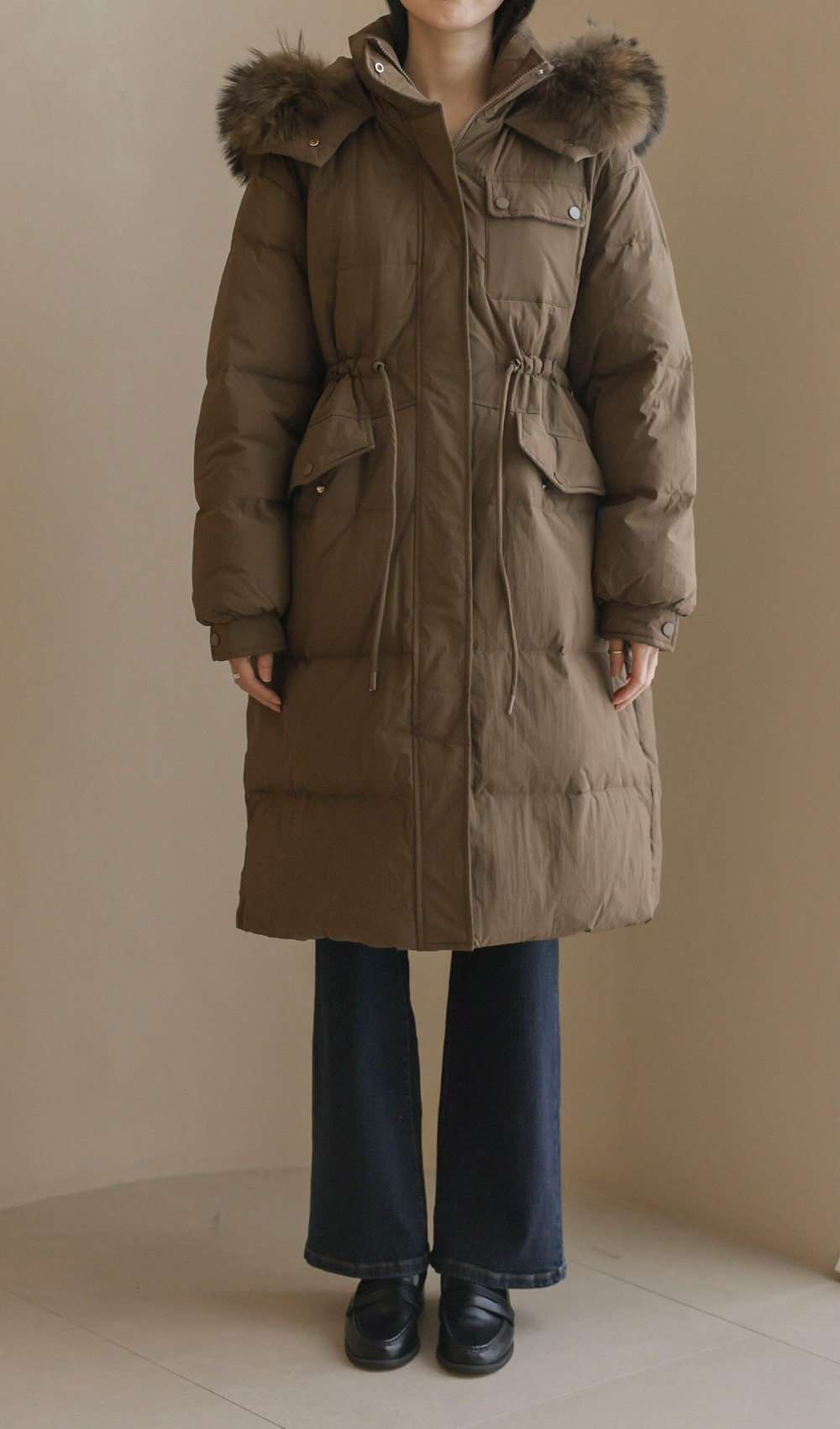 [90% duck down, 10% feather, 100% raccoon fur]