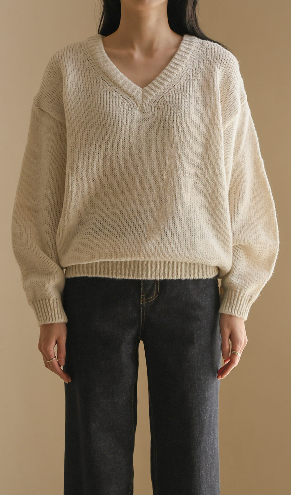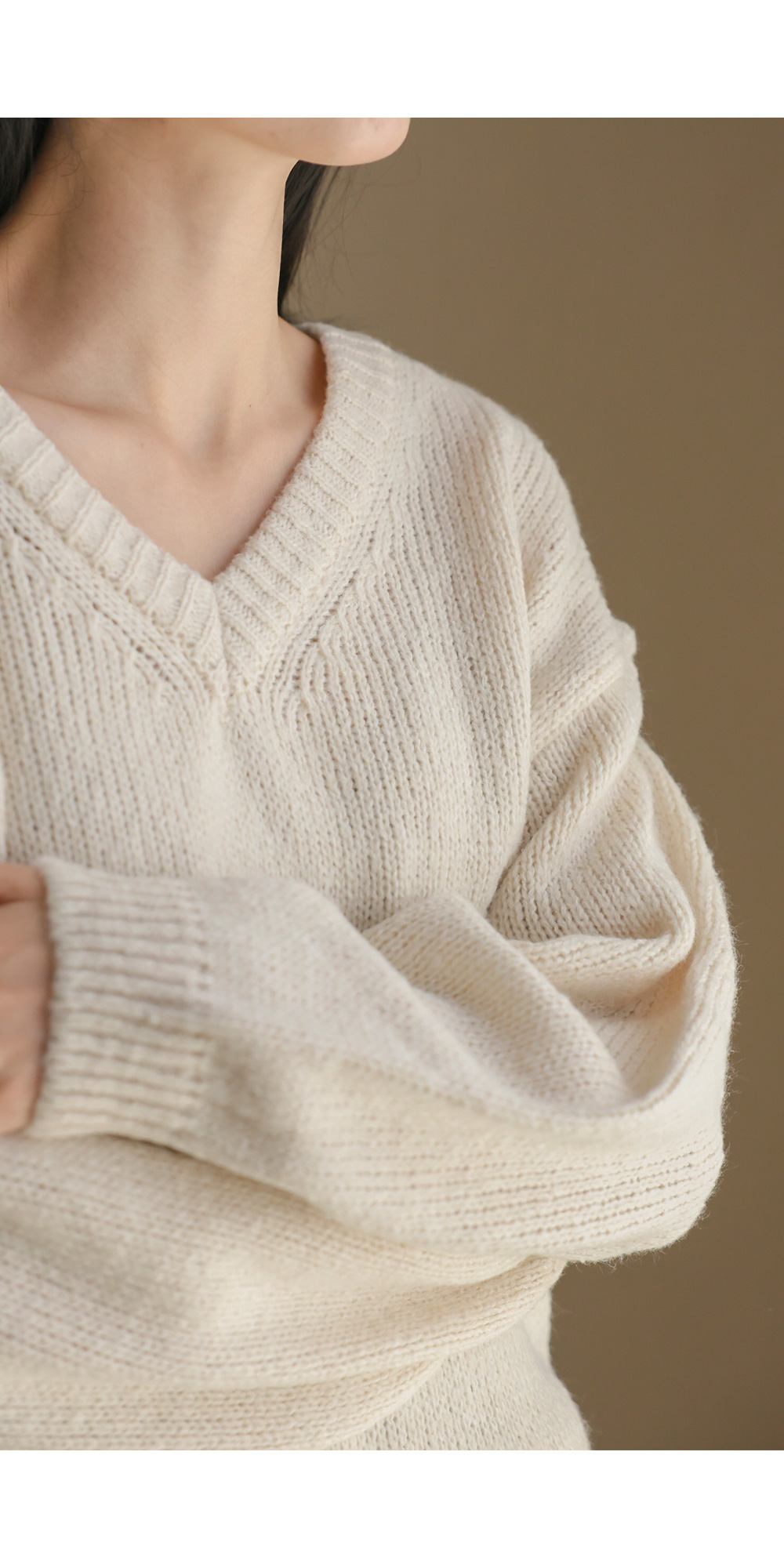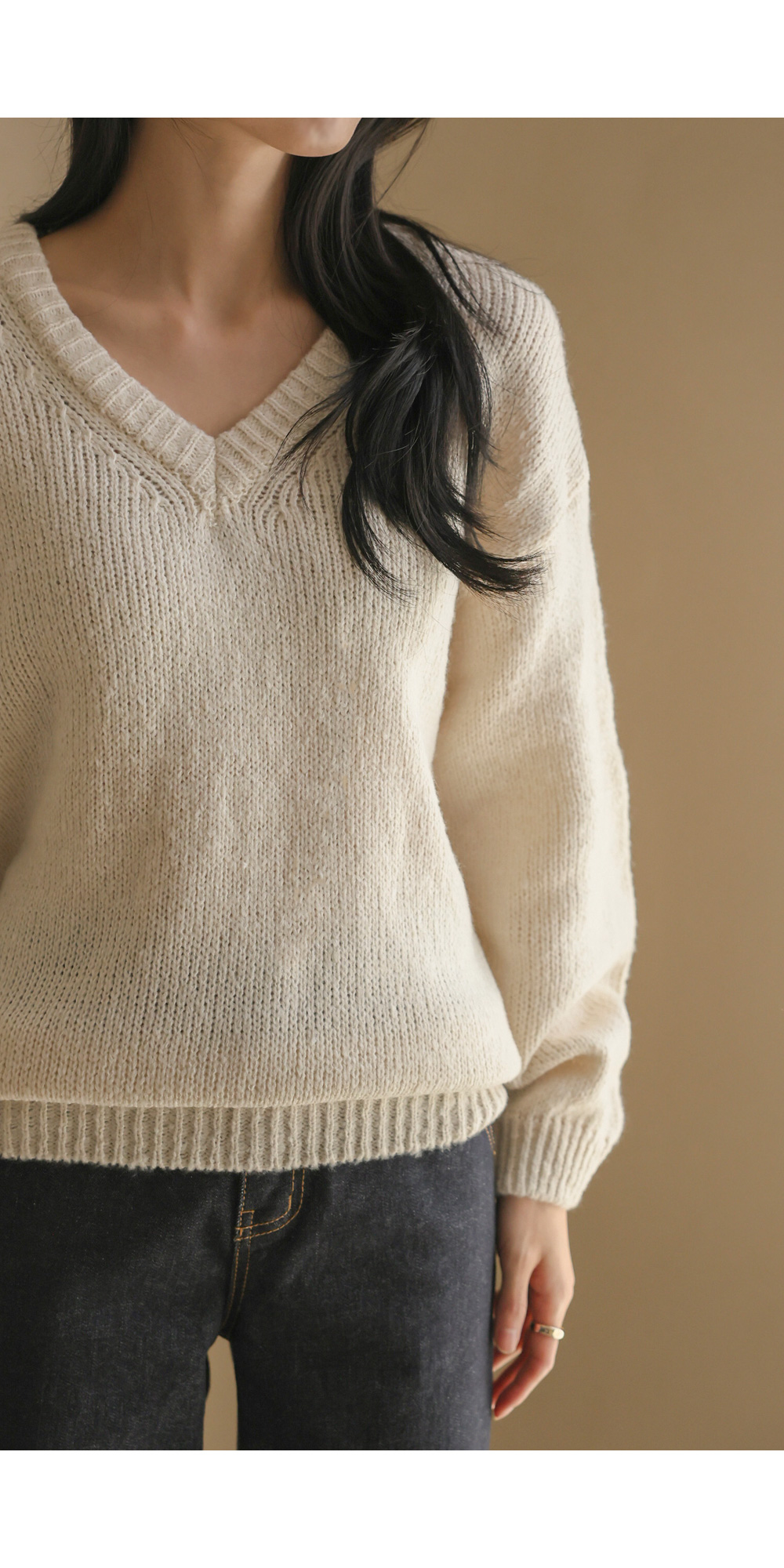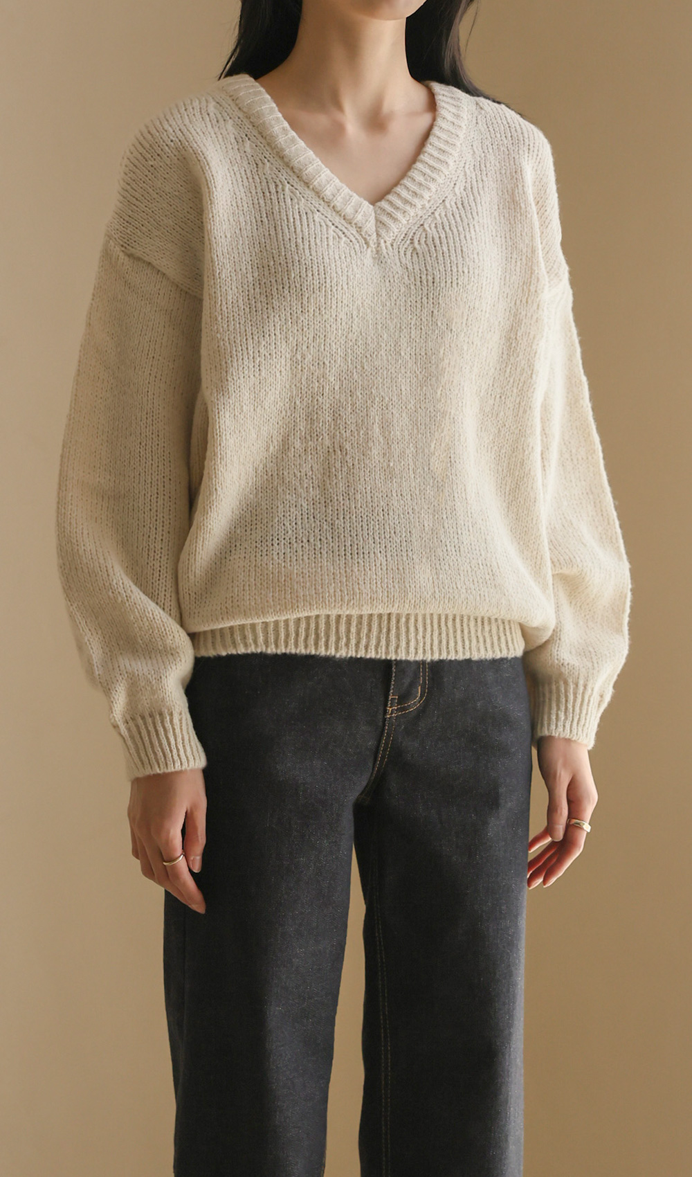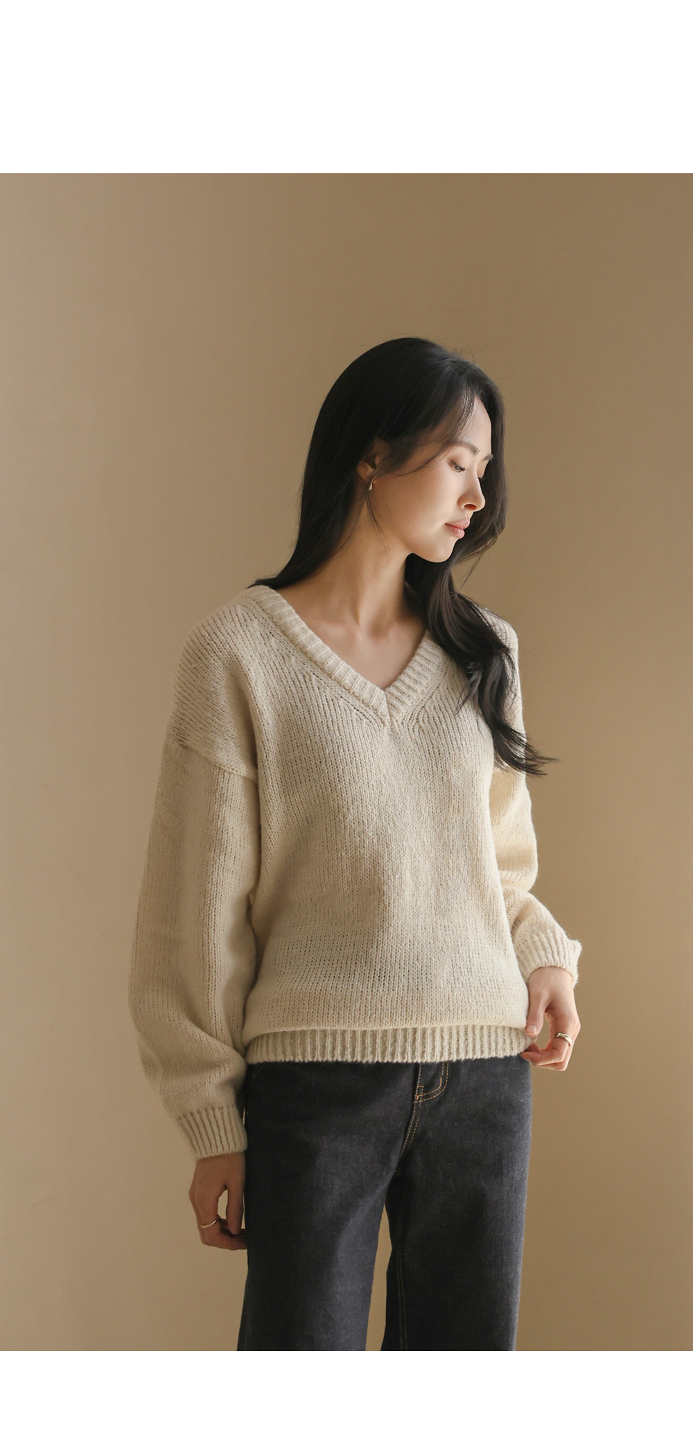 위드론 브이넥 니트 _ 아이보리