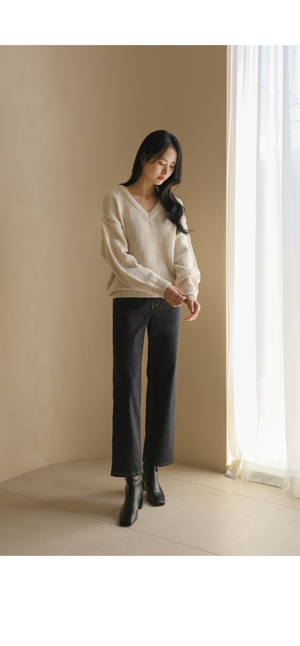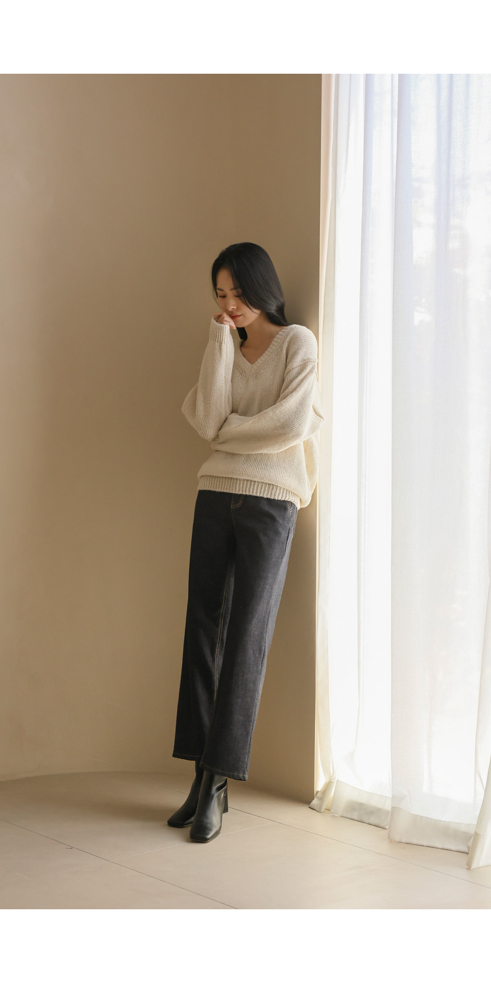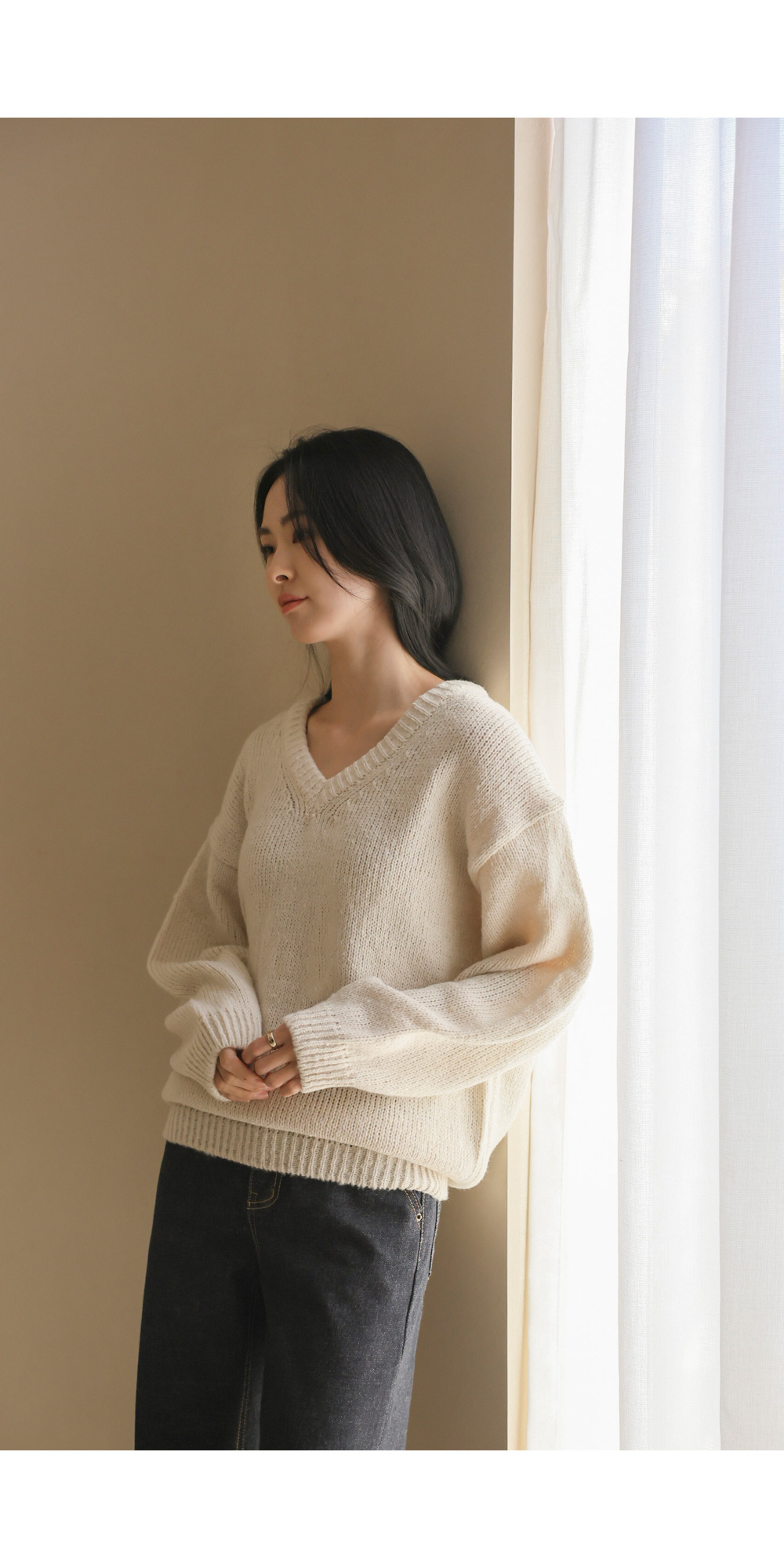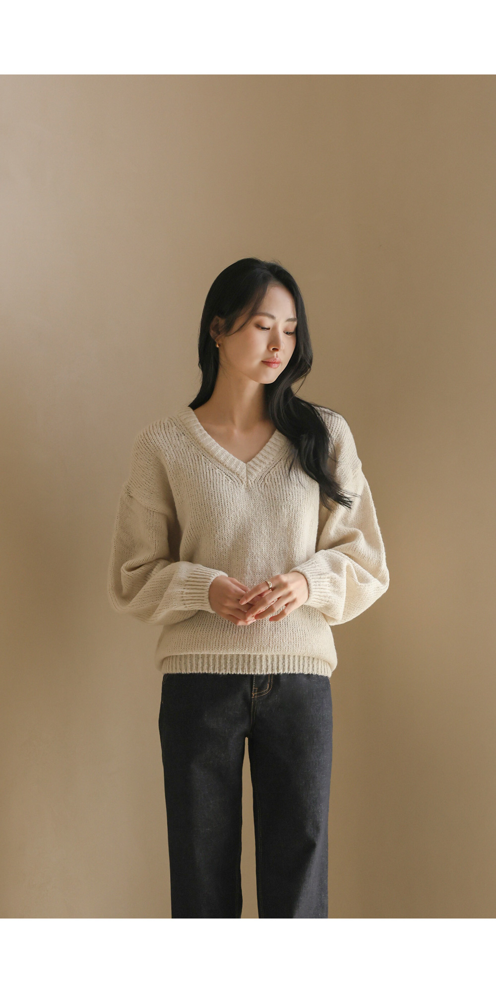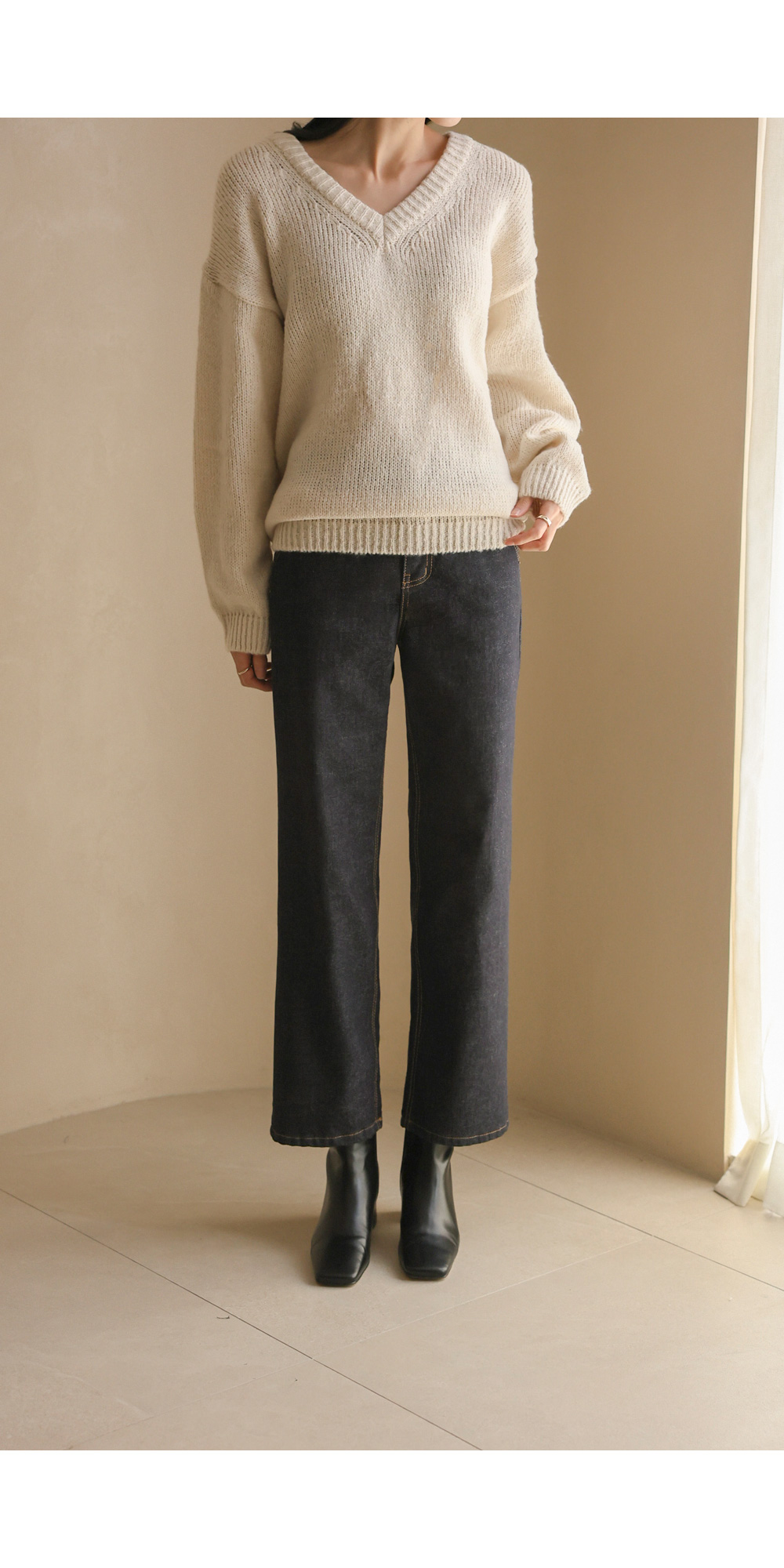 위드론 브이넥 니트 _ 아이보리