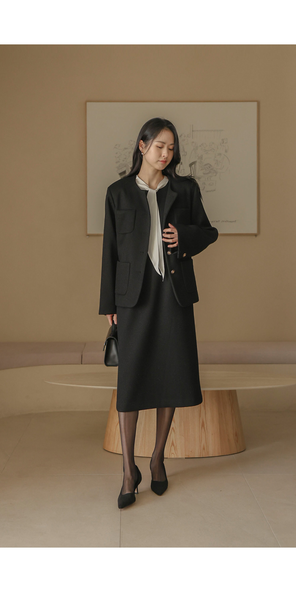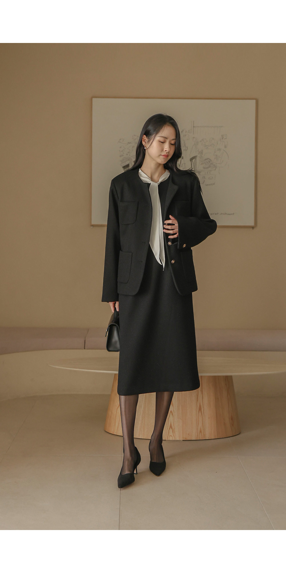 로즈아 트위드 원피스 _ 블랙