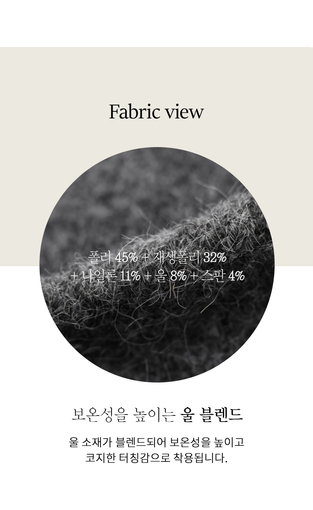 폴리45%,재생폴리32%,나일론11%,울8%,스판4%