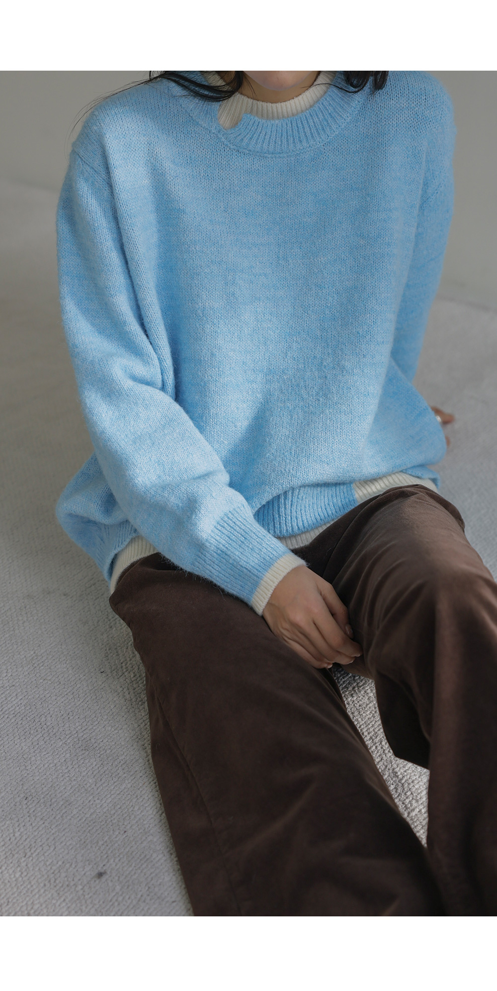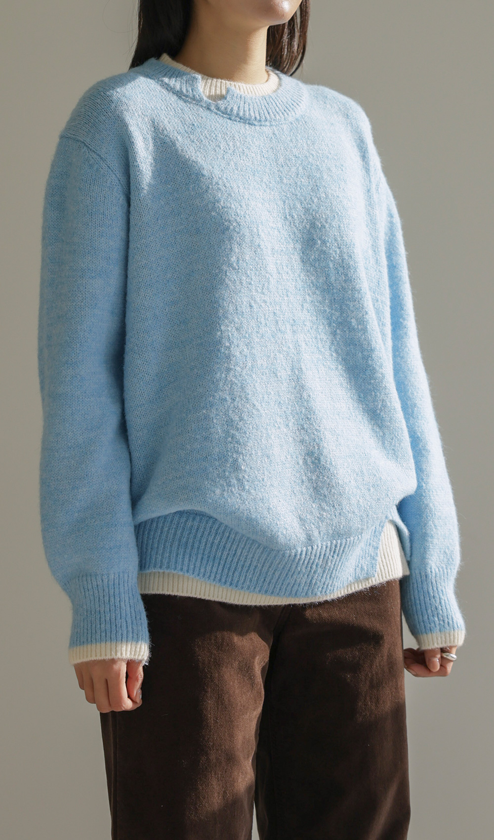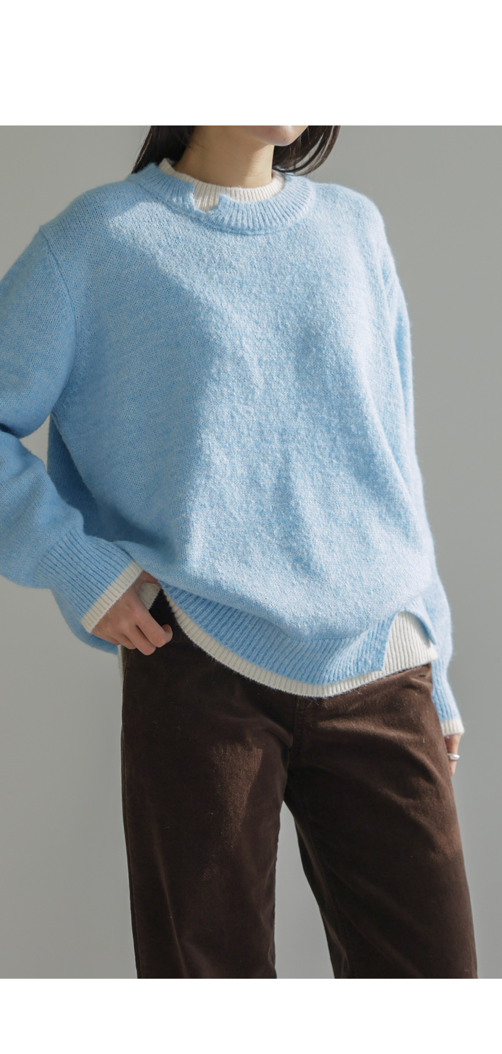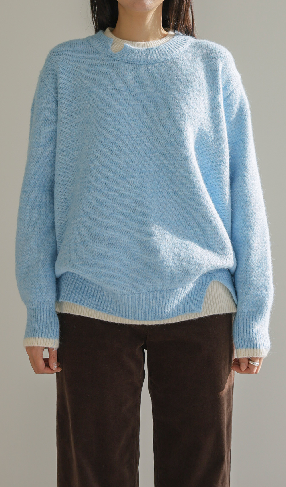 오블론 레이어드 니트 _ 스카이블루,오트밀