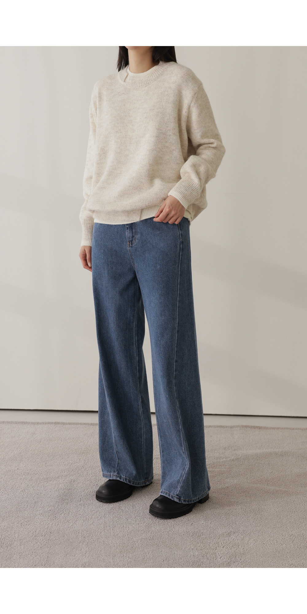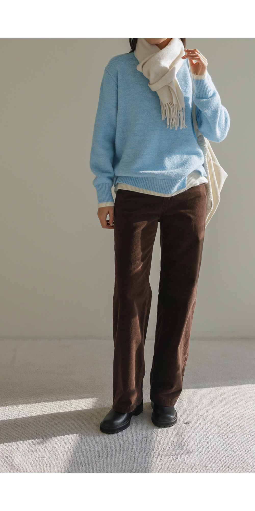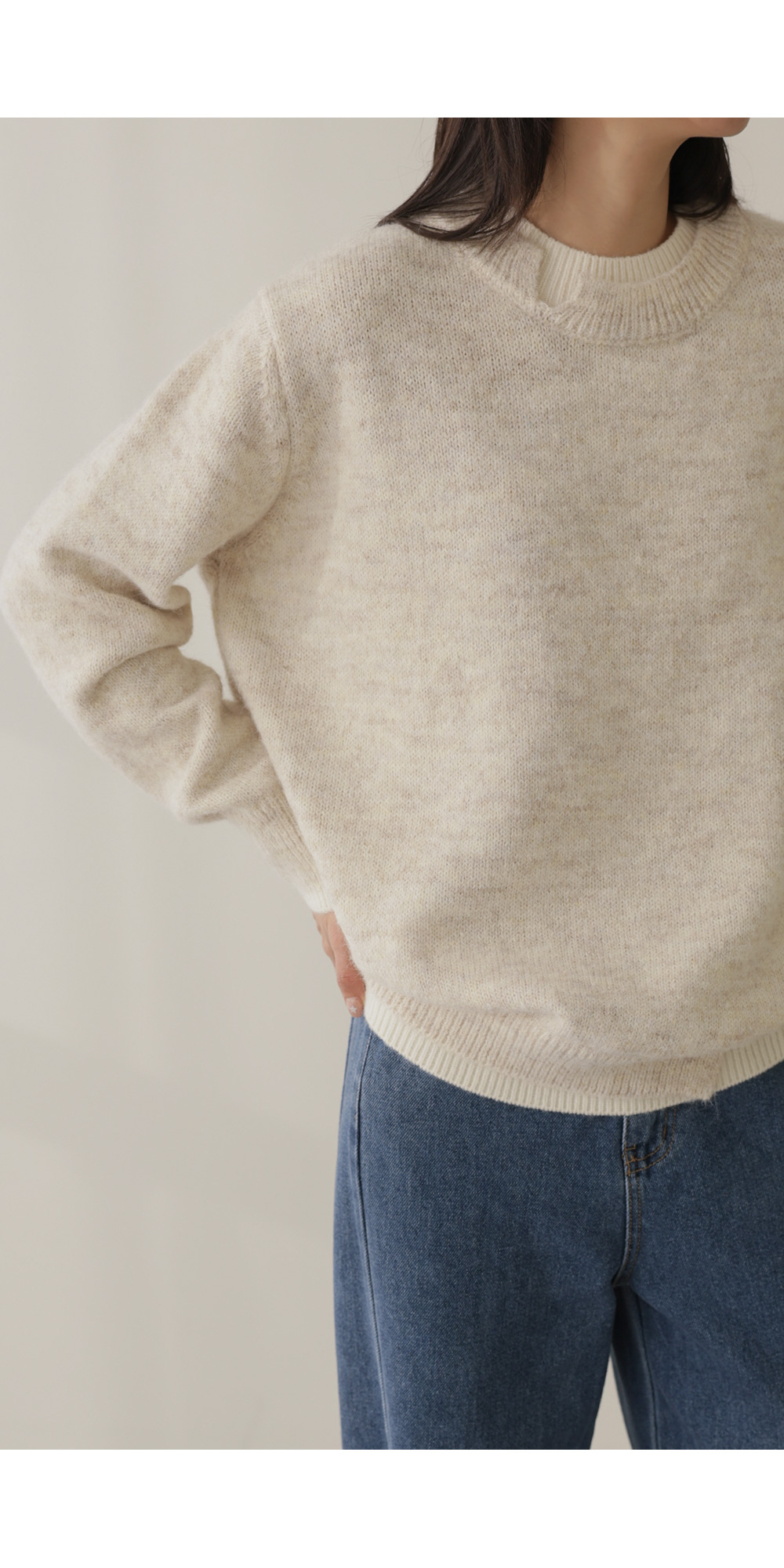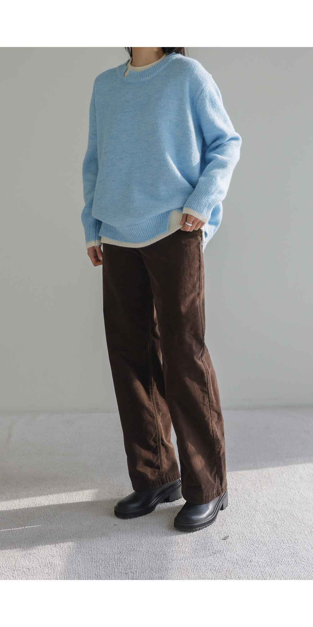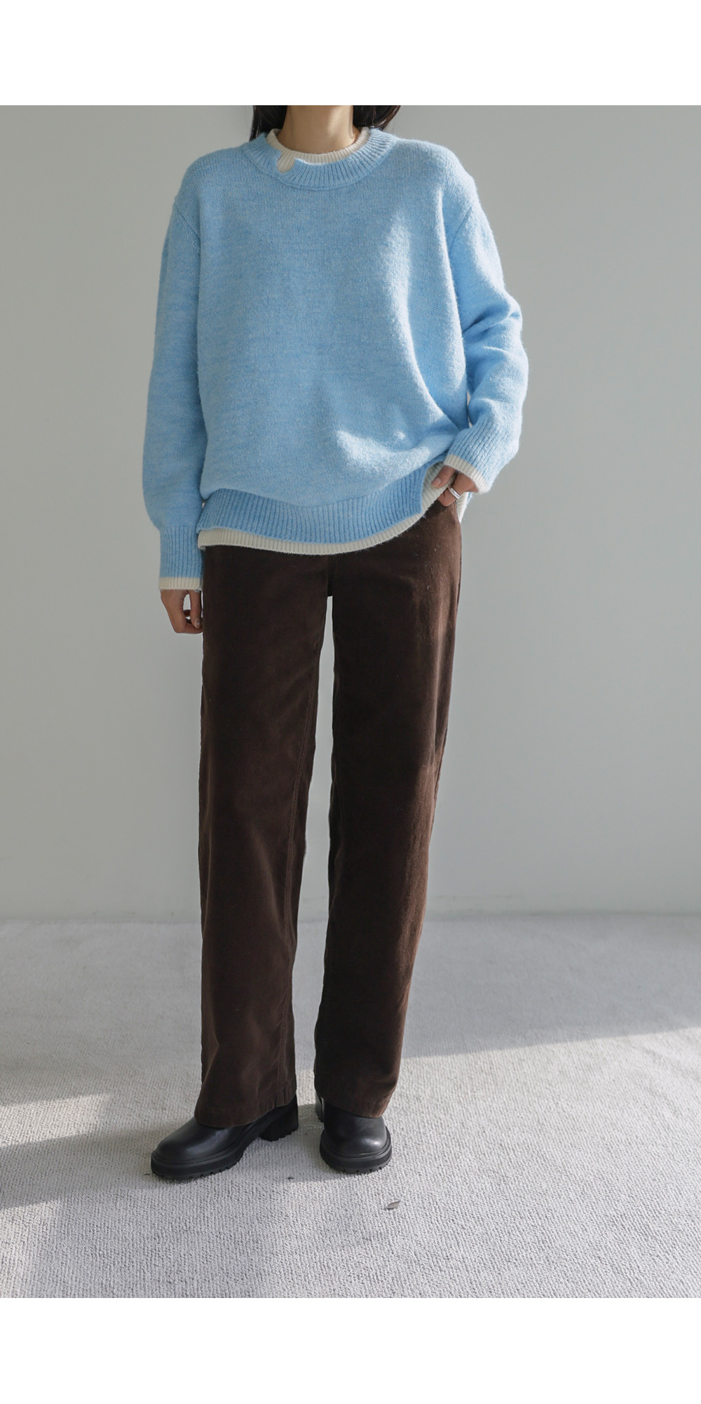 오블론 레이어드 니트 _ 스카이블루,오트밀